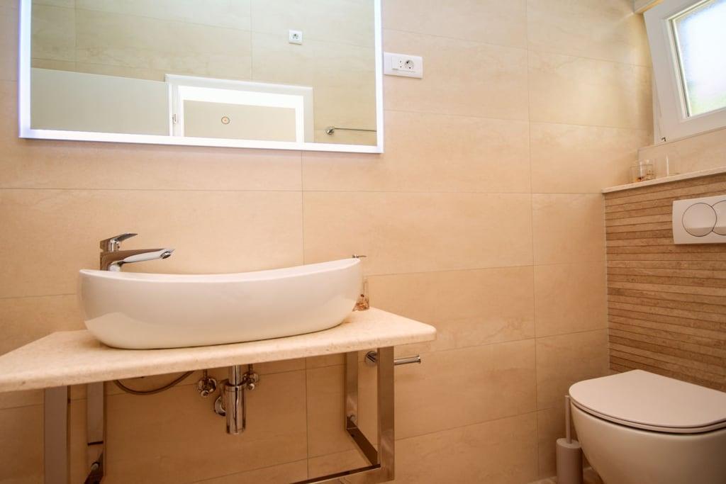 Die herrliche Villa Jasmina liegt nur eine Minute vom zauberhaften Strand des Dorfes Stanici entfernt in der Nähe von Omiš. In den frisch renovierten, und klimatisierten 4 Doppelbettzimmern (in 2 separaten Wohnungen) finden bequem bis zu 8 Personen Platz. Der beheizte Pool mit Massagedüsen befindet sich vor der Villa und hat ein schönes Holzdeck mit hochwertigen Liegestühlen. Am Pool befindet sich auch eine Terrasse mit Grillmöglichkeit; Bäume und Hecken sorgen für Privatsphäre in Ihrem ganz persönlichen Paradies. Zur Unterhaltung stehen auch Darts, Tischtennis, ein Fitnessraum, eine Sauna, ein Sandkasten für Kinder und eine Playstation mit Spielen zur Verfügung.