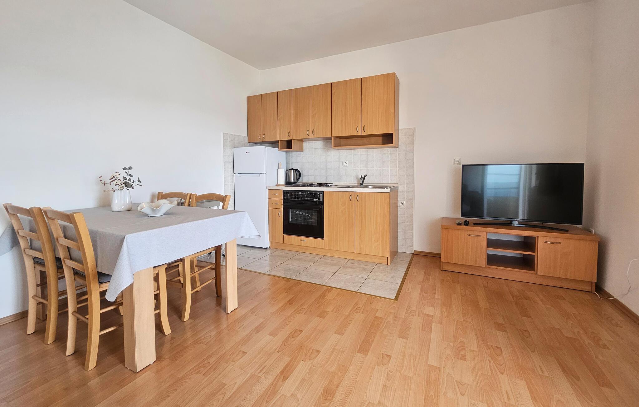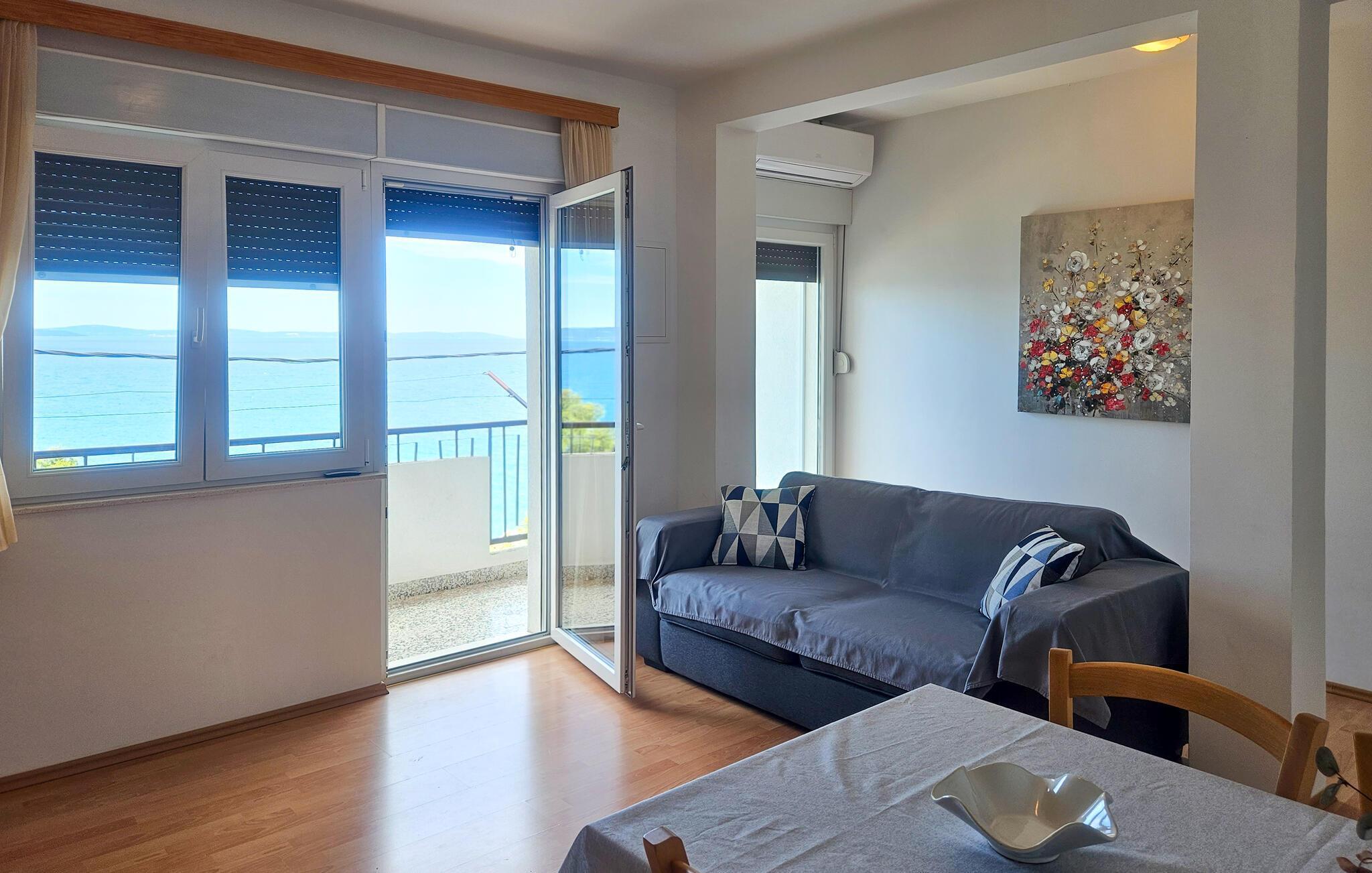 Genießen Sie erholsame Abende auf dem Balkon mit Blick auf das Meer und die malerische Küstenlandschaft. Hier können Sie sich ganz der mediterranen Sonne hingeben und den Alltag hinter sich lassen. Erleben Sie das Urlaubsgefühl in diesem perfekten Rückzugsort an der kroatischen Küste.