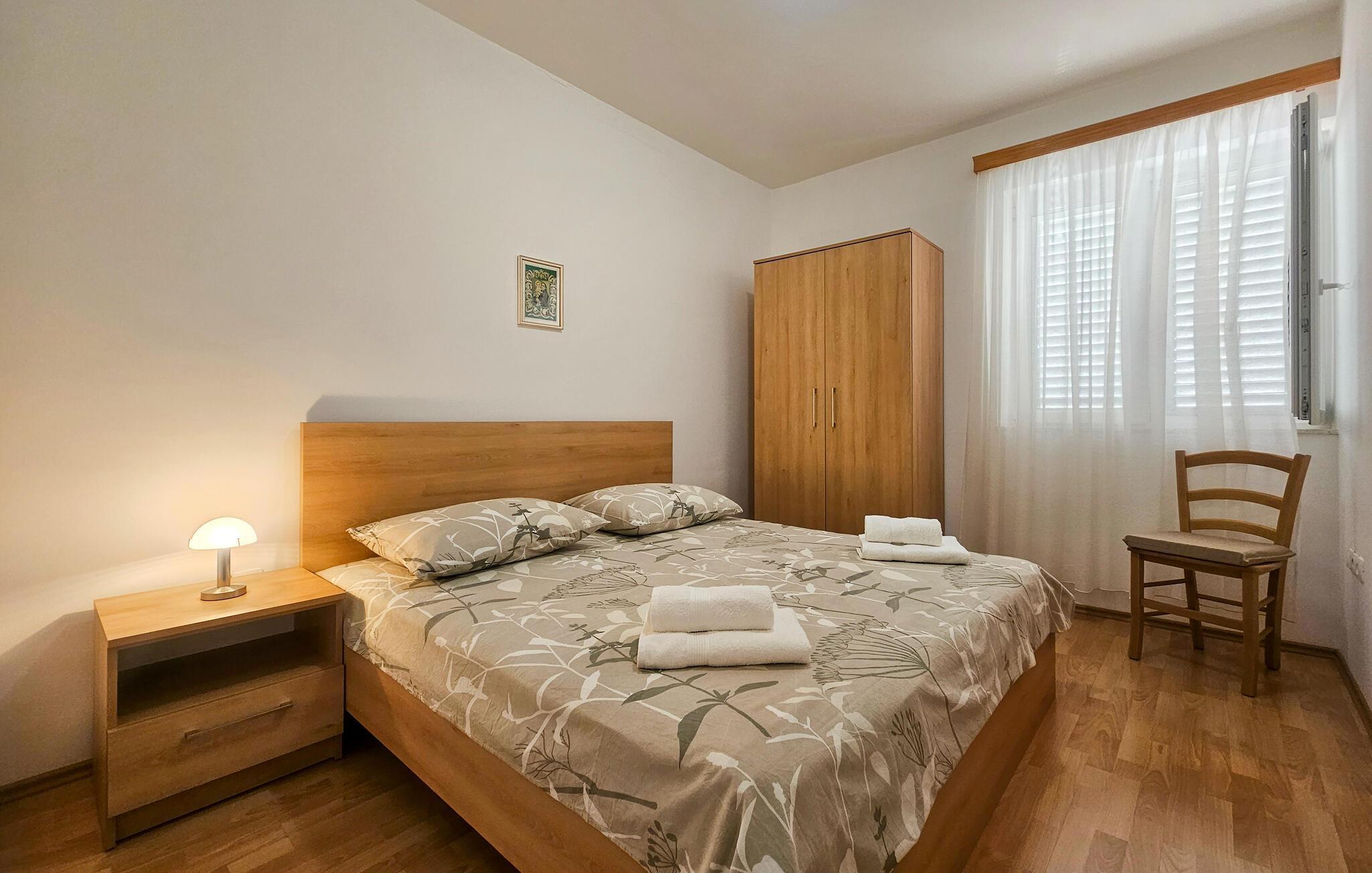 Die Lage ist einfach großartig – nur wenige Schritte trennen Sie vom kristallklaren Wasser der Adria, ebenfalls mit praktischer Anbindung an das Straßennetz. Die Wohnung ist angenehm eingerichtet und strahlt eine helle Atmosphäre aus, die sofort für Entspannung sorgt. Die Innenräume sind geräumig und komfortabel gestaltet, ideal für Familien oder Gruppen von Freunden.