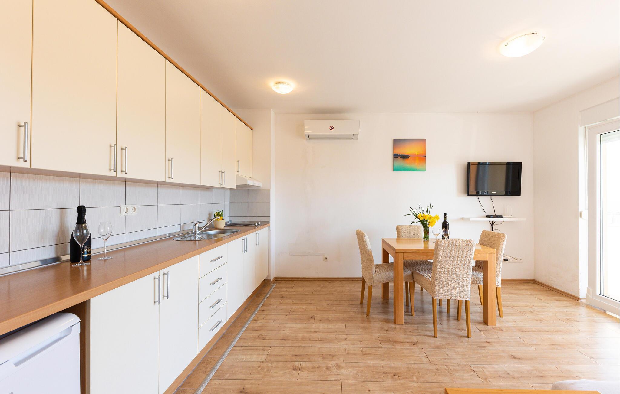 Verbringen Sie entspannte Tage am goldenen Sandstrand und erfrischen Sie sich im klaren, türkisfarbenen Meer. Erkunden Sie die lebendige Altstadt von Omiš, schlendern Sie durch charmante Gassen, entdecken Sie gemütliche Cafés oder probieren Sie köstliche dalmatinische Spezialitäten in lokalen Restaurants. Paddeln Sie mit dem Kajak auf dem Fluss Cetina oder entdecken Sie die atemberaubende Natur beim Wandern oder Mountainbiken.
