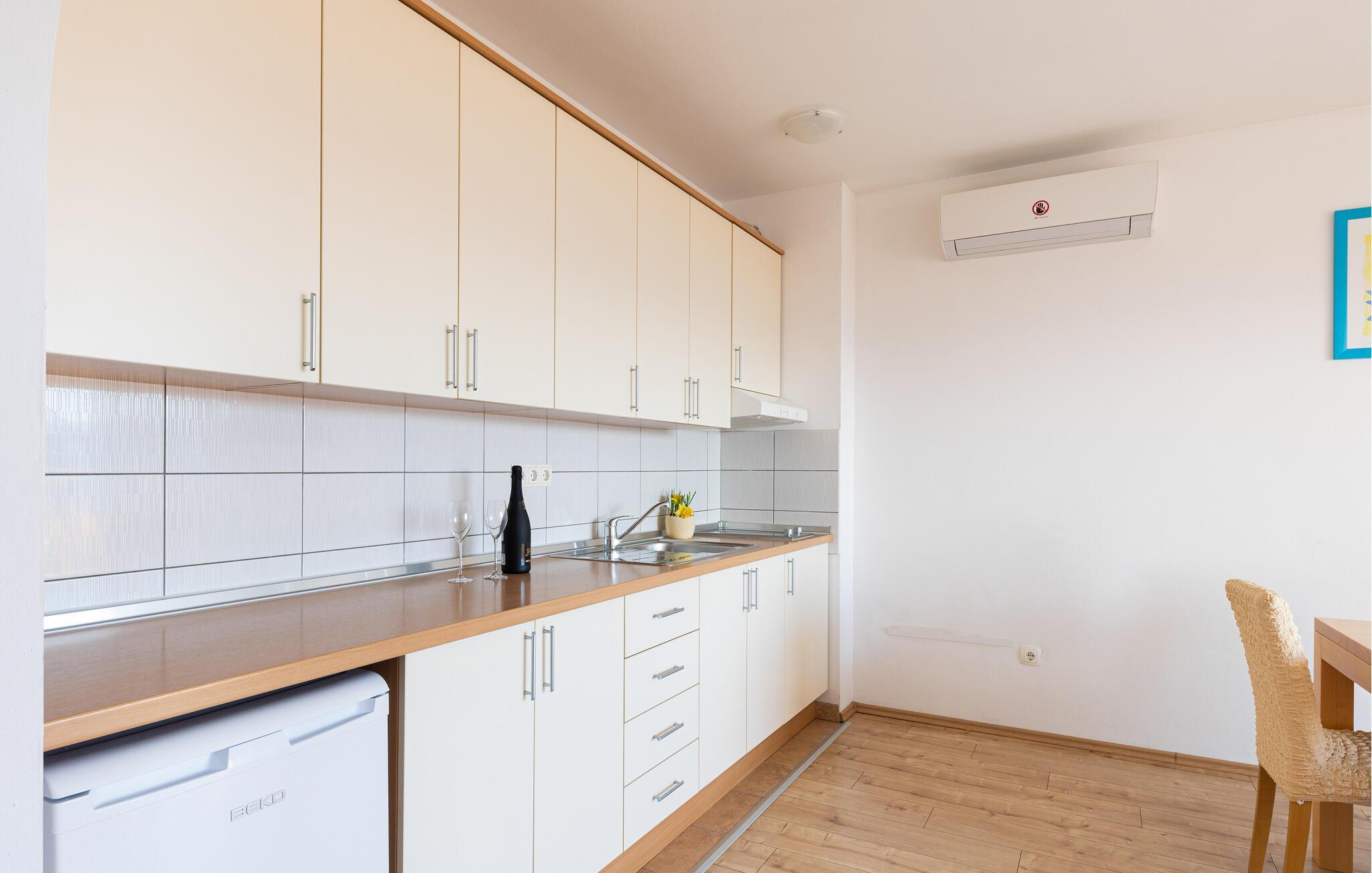Die Küche verfügt über Warmwasser