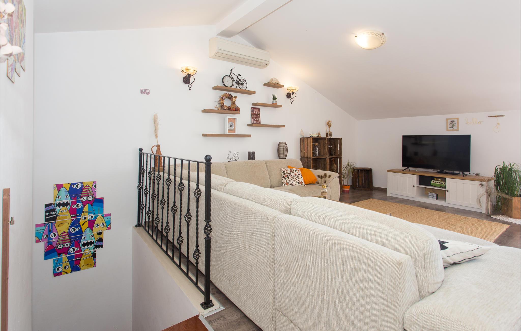 Die komfortable Wohnung bietet Platz auch für die größere Familie oder eine Gruppe von Freunden. Schon beim Betreten der hellen Räume mit wohnlicher Einrichtung werden Sie sich wohlfühlen. Nehmen Sie die Mahlzeiten gemeinsam mit Blick auf das Meer ein. Nach einem wunderbaren Urlaubstag, den Sie entweder am Strand oder beim Erkunden der Umgebung verbracht haben, können Sie sich auf dem einladenden Sofa bequem machen, einen Film sehen oder einfach noch lange gemütlich zusammen sitzen.