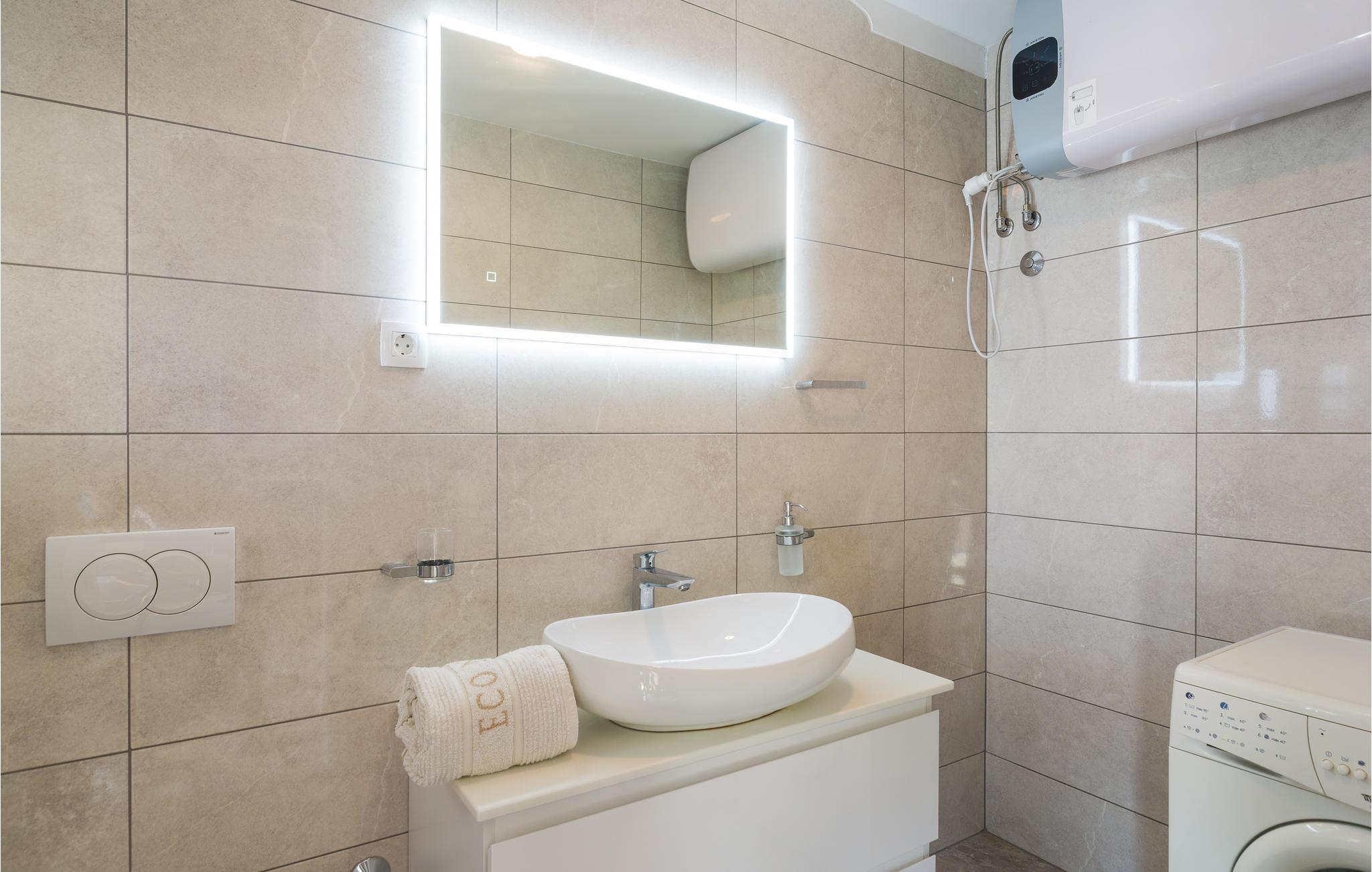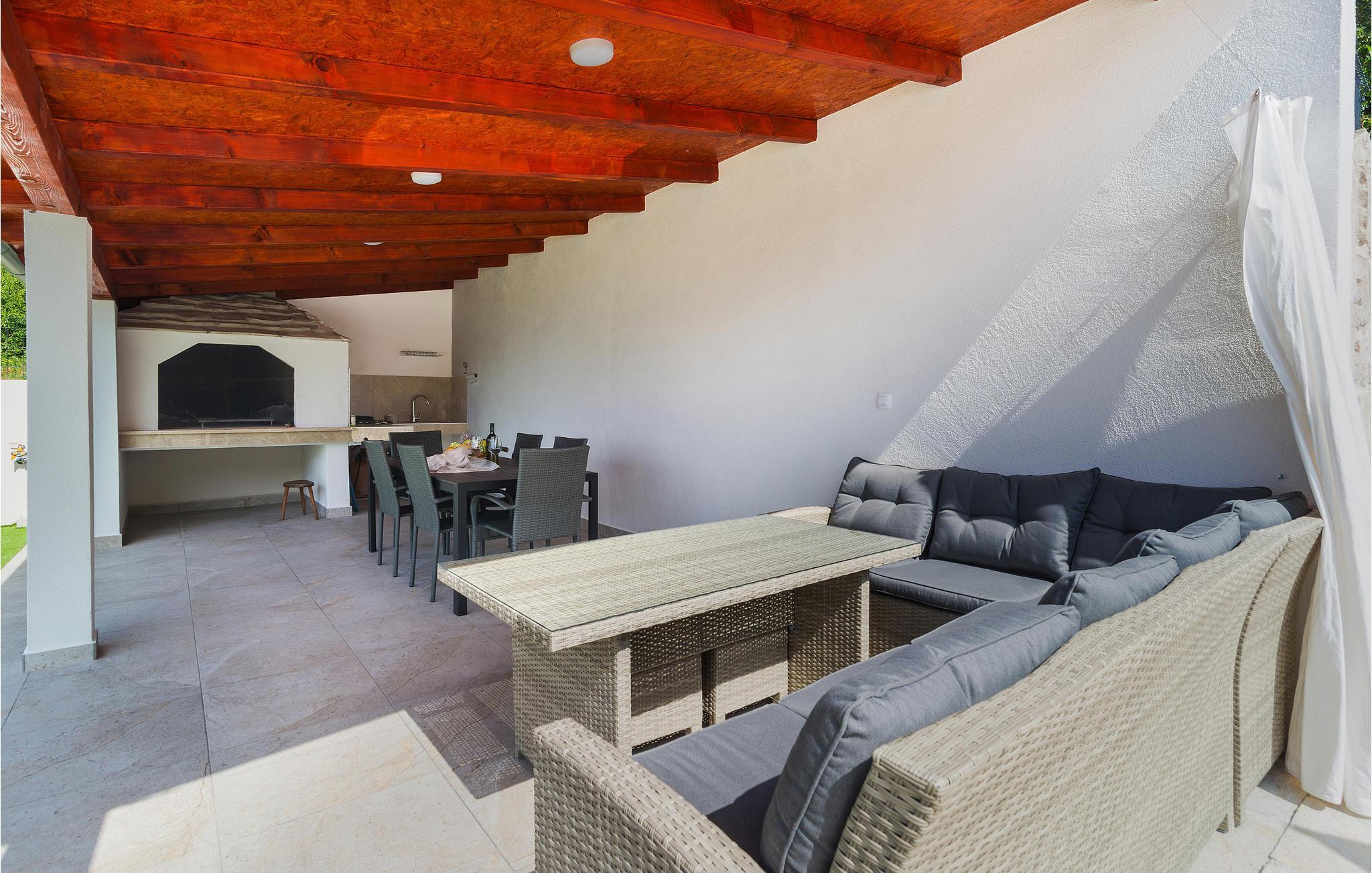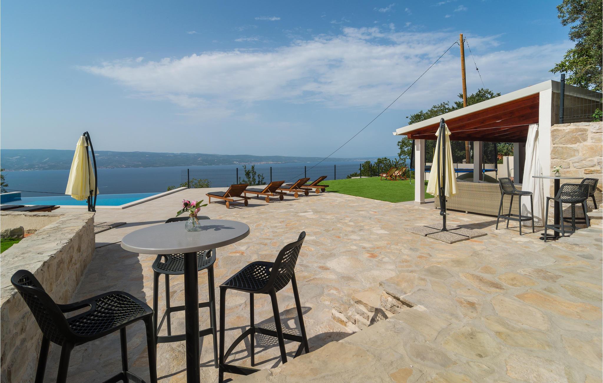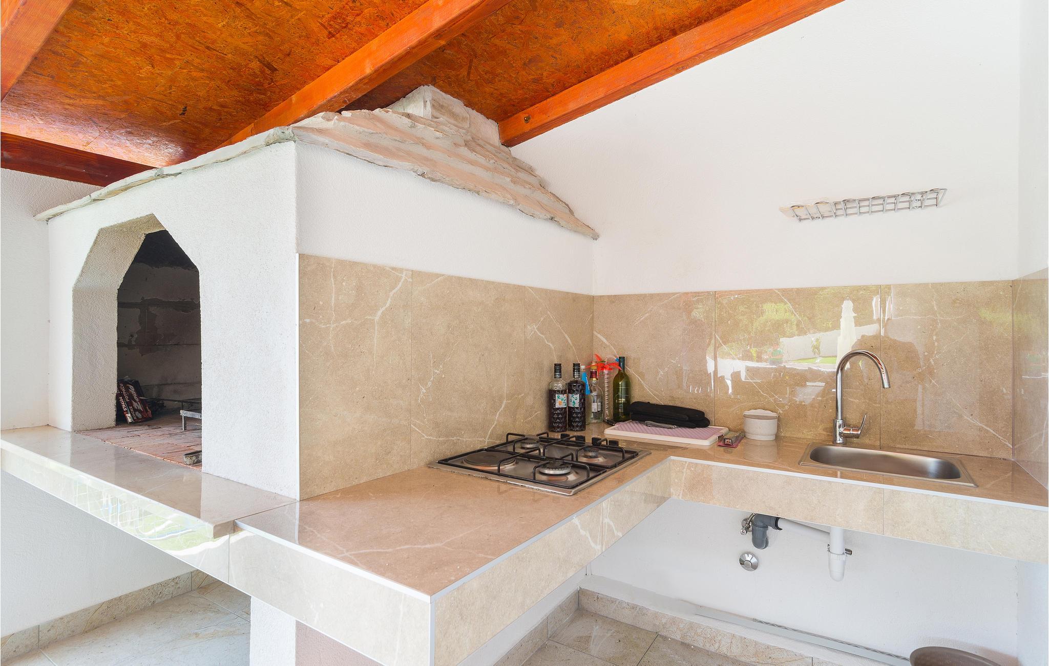 Beginnen Sie Ihren Urlaub mit einem Erlebnis und fahren auf einem hügeligen Gelände auf Beton 25 m bergab zum Ferienhaus. Hier können Sie Ihre Privatsphäre genießen und das schöne Haus voll auskosten. Das Haus ist in zwei Eingänge und Bereiche aufgeteilt, sodass zwei Befreundete Familie oder eine Urlaubsreise gemeinsam mit den Großeltern möglich ist und Sie Ihre Privatsphäre genießen können. Genießen Sie die geschmackvolle und moderne Einrichtung und treten mit dem Morgenkaffee hinaus auf die Terrasse und genießen den fantastischen Ausblick auf das Meer. Genießen Sie hier erholsame Urlaubstage beim Baden, Sonnen und Spielen und lassen die Abende mit gegrillten Speisen von der Außenküche ausklingen.