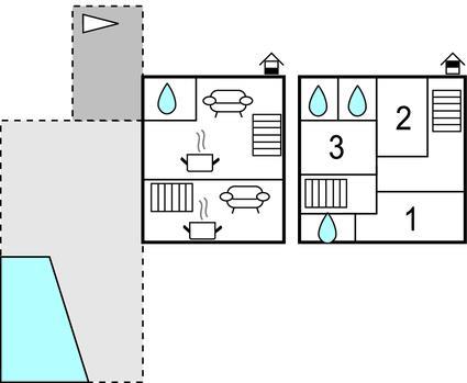 Badezimmer 4m2 (nr. 1) - WC. Warmes und kaltes Wasser. Dusche