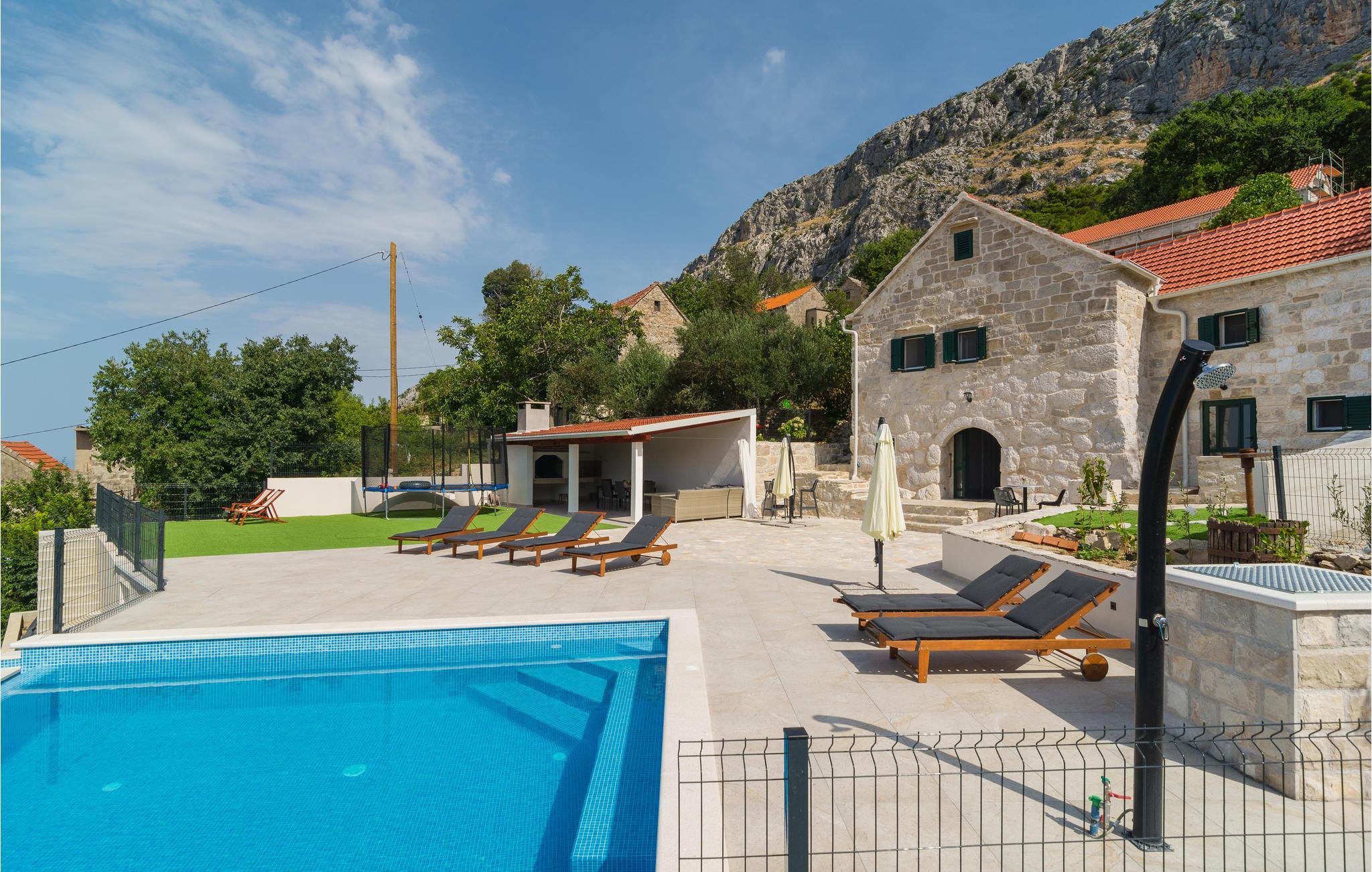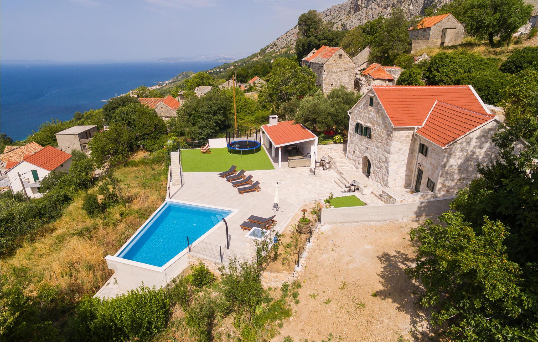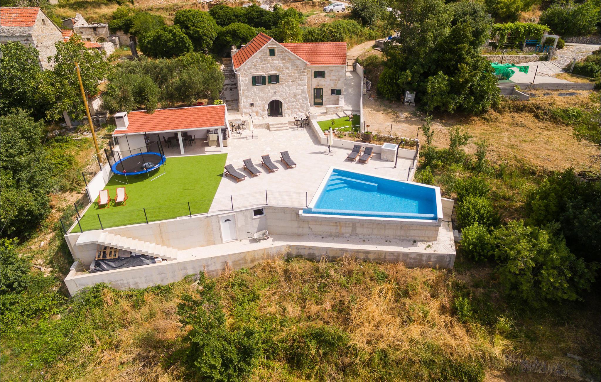 Dieses charmante und dalmatinische Steinhaus heißt Sie mit einem schönen Pool und atemberaubender Aussicht auf das Meer willkommen.