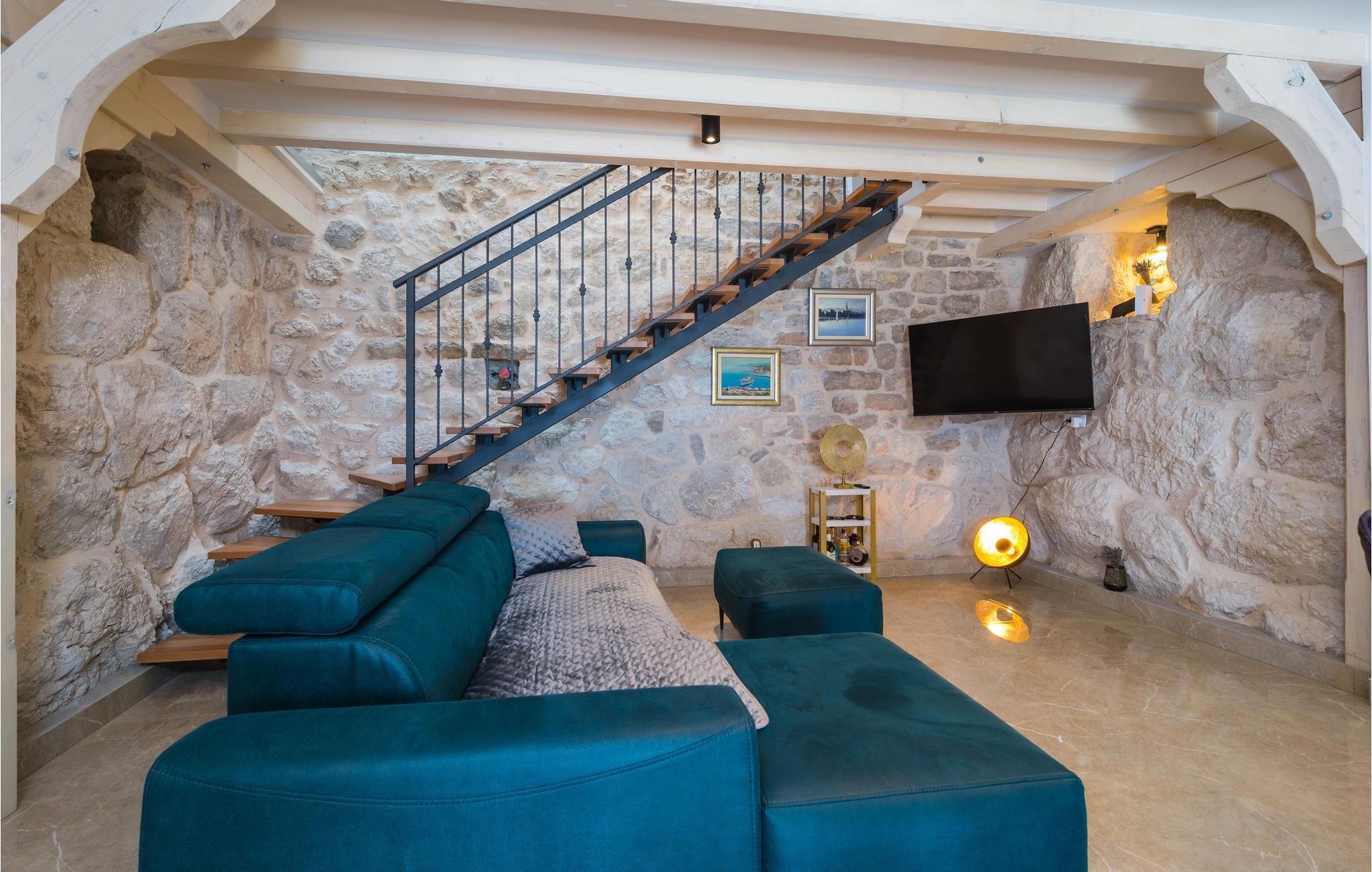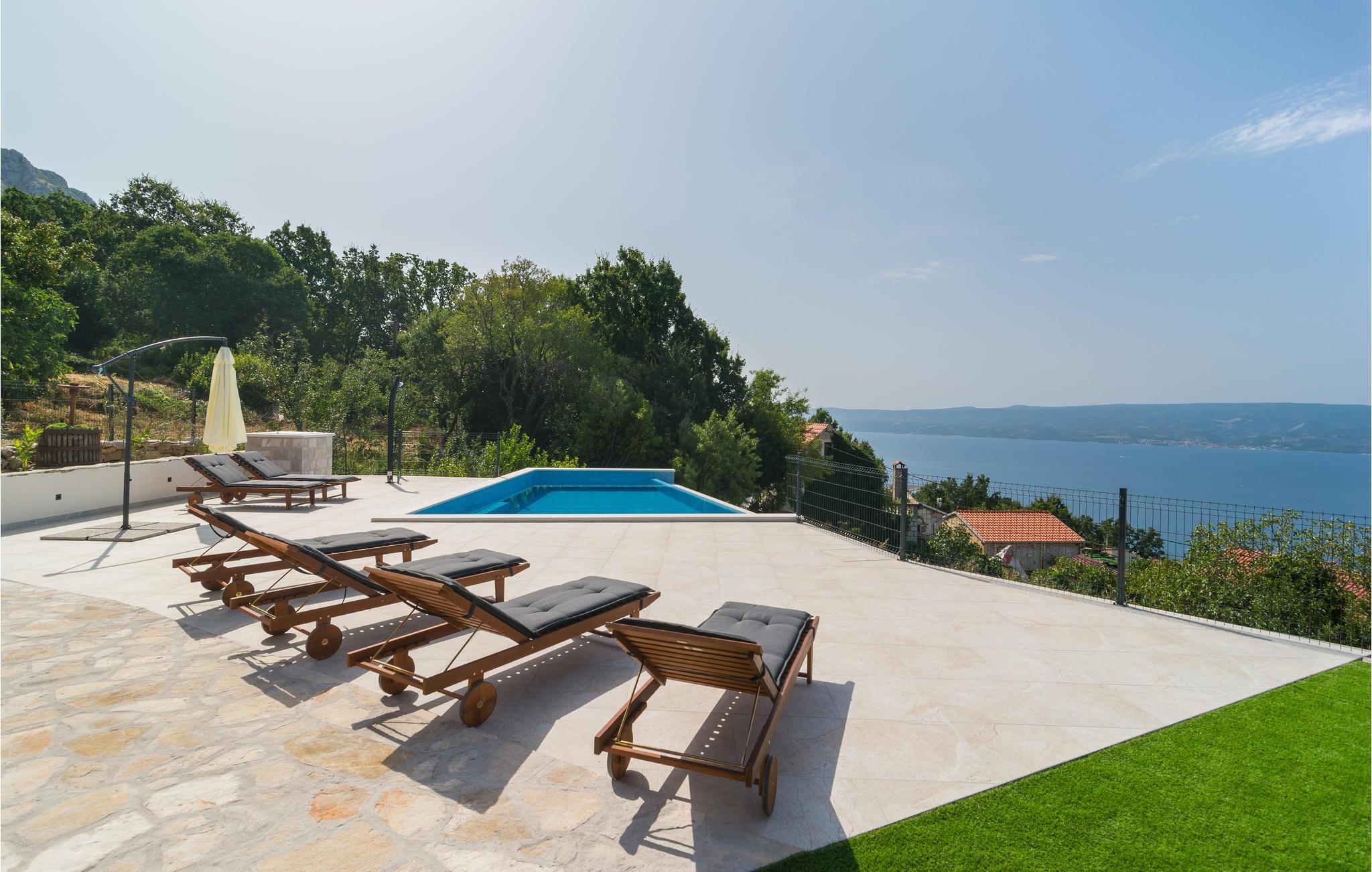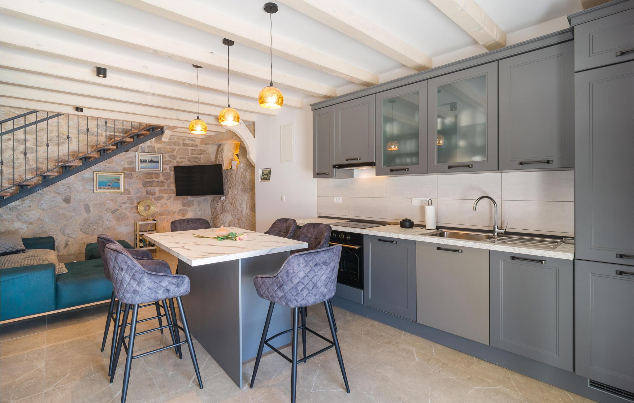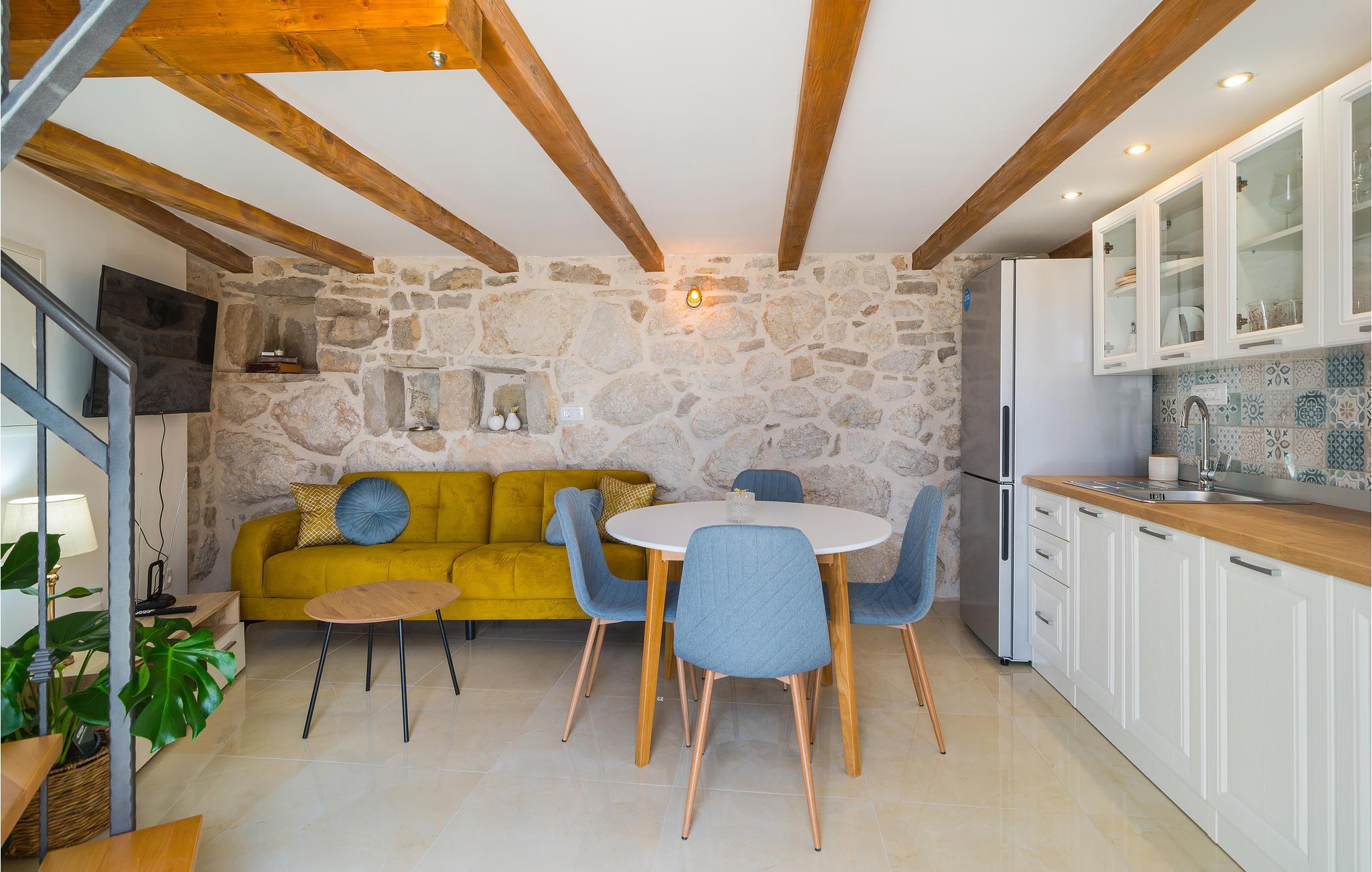 Dieses charmante und dalmatinische Steinhaus heißt Sie mit einem schönen Pool und atemberaubender Aussicht auf das Meer willkommen.