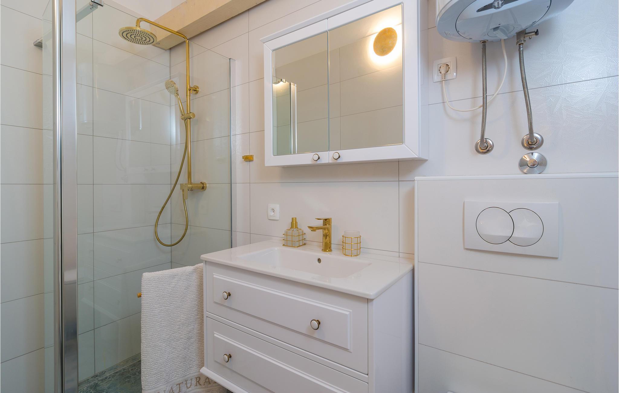 Badezimmer 4m2 (nr. 2) - WC. Warmes und kaltes Wasser. Dusche