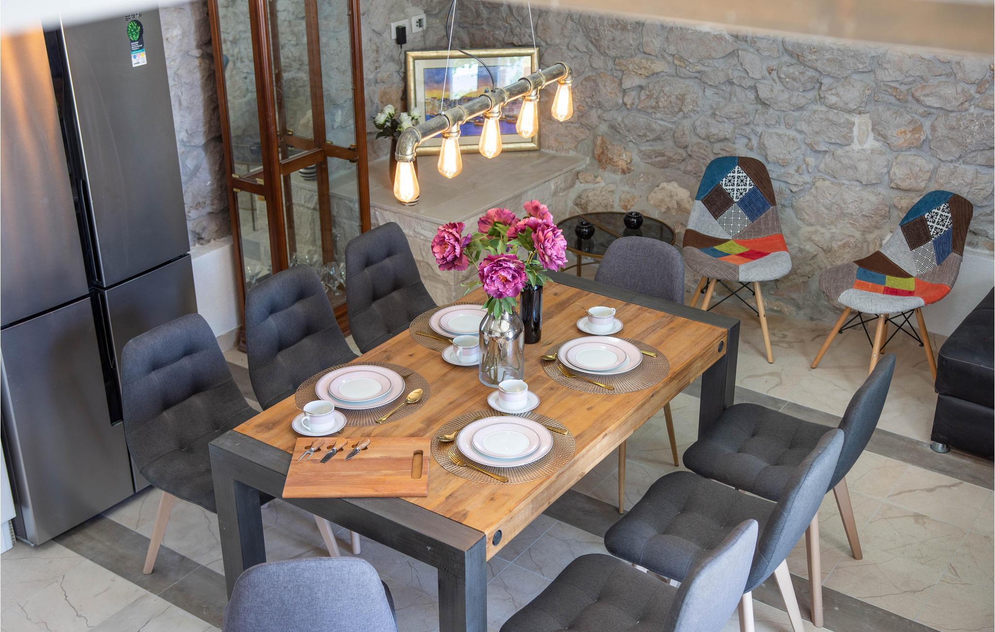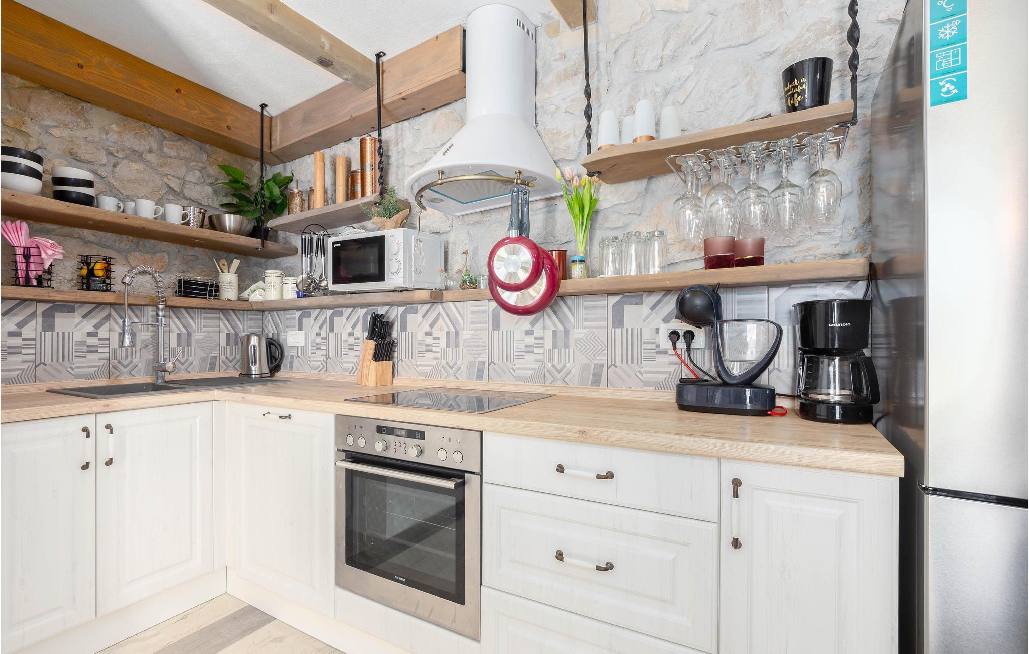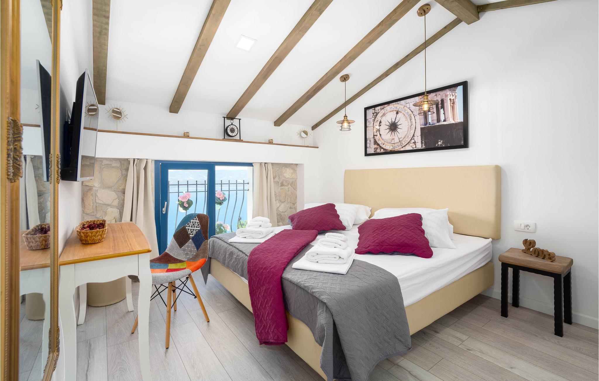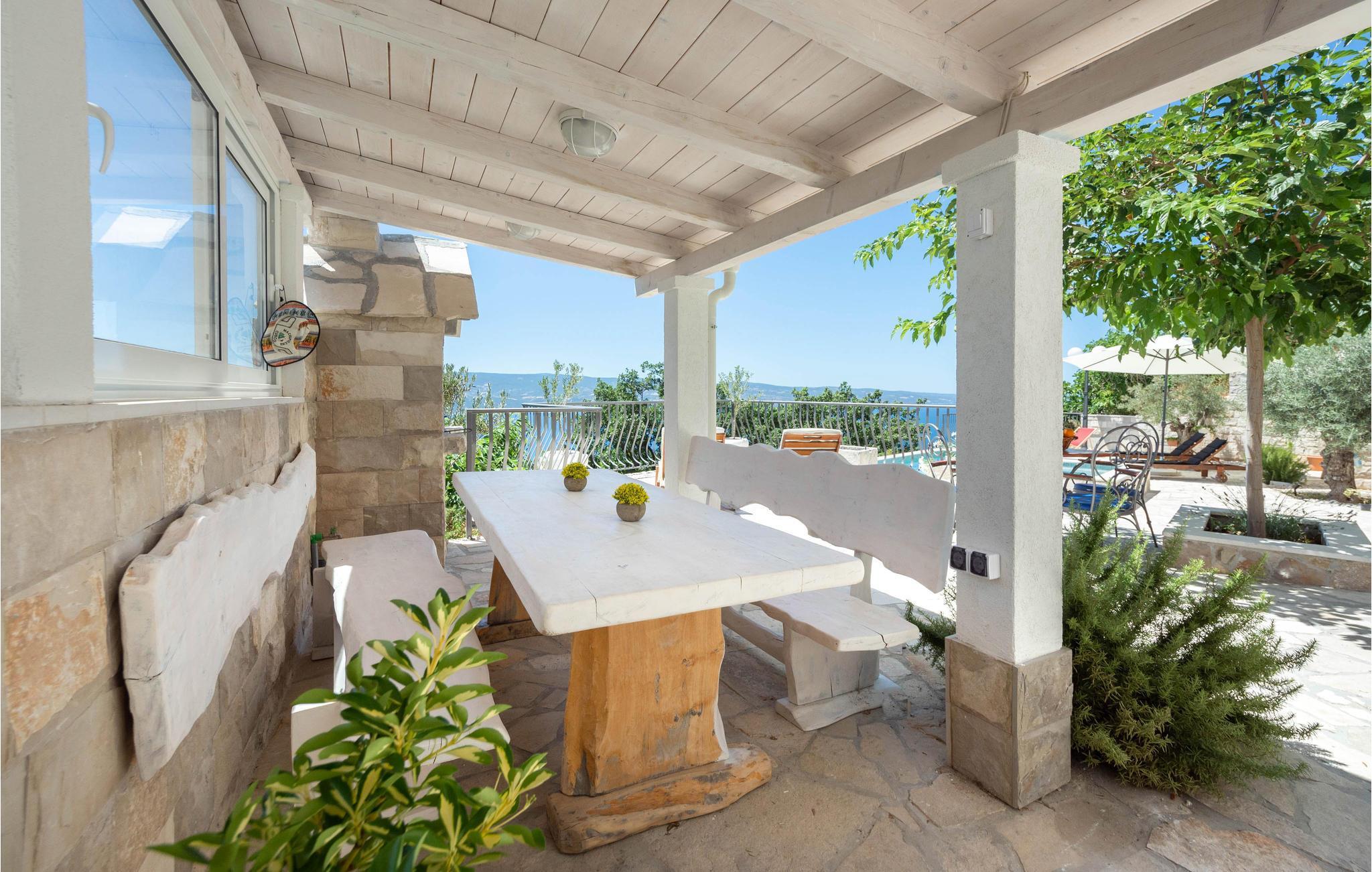 Dieses Ferienhaus mit Pool liegt an den Berghängen des Gebirges Dinara, im Herzen von Dalmatien und nicht weit von Split entfernt. Die rustikale und modern eingerichtete Ferienunterkunft besteht aus zwei Wohneinheiten und bietet Ihnen alles, was Sie für einen angenehmen Aufenthalt benötigen. Genießen Sie die herrliche Aussicht auf das offene Meer, die große Terrasse mit Pool für Ihre Erfrischung sowie den Whirlpool, in dem Sie sich entspannen können. Das Erdgeschoß mit modern ausgestatteter Küche sowie Ess- und Wohnbereich ist die Zone für geselliges Beisammensein. Der Schlafbereich befindet sich auf den oberen Etagen.