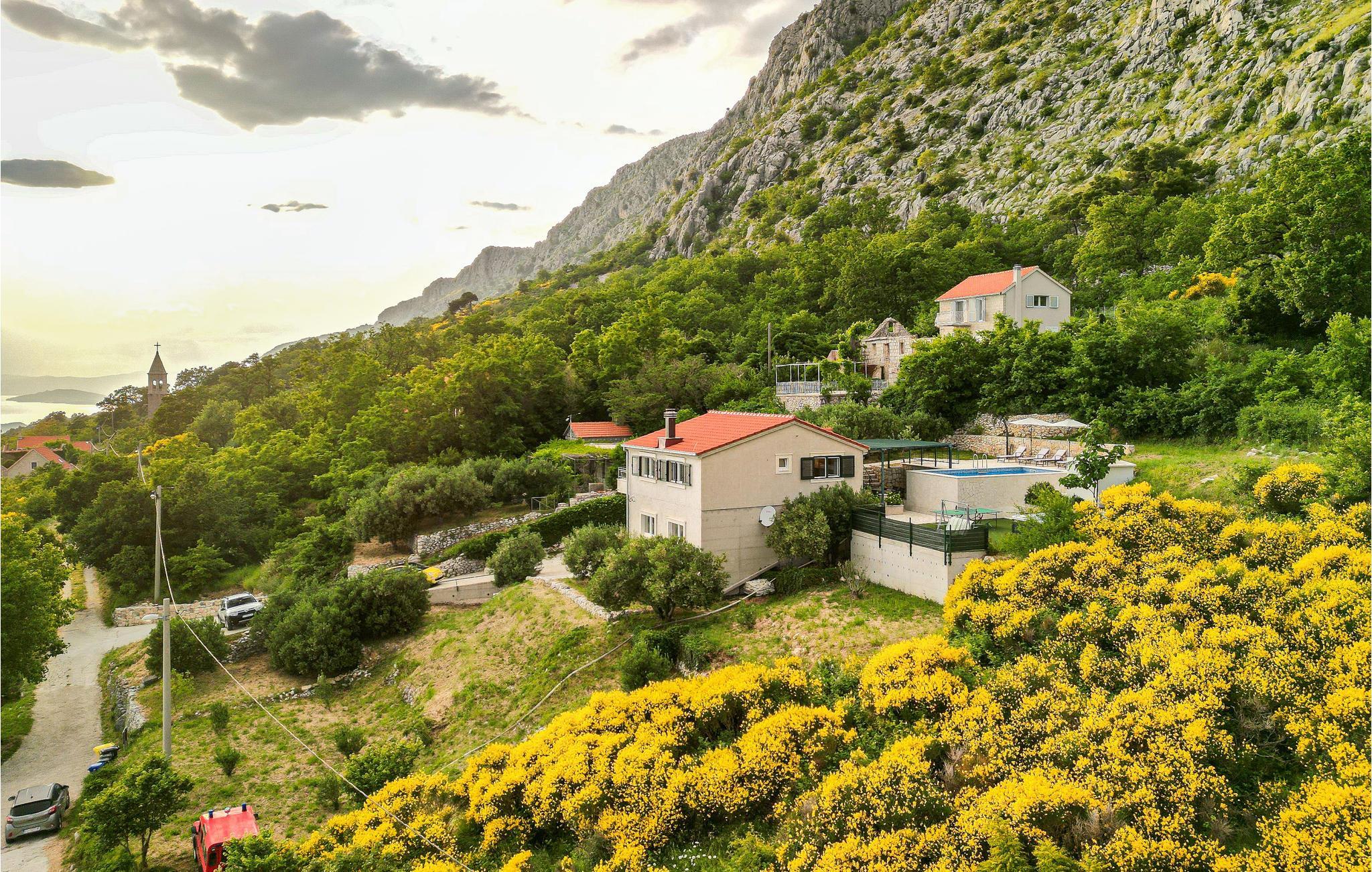 Dieses kleine Ferienhaus mit Pool liegt im alten Dorf Duce, das man über eine steile und kurvige Bergstraße erreichen kann. Das Haus ist schön und funktional eingerichtet und eignet sich gut für Familien mit Kindern. Hier können Sie die Ruhe genießen. Der Ort genießt Hanglage, deshalb verfügt das Haus über einen herrlichen Panoramablick über fast das gesamte Mitteldalmatien. Besuchen Sie die Stadt Omis mit ihren vielen Annehmlichkeiten und schönen Stränden.