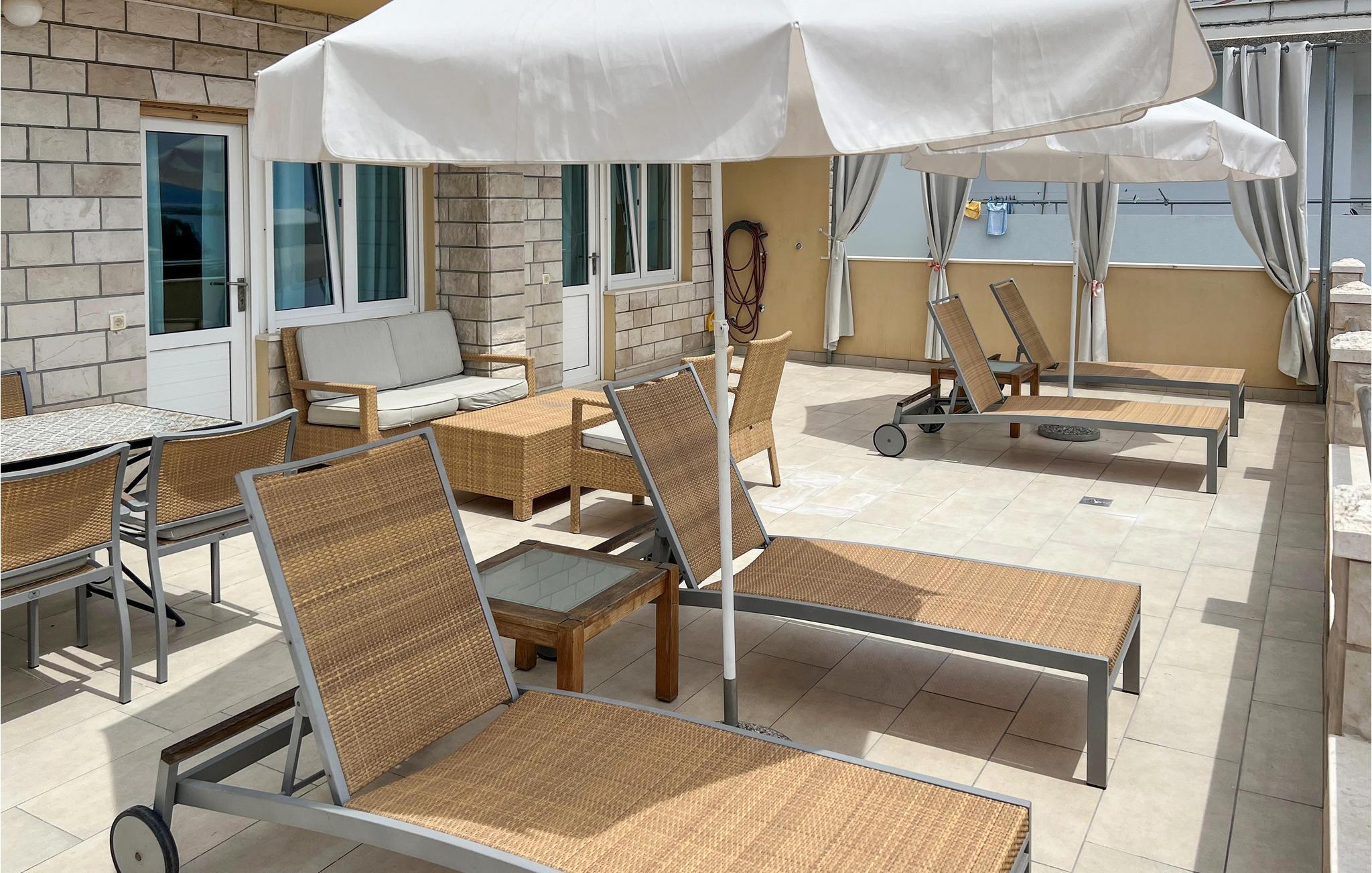 Auf den Sonnenliegen und auf der Terrasse werden Sie einen unvergesslichen Urlaub erleben. Eine zusätzliche, schattenspendende Terrasse bietet Auszeit von der Sonne, während sich hinter dem Haus die Bocciabahn und der Garten befinden.