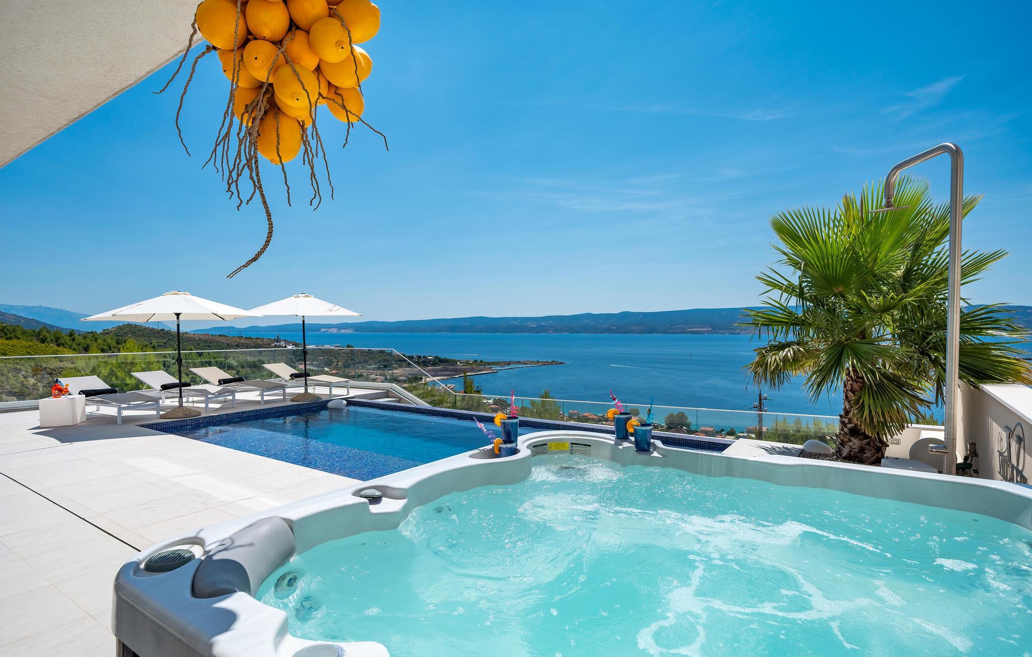 Genießen Sie in diesem attraktiven Ferienhaus mit Pool und Whirlpool ein fantastisches Panorama.