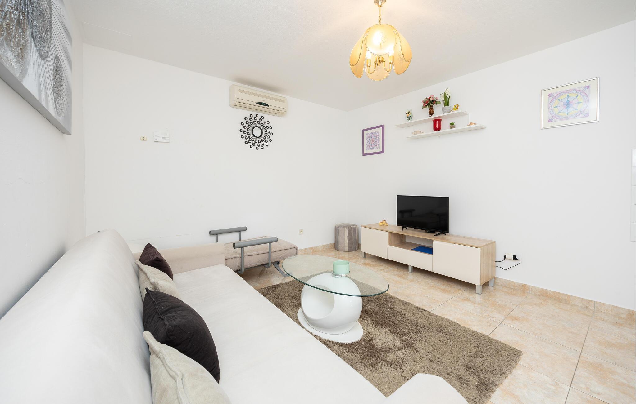 Verbringen Sie Ihren nächsten Urlaub in dieser Ferienwohnung zwischen Omis und Dugi Rat und genießen Sie die ruhige Lage in Strandnähe. Entspannen Sie sich am Gemeinschaftspool, der mit bequemen Sonnenliegen ausgestattet ist. Beginnen Sie den Tag mit einem Kaffee auf der Terrasse und genießen Sie die freie Urlaubszeit in vollen Zügen. Die Wohnung bietet einen gemütlichen Wohnbereich, in dem Sie auf dem Sofa entspannen und einen Film genießen können. Verbringen Sie auch gesellige Abende am Grillplatz im Freien und kosten Sie lokale Spezialitäten in einer entspannten Atmosphäre.