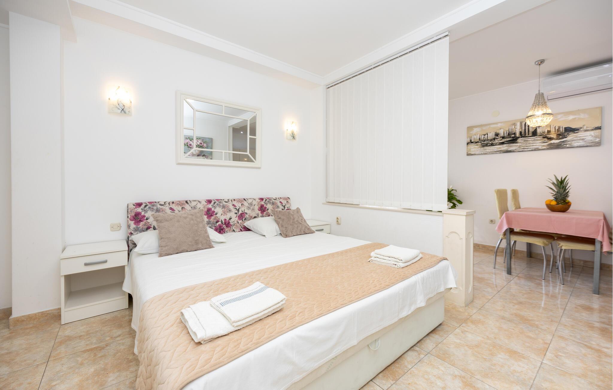 Spazieren Sie zum nahegelegenen Sandstrand und lernen Sie weitere wunderschöne Strände der dalmatinischen Küste während einer Bootsfahrt kennen. Erkunden Sie die Altstadt von Omiš mit ihren charmanten Gassen oder genießen Sie Adrenalinkicks beim Rafting auf der Cetina.