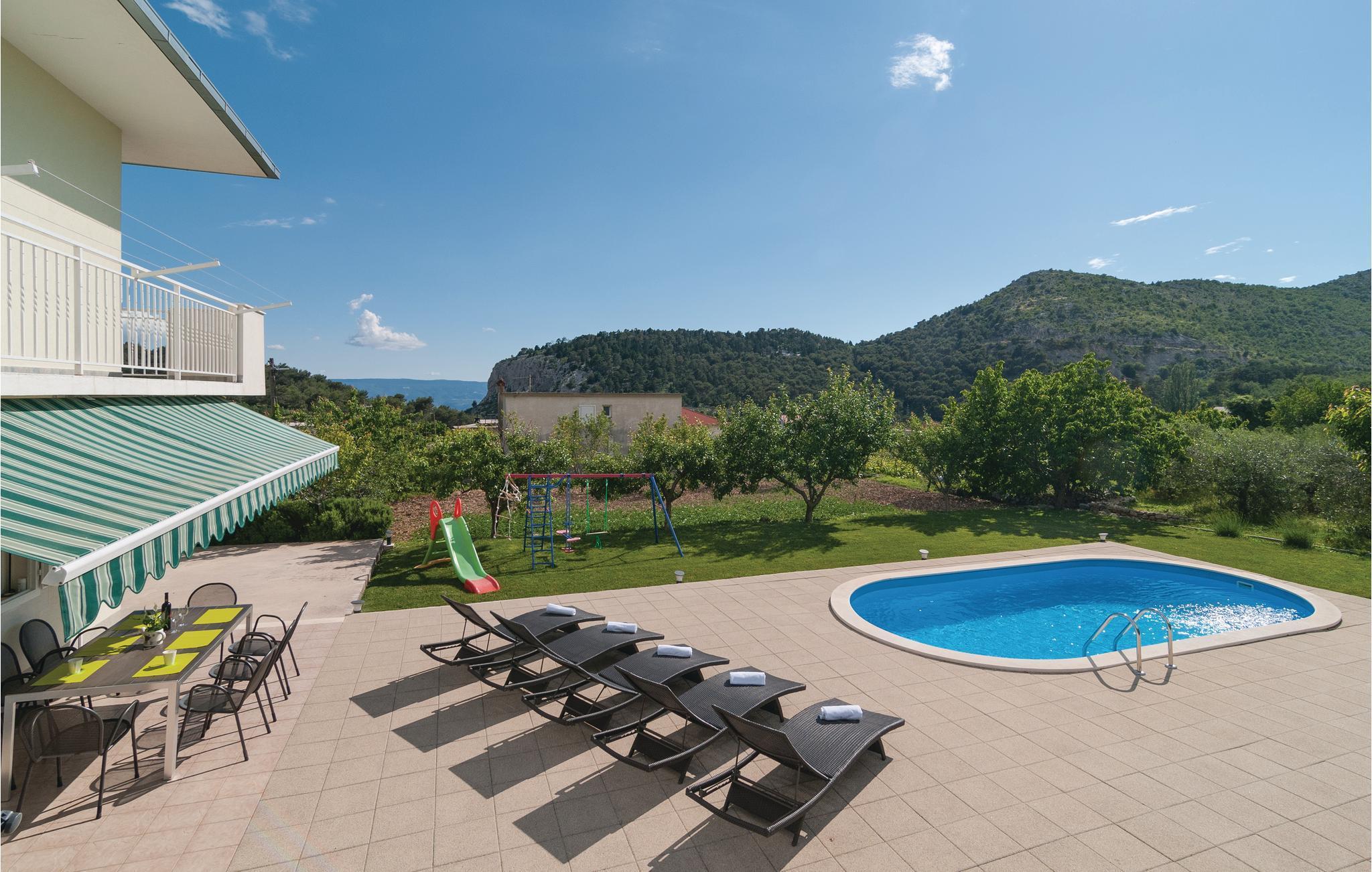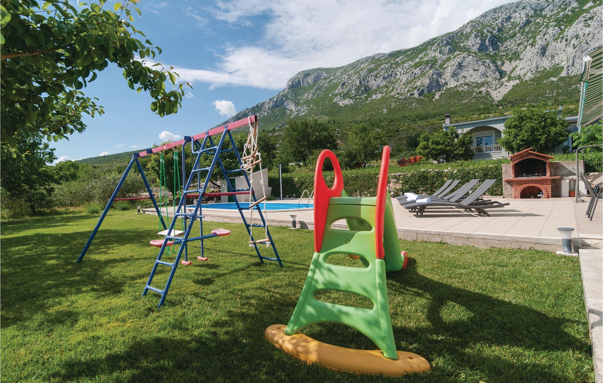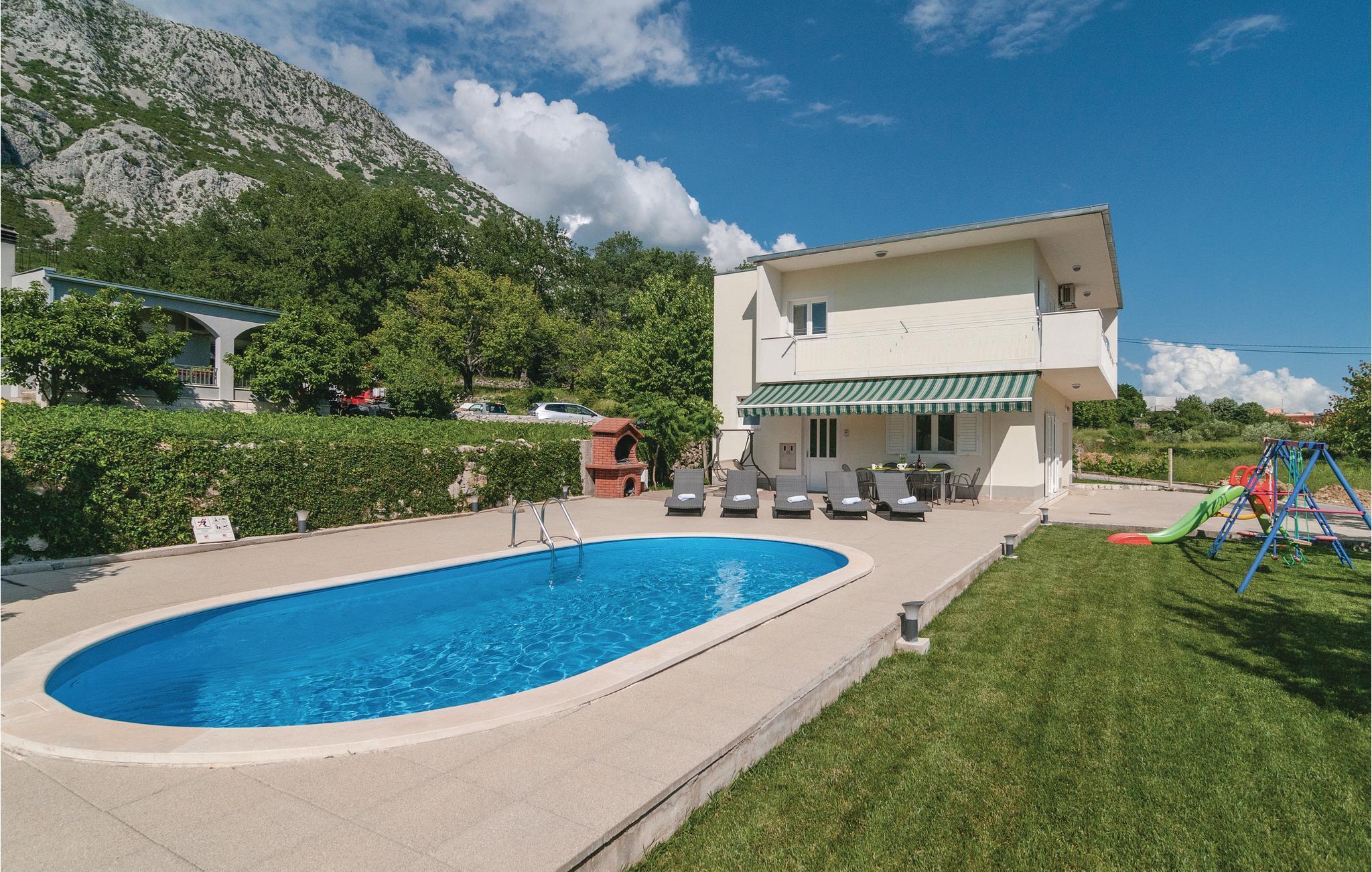 Das Ferienhaus liegt im ruhigen Dorf Gata, umgeben von Natur. Es besteht aus drei Schlafzimmern, zwei Küchen mit Wohnzimmern und zwei Bädern. Von der Terrasse bietet sich ein herrlicher Blick auf die Landschaft und teilweise auf das Meer. Im Pool können Sie Erfrischung suchen und sich dann in der Sonne entspannen. Aufgrund der natürlichen Umgebung empfehlen wir Grillenabende an der frischen Luft. Der Eigentümer hat in der Nähe auch einen Gemüsegarten, wo Sie sich bedienen dürfen. In der Stadt Omis, die ca.5 km entfernt ist, werden Sie viel Kultur aber auch Unterhaltungsangebote bekommen, (Piratenschlacht)oder Rafting.