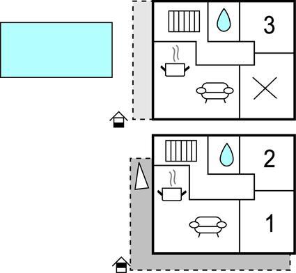Badezimmer (nr. 2) - WC. Warmes und kaltes Wasser. Dusche