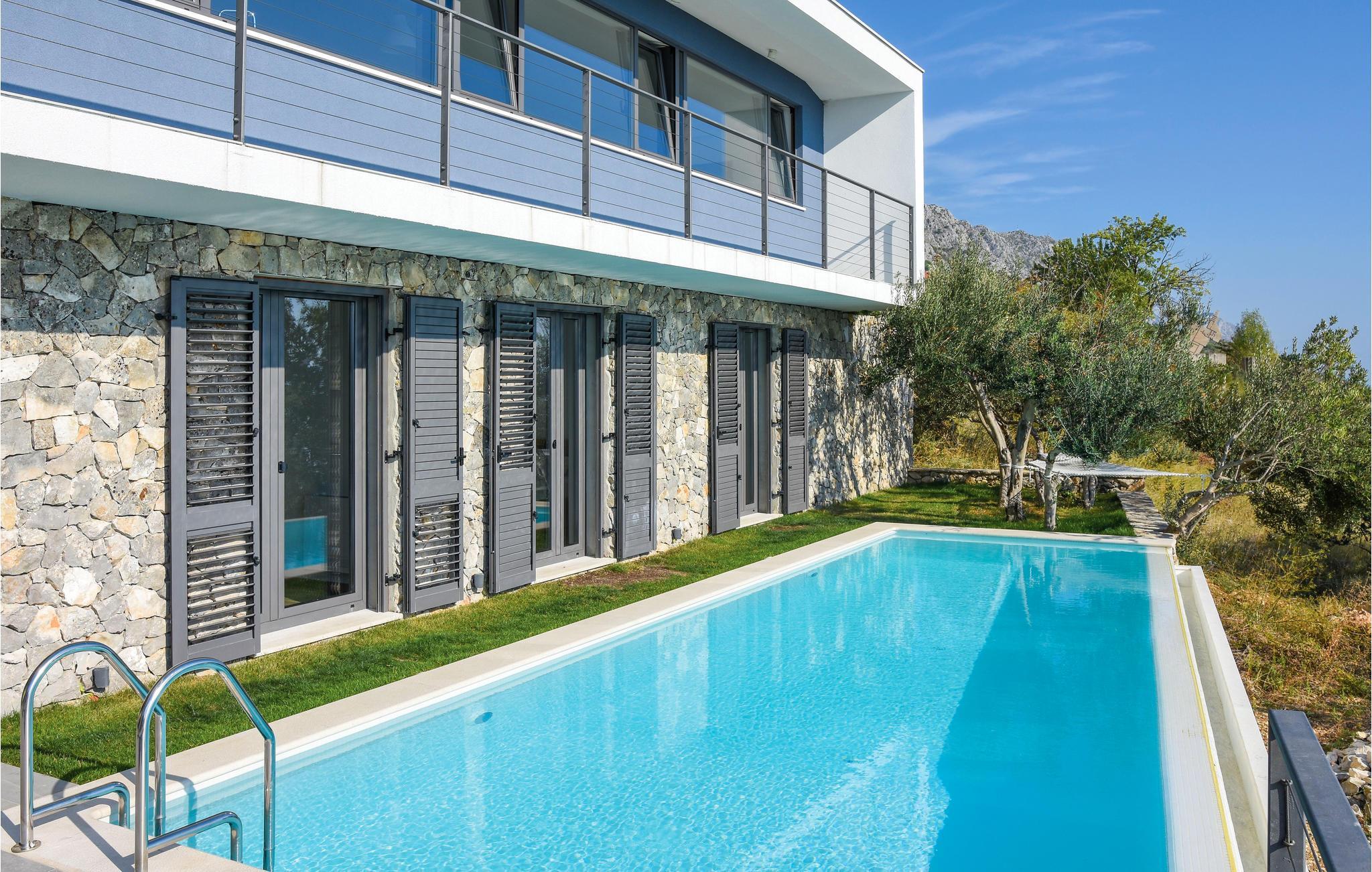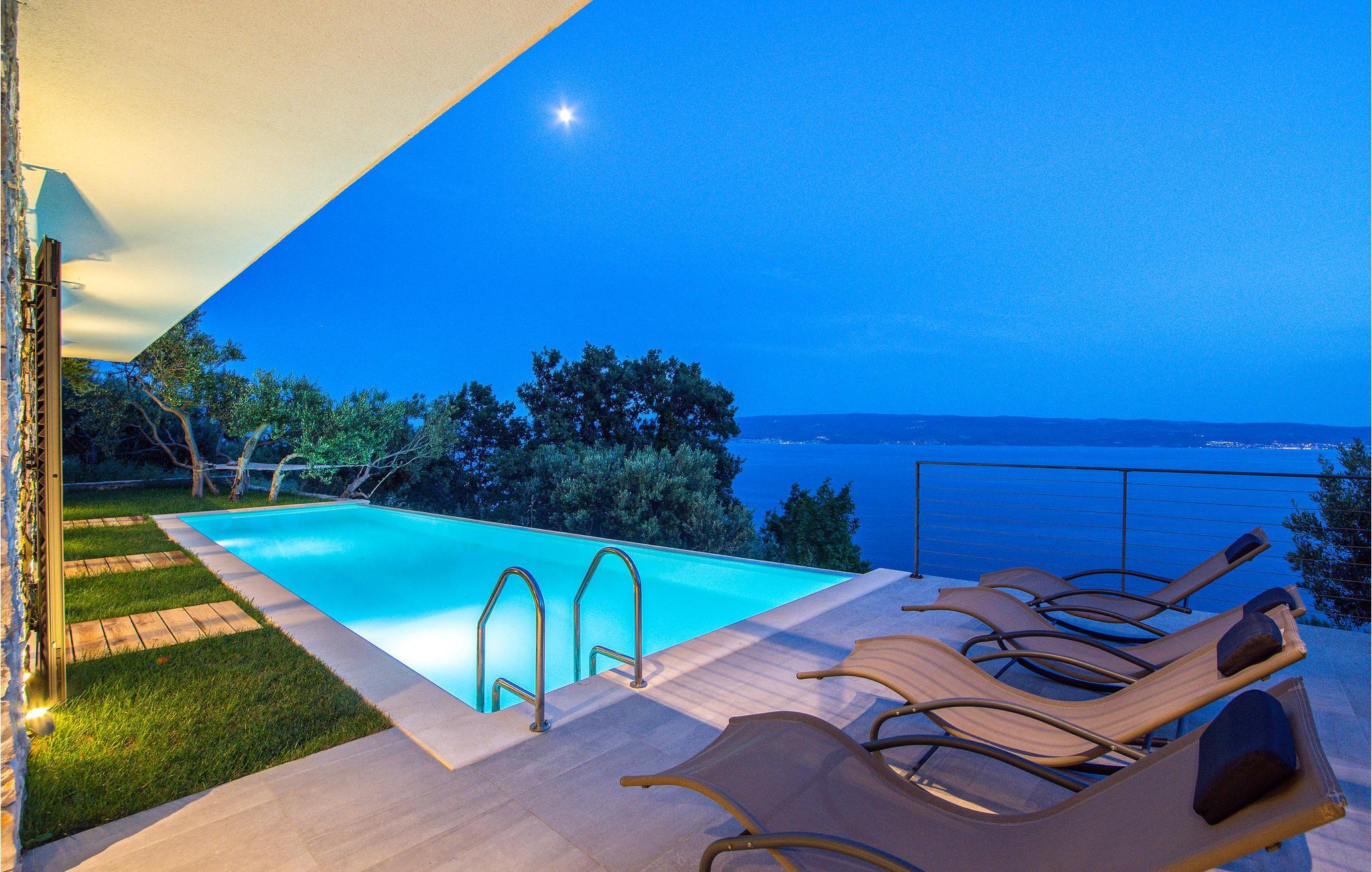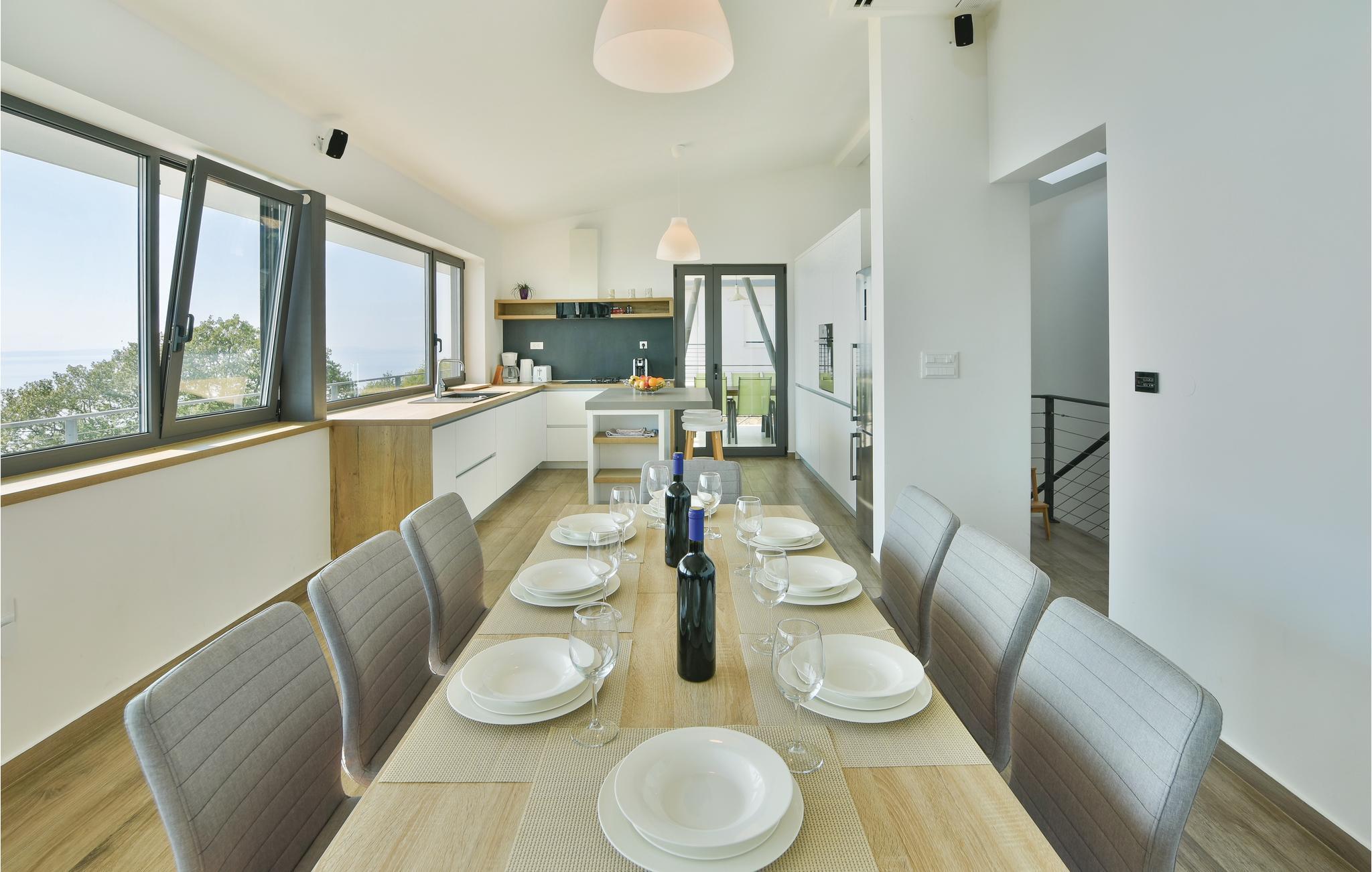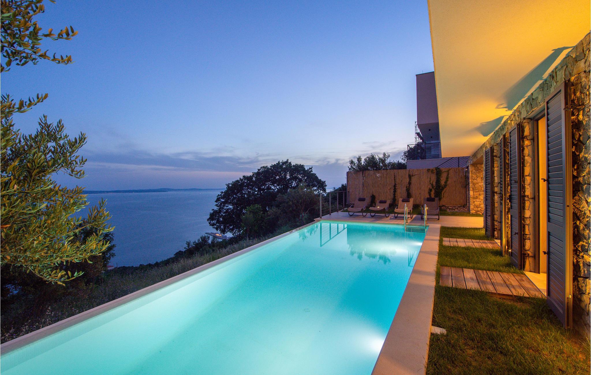 Ein grandioses Ferienhaus, das mit seinem kompletten Exterieur auf phantastische Art mediterranes Lebensgefühl im 21. Jahrhundert verkörpert. Stein, Holz, Oliven, Meer, mediterrane Heilkräuter, sind nur ein Teil dieser schönen Flairs. Das Interieur ist luxuriös und ebenso komplett ausgestattet. Das Grundstück ist terrassiert, vom Parkplatz gelangen Sie direkt in den Wohnbereich. Über Außen- sowie Innentreppen gehen Sie hinab in die Ruheoase. Dort liegt der Pool sichtgeschützt und zugleich mit herrlicher Panoramaaussicht. Auch die Schlafzimmer auf dieser Etage haben direkte Ausgänge zum Pool, so können Sie auf einfache Art eine morgendliche Schwimmtour unternehmen. Das Haus ist wirklich spektakulär und der ideale Ort um dem schnelllebigen Alltag und Verkehrslärm zu entfliehen. Die frische Luft und die Natur heilen Geist und Körper und in Kombination mit diesem Luxus bekommt Ihr Urlaub eine neue Dimension. "Laden Sie Ihre Batterien auf", an diesem unvergesslichen Ort.