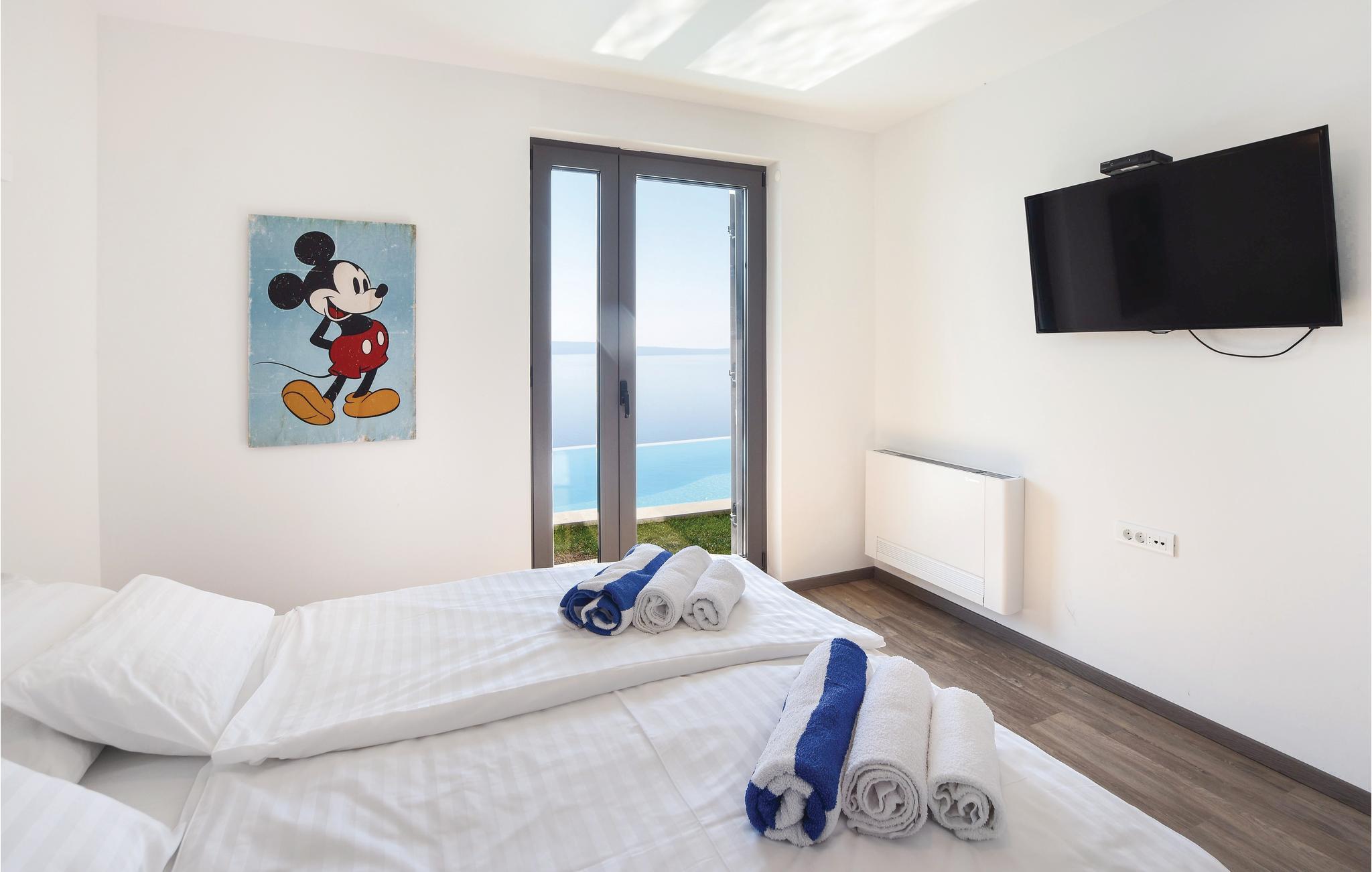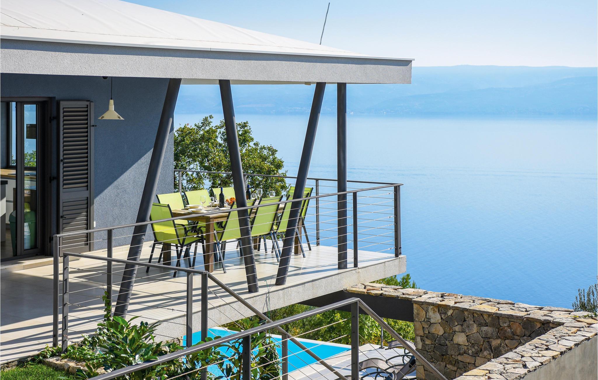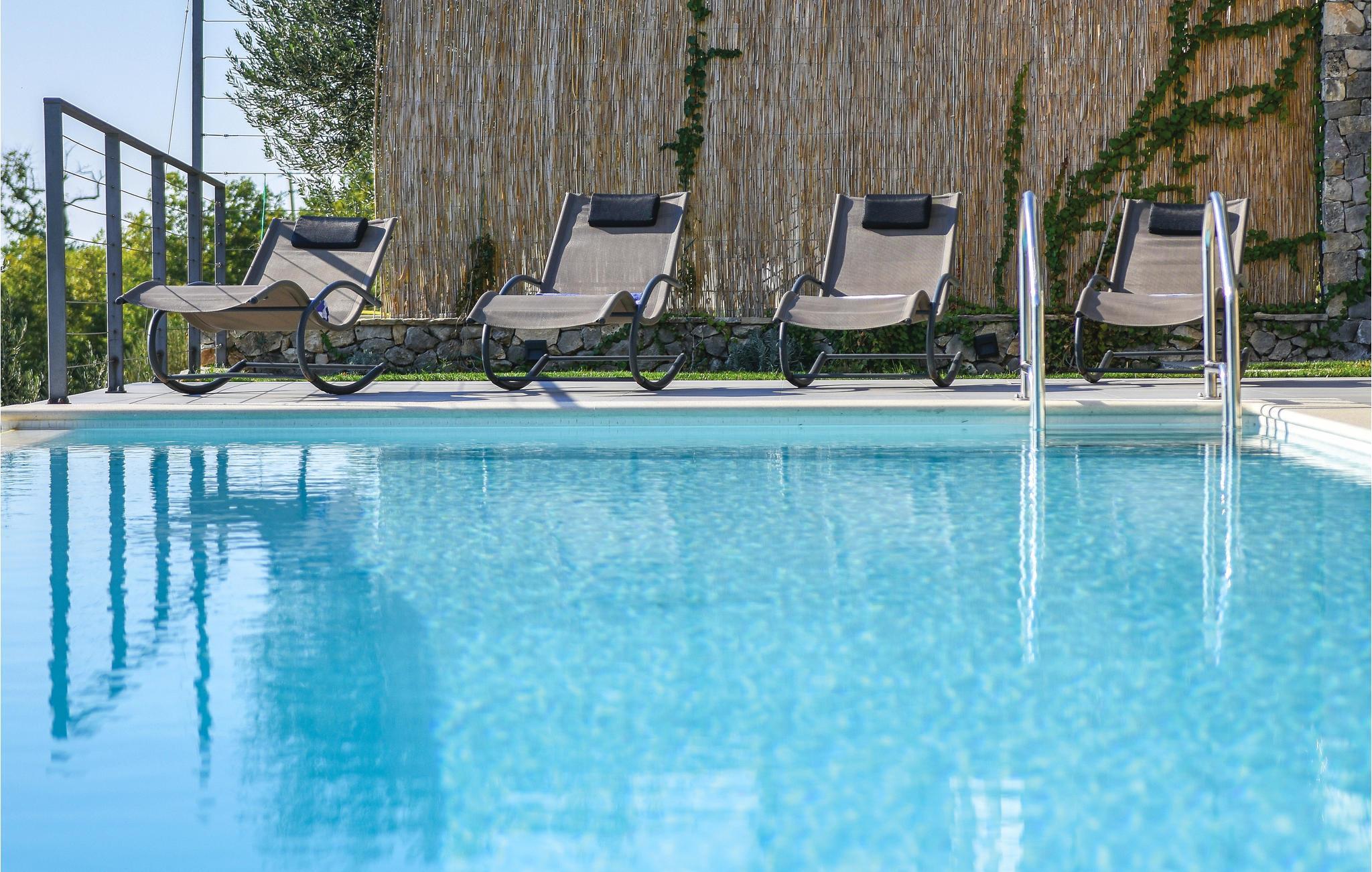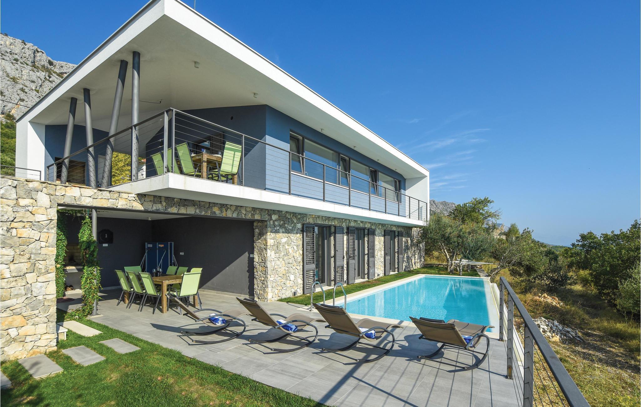Ein grandioses Ferienhaus, das mit seinem kompletten Exterieur auf phantastische Art mediterranes Lebensgefühl im 21. Jahrhundert verkörpert. Stein, Holz, Oliven, Meer, mediterrane Heilkräuter, sind nur ein Teil dieser schönen Flairs. Das Interieur ist luxuriös und ebenso komplett ausgestattet. Das Grundstück ist terrassiert, vom Parkplatz gelangen Sie direkt in den Wohnbereich. Über Außen- sowie Innentreppen gehen Sie hinab in die Ruheoase. Dort liegt der Pool sichtgeschützt und zugleich mit herrlicher Panoramaaussicht. Auch die Schlafzimmer auf dieser Etage haben direkte Ausgänge zum Pool, so können Sie auf einfache Art eine morgendliche Schwimmtour unternehmen. Das Haus ist wirklich spektakulär und der ideale Ort um dem schnelllebigen Alltag und Verkehrslärm zu entfliehen. Die frische Luft und die Natur heilen Geist und Körper und in Kombination mit diesem Luxus bekommt Ihr Urlaub eine neue Dimension. "Laden Sie Ihre Batterien auf", an diesem unvergesslichen Ort.