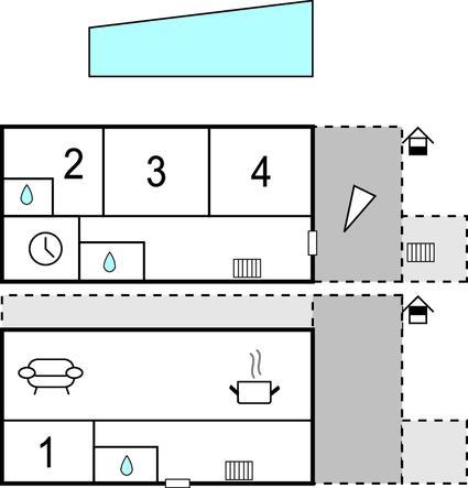 Badezimmer (nr. 3) - WC. Warmes und kaltes Wasser. Dusche
