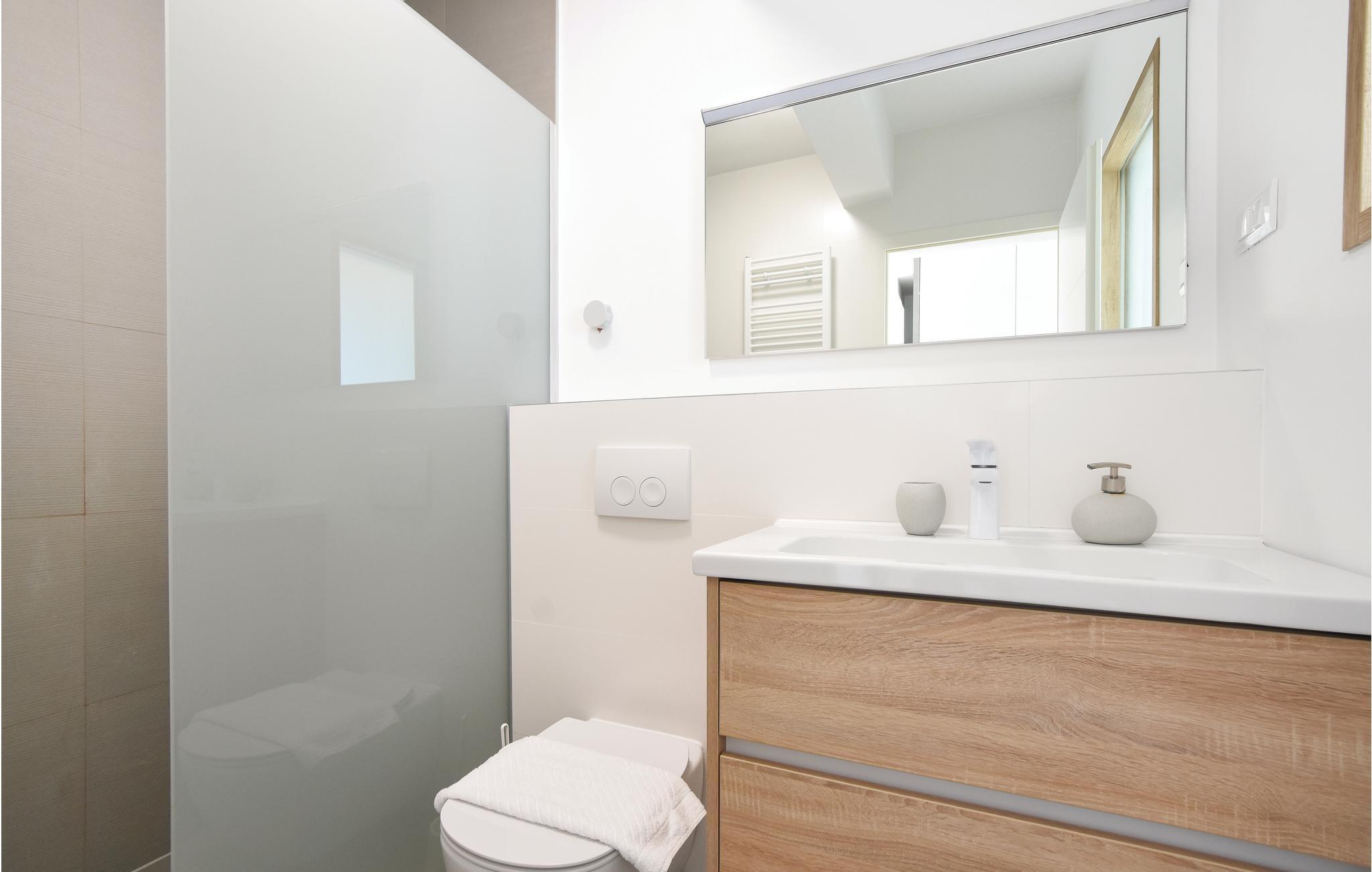 Badezimmer (nr. 2) - WC. Warmes und kaltes Wasser. Dusche