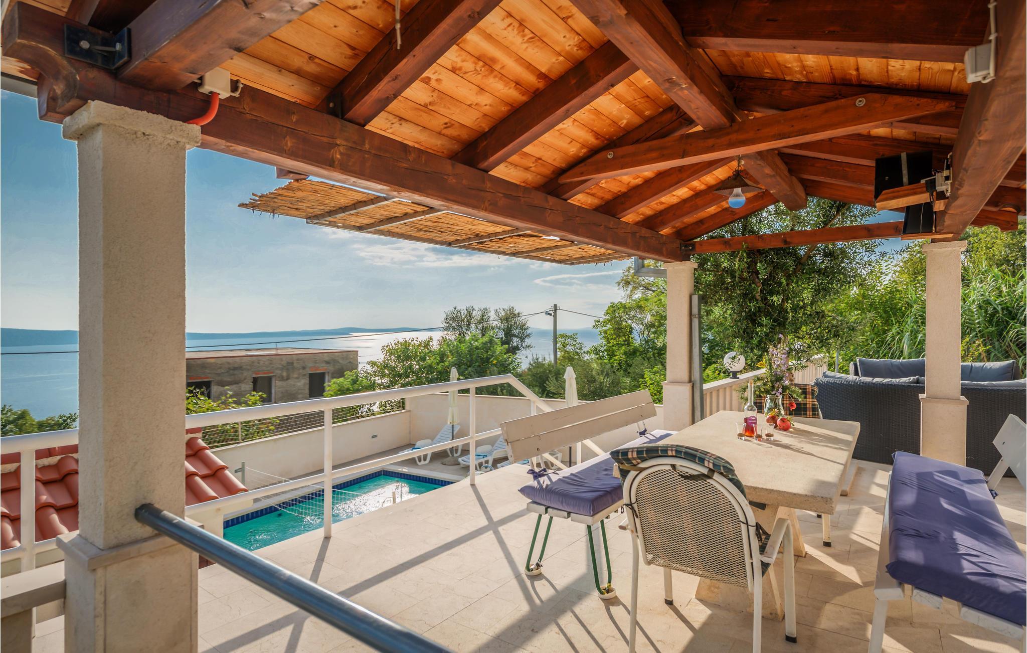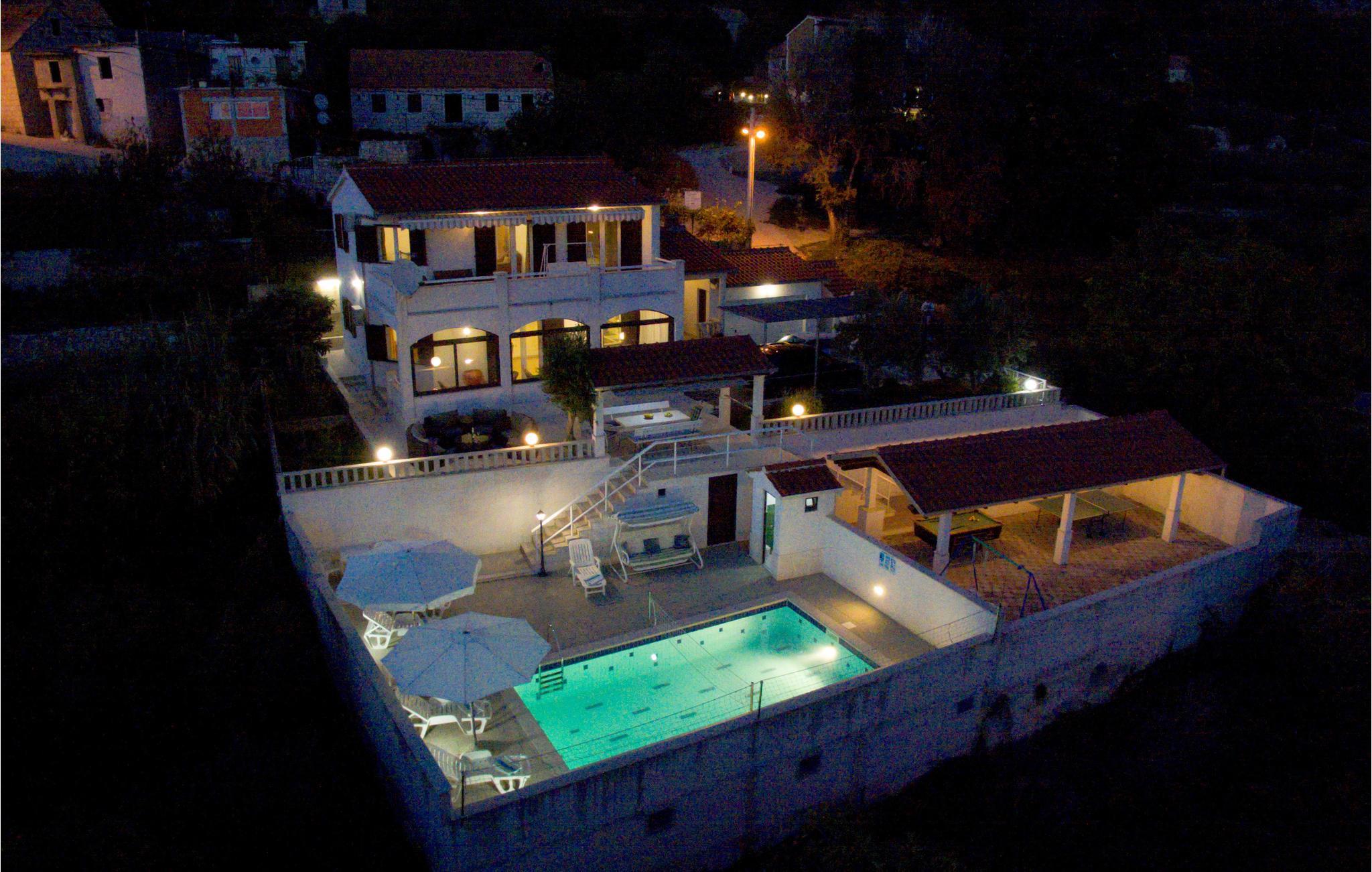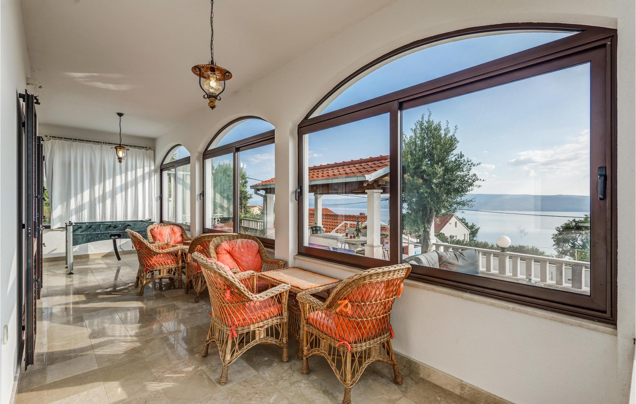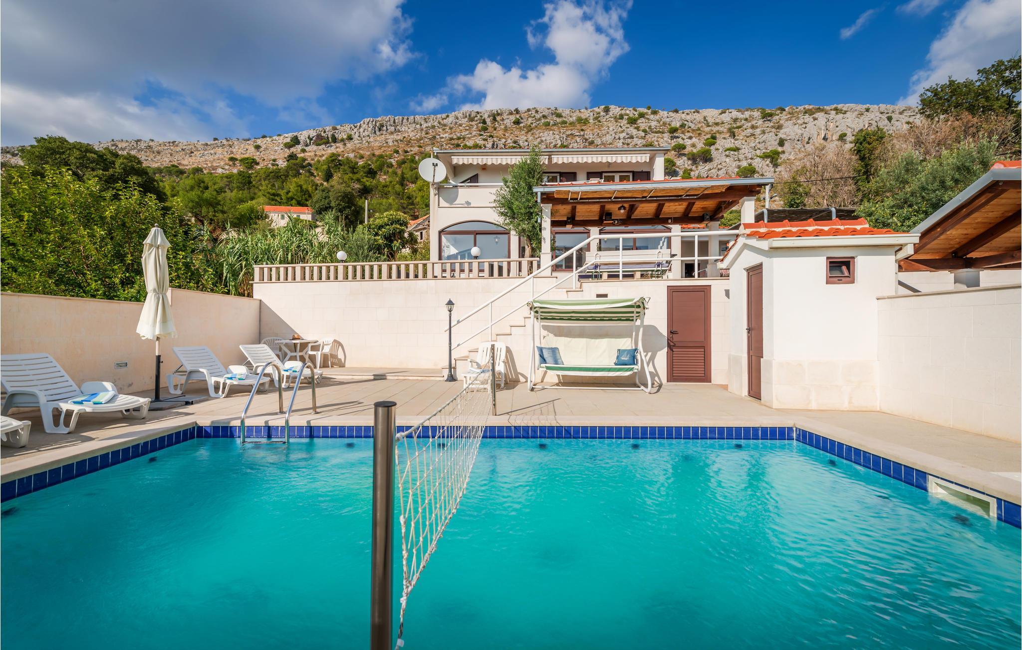 Dieses schöne und gut eingerichtete Ferienhaus auf einem eingezäunten Gründstück liegt am Fuße des Berges Mosor, an der Riviera von Omis. Das Haus ist sehr ansprechend möbliert und komfortabel eingerichtet. Nicht nur Familien mit Kinder werden sich hier wohlfühlen, denn hier wird eine Menge an Unterhaltungsmöglichkeiten geboten: Tischtennis, Billards, 2 Fahrräder und das typische dalmatinische Spiel 'Balote', eine kroatische Form des Boccia. Ihre Kondition verbessern können Sie auf dem Trimmrad. Im Swimmingpool, der abends auch beleuchtet ist, können Sie in romantischen Abendstunden ein erfrischendes Bad genießen. Von Balkon und Poolterrasse eröffnet sich ein traumhafter Blick auf die umliegende Küstenlandschaft, ein Ferienort par excellence. In der Gegend finden Sie ein vielfältiges gastronomisches Angebot. Die Lage ermöglicht Ausflüge in die Umgebung, somit brauchen Sie für die Fahrt nach Split 20 Minuten, zum Flughafen Split 40min., zum Fährhafen 25 min., Makarska ist 30 Minuten entfernt, Dubrovnik 150 Minuten.