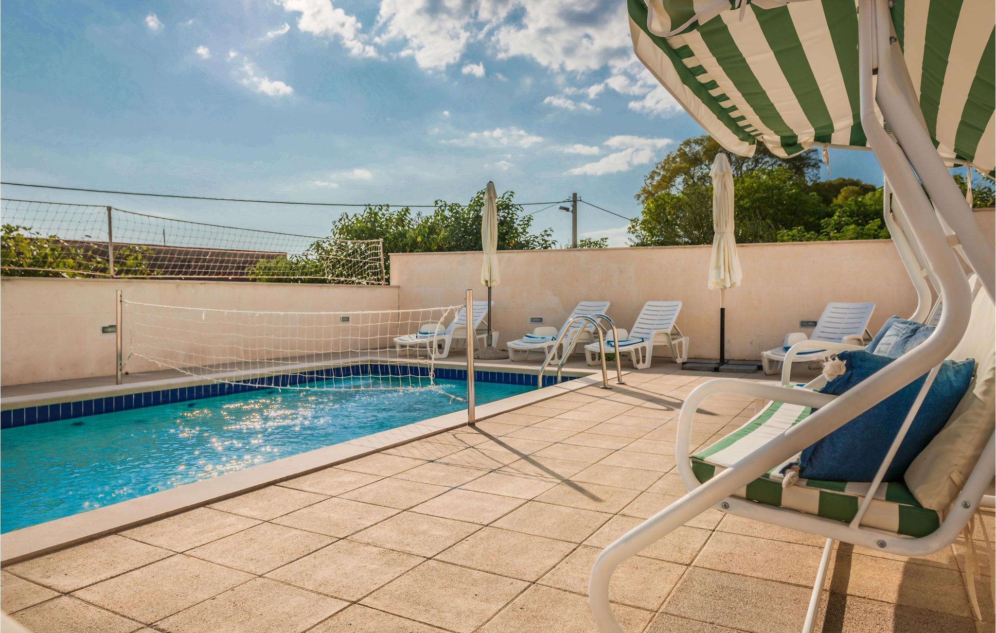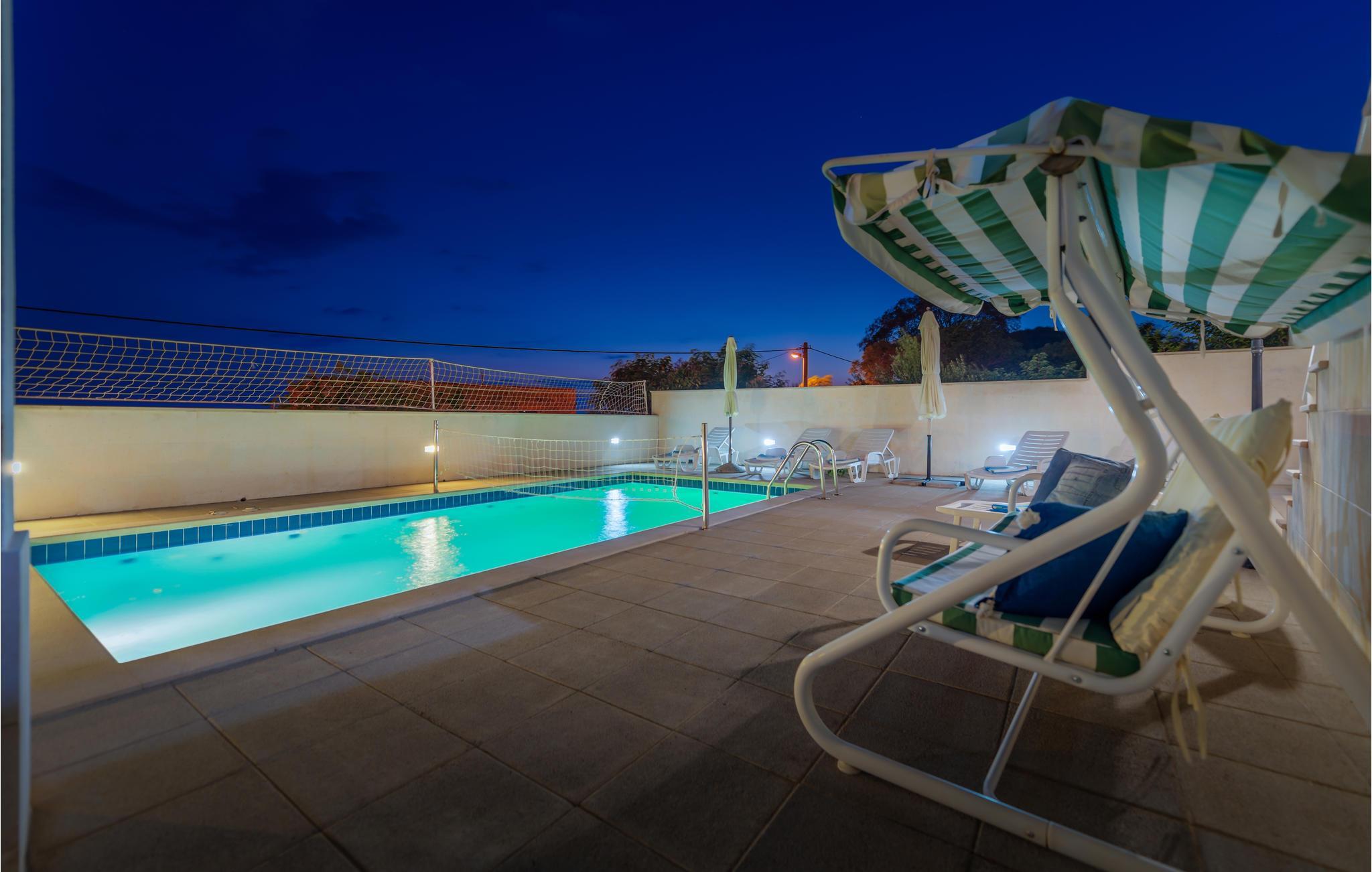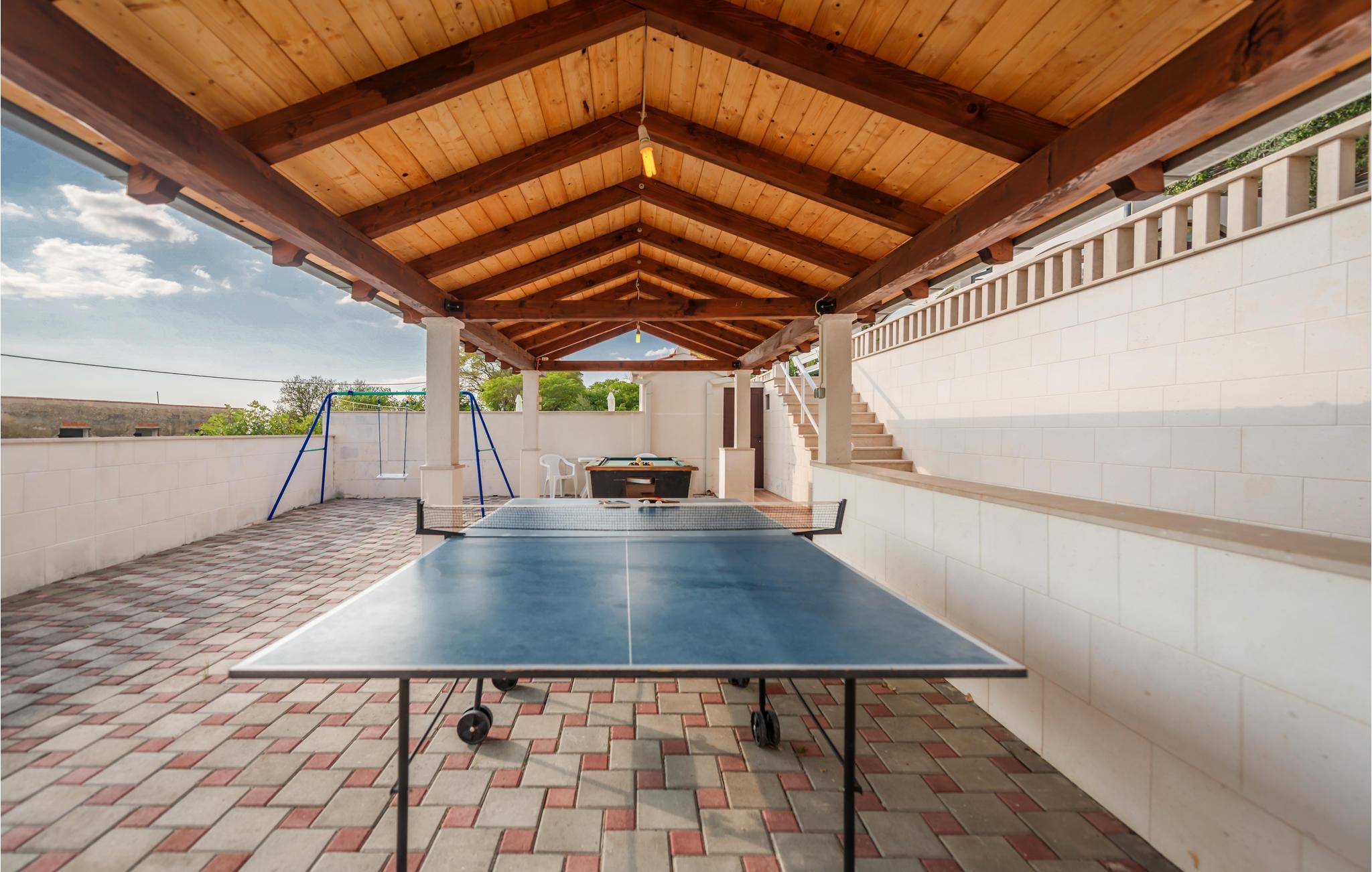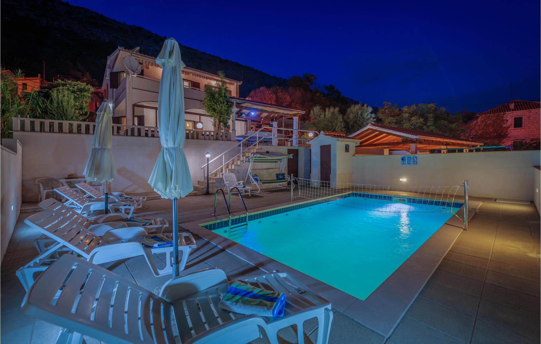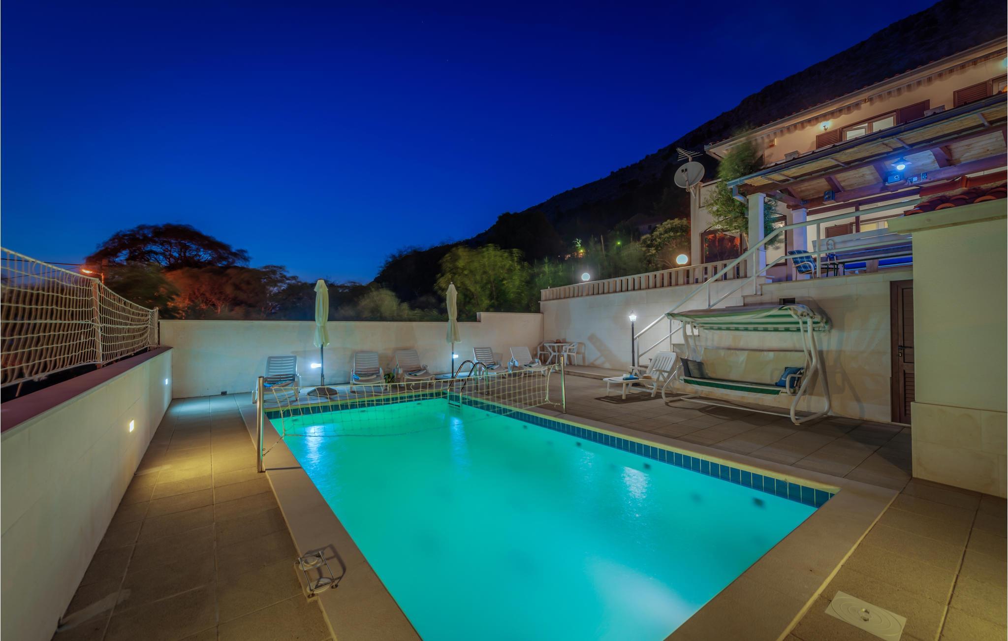 Dieses schöne und gut eingerichtete Ferienhaus auf einem eingezäunten Gründstück liegt am Fuße des Berges Mosor, an der Riviera von Omis. Das Haus ist sehr ansprechend möbliert und komfortabel eingerichtet. Nicht nur Familien mit Kinder werden sich hier wohlfühlen, denn hier wird eine Menge an Unterhaltungsmöglichkeiten geboten: Tischtennis, Billards, 2 Fahrräder und das typische dalmatinische Spiel 'Balote', eine kroatische Form des Boccia. Ihre Kondition verbessern können Sie auf dem Trimmrad. Im Swimmingpool, der abends auch beleuchtet ist, können Sie in romantischen Abendstunden ein erfrischendes Bad genießen. Von Balkon und Poolterrasse eröffnet sich ein traumhafter Blick auf die umliegende Küstenlandschaft, ein Ferienort par excellence. In der Gegend finden Sie ein vielfältiges gastronomisches Angebot. Die Lage ermöglicht Ausflüge in die Umgebung, somit brauchen Sie für die Fahrt nach Split 20 Minuten, zum Flughafen Split 40min., zum Fährhafen 25 min., Makarska ist 30 Minuten entfernt, Dubrovnik 150 Minuten.