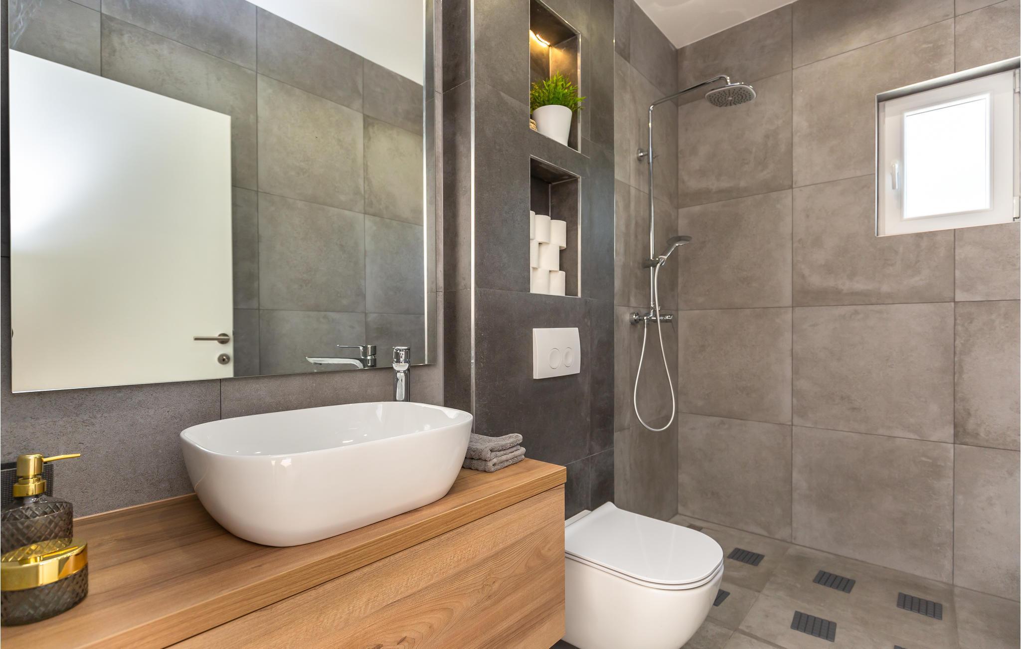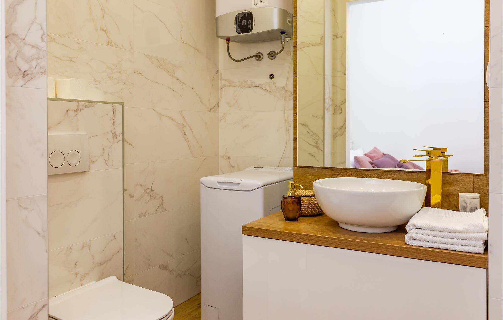 Badezimmer 5m2 (nr. 2) - WC. Warmes und kaltes Wasser. Dusche