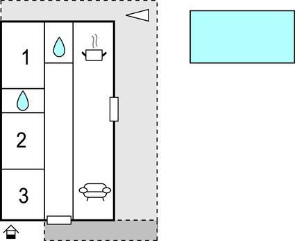 Badezimmer 5m2 (nr. 1) - WC. Warmes und kaltes Wasser. Dusche