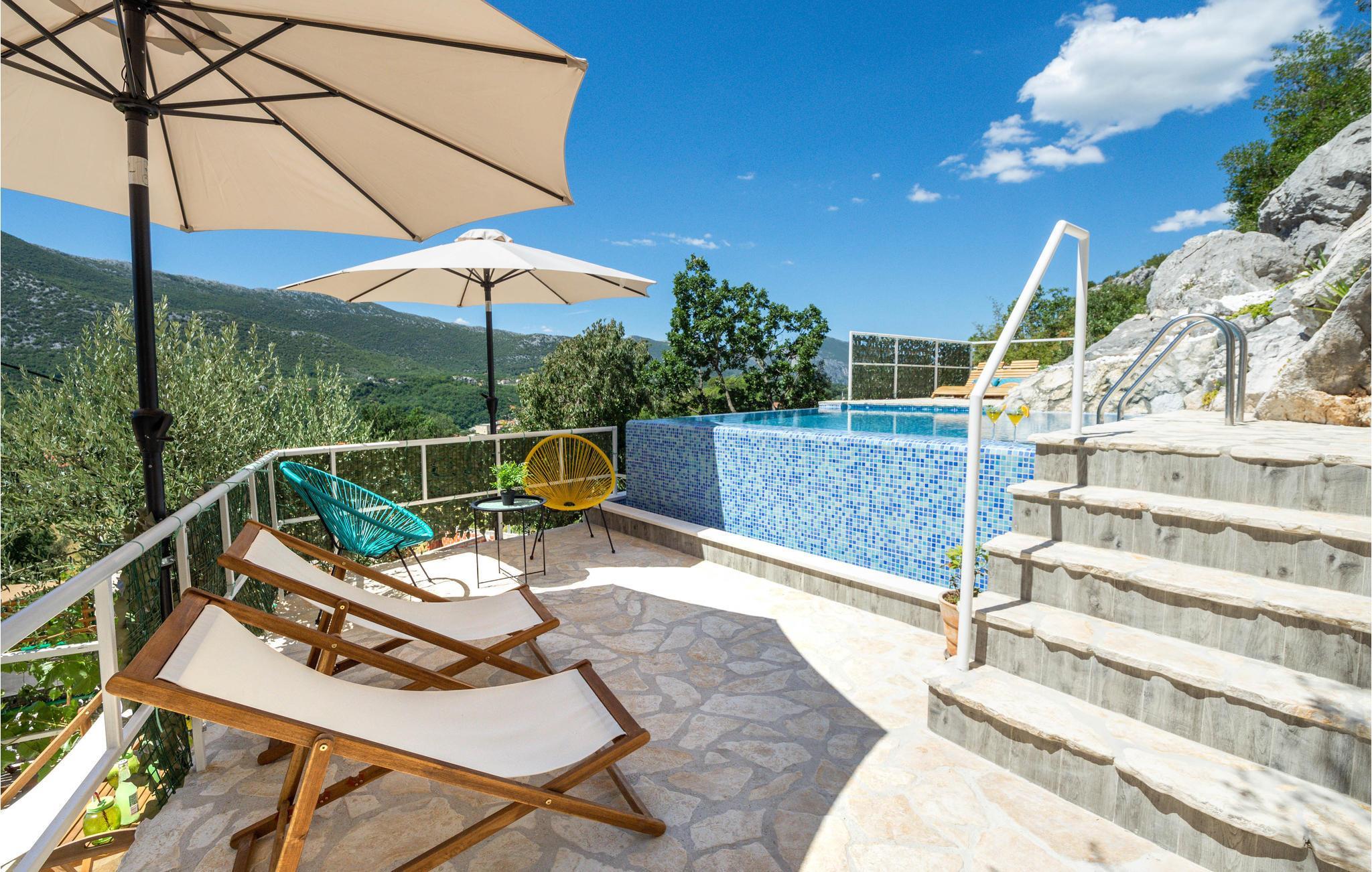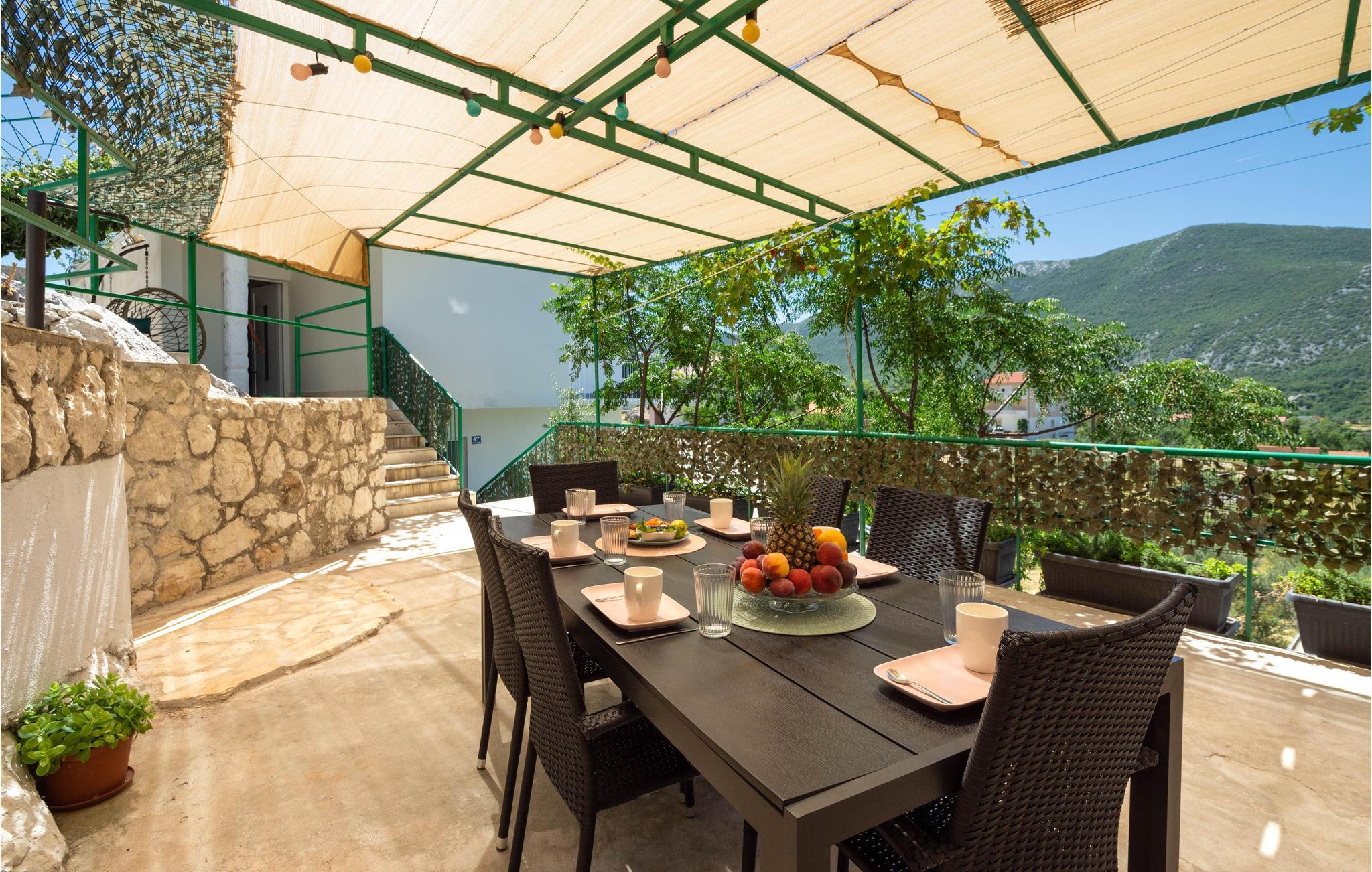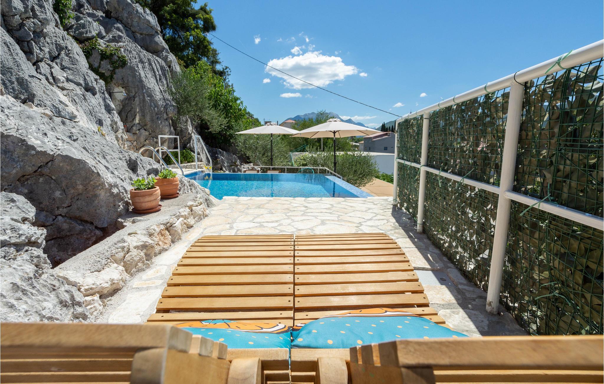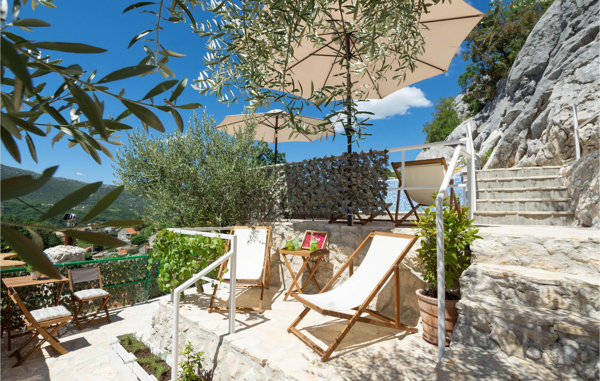 Dieses schön eingerichtete Ferienhaus mit Badebassin, umgeben von der Natur, befindet sich im Dreieck zwischen den Rivieren von Makarska und Omis sowie dem Biokovo Gebirge. In der Nähe liegt auch die kulturelle Stadt Split. Der kleine Ort Kostanje, mit erhaltener Natur und mediterranem Klima, liegt weit weg von Verkehrsstaus und hat trotzdem eine gute Verbindung zu den attraktivsten Stränden. Das Herz von Kostanje ist der Fluss Cetina, gespeist von einer unerschöpflichen Wasserquelle und zu turbulenten Rafting-Abenteuern einladend. Die Etagen sind mit Außentreppen verbunden. Genießen Sie die Düfte, das ruhige Meer, die Kraft und Energie des Flusses beim Rafting, entspannen Sie beim Radfahren oder Wandern, Sie entdecken hier Heilpflanzen und lauschen der Musik Dalmatiens.