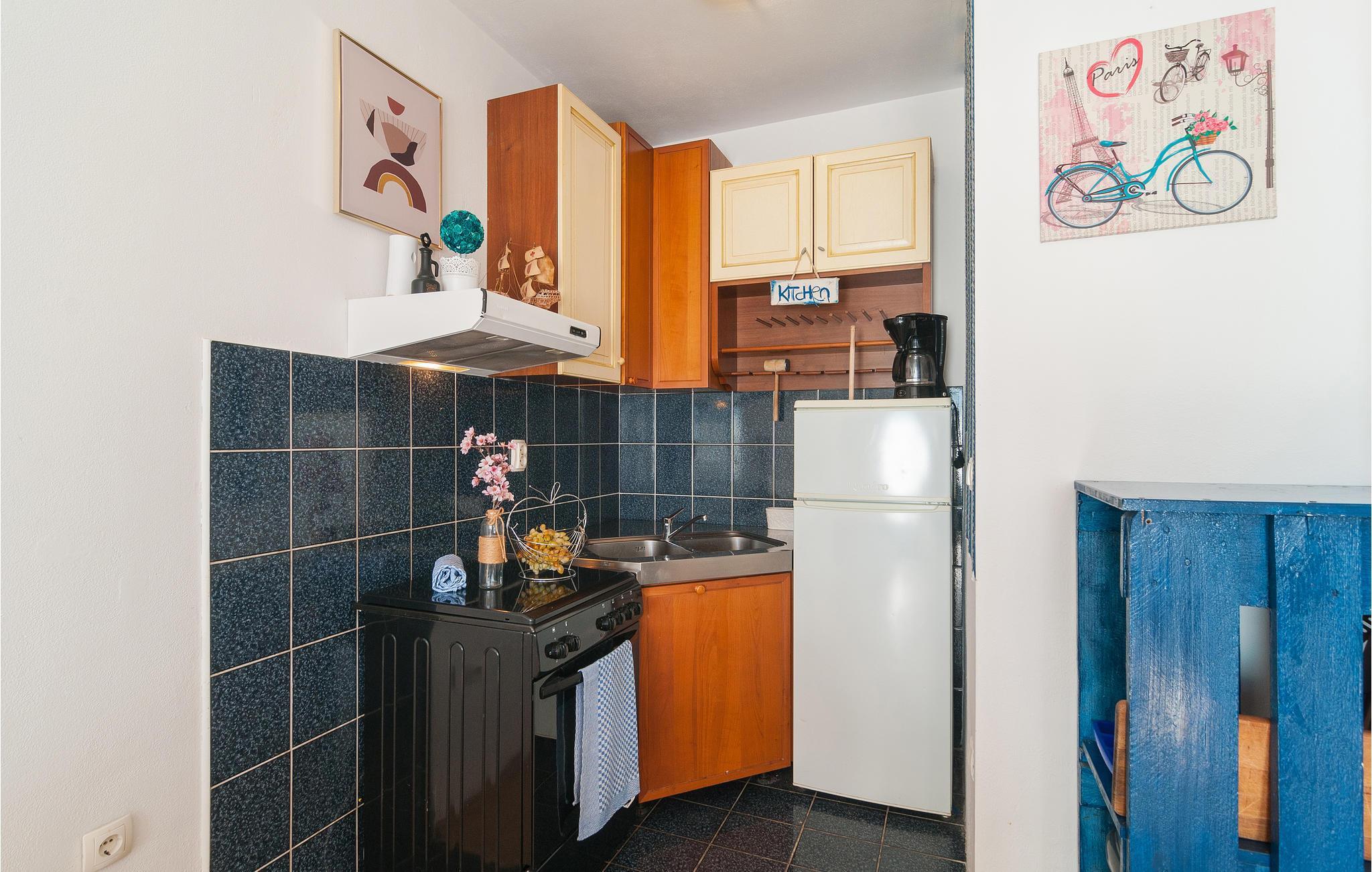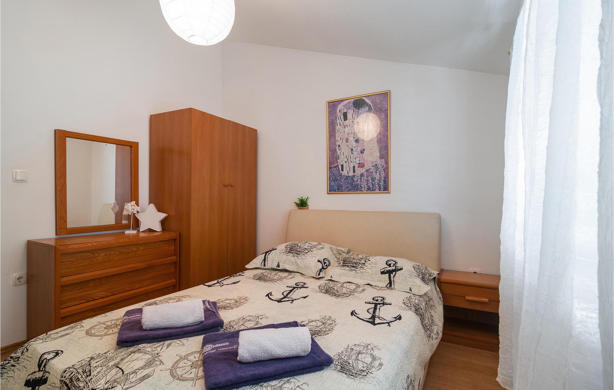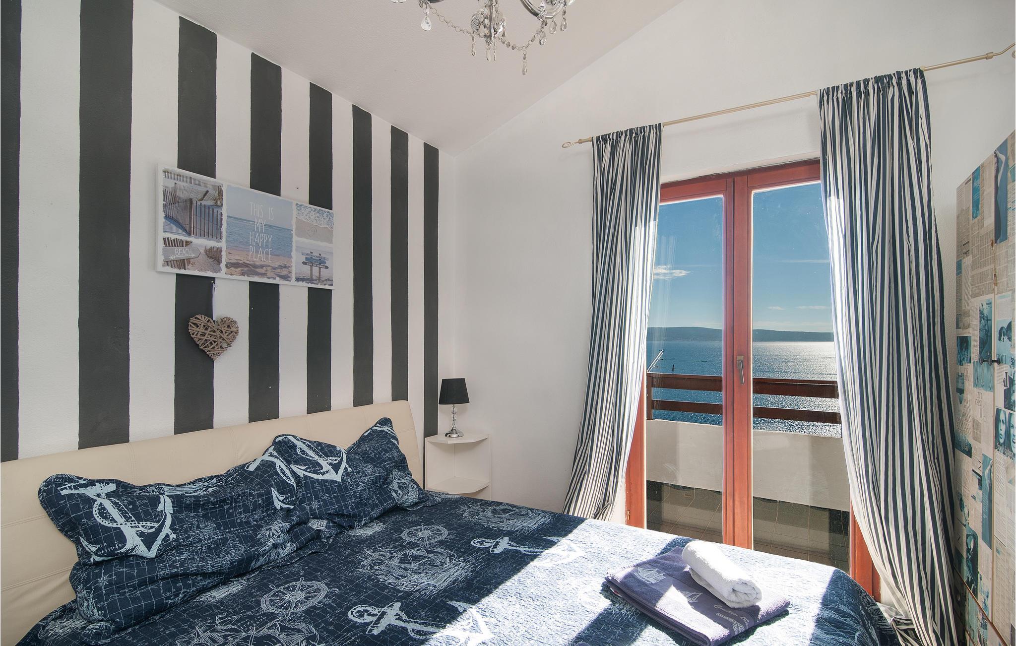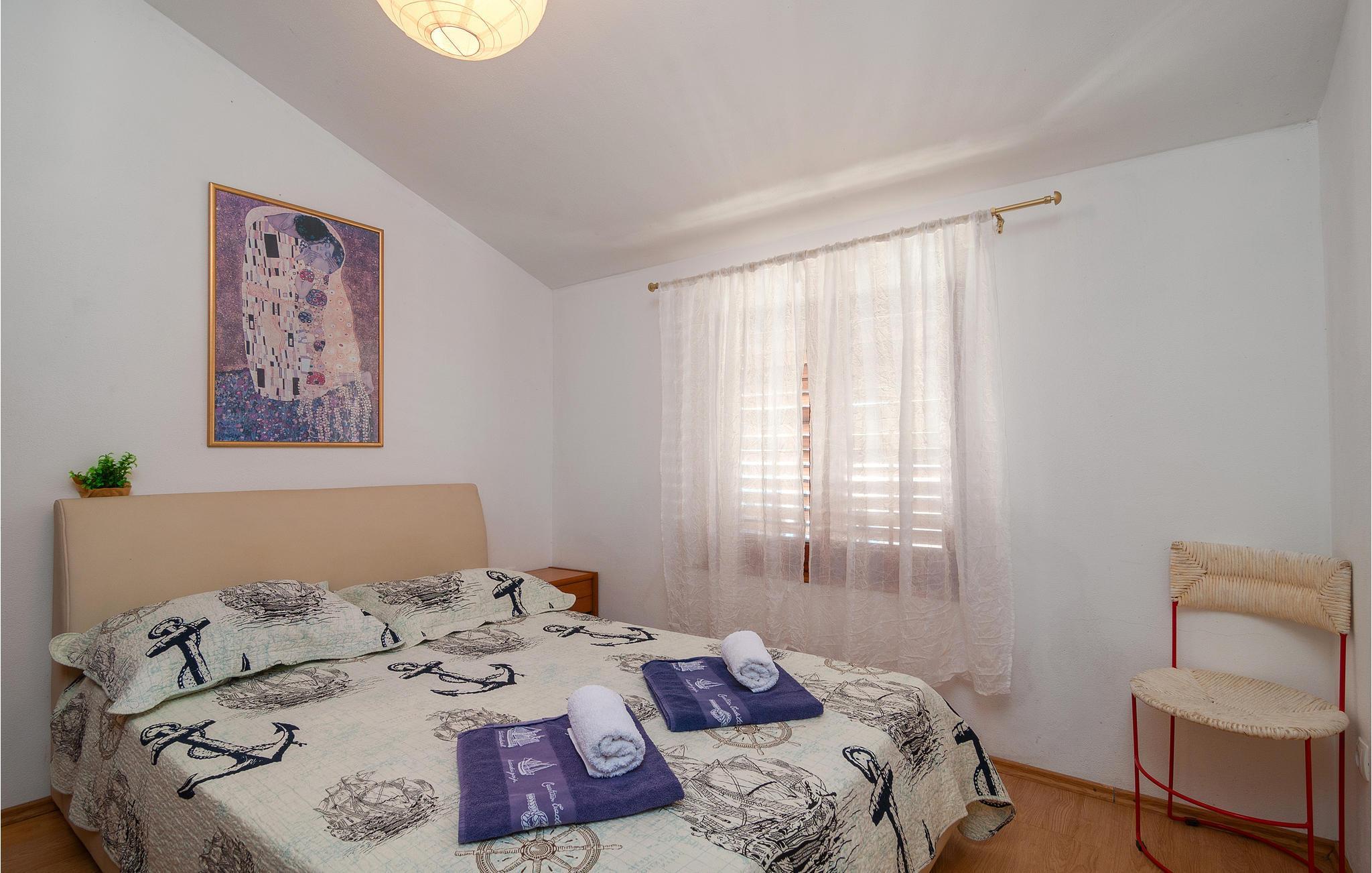 Diese geräumige Ferienwohnung liegt in einer ruhigen Umgebung auf einer Anhöhe mit Panoramaausblick. Sie ist einfach und gemütlich für Ihren Urlaub eingerichtet. Die Ferienwohnung liegt im Dachgeschoss und hat einen getrennten Eingang. Ein Fußweg und Treppen führen Sie zu den schönen kleinen Kiesstränden. Der Fußgängertunnel leitet Sie unter der Küstenstraße durch, die den Ort vom Strand trennt. Zahlreiche Freizeitmöglichkeiten finden Sie in den wenige Kilometer entfernten Orten Dugi Rat und Omis. An der bekannten Omis-Riviera befinden sich wunderschöne Strände, die zu Erholung und aktivem Urlaub mit zahlreichen Wassersportmöglichkeiten einladen.
