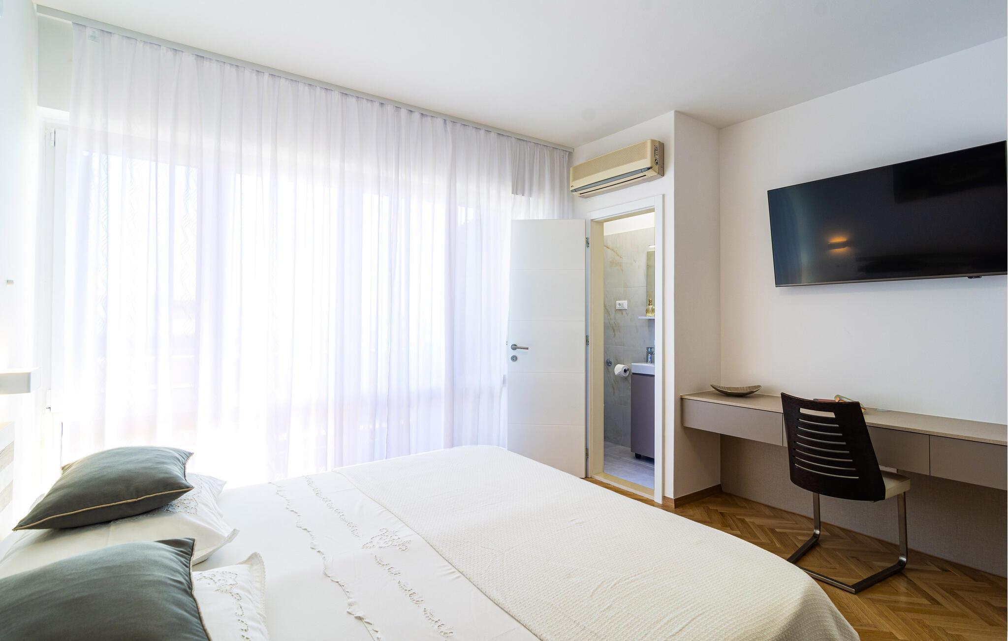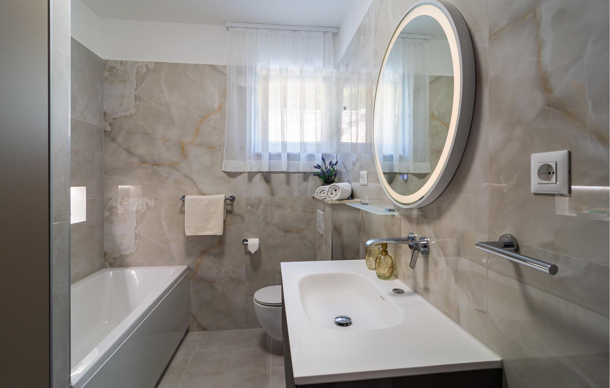 Auf der Promenade im hübschen Küstenort Krilo Jesenice befindet sich diese große und einfach eingerichtete Ferienwohnung. Sie liegt im 1. Stock und ist die ideale Wahl für eine Familie, die ihren Urlaub am Meer verbringen möchte. Der Garten steht Ihnen alleine zur Verfügung. Hier genießen Sie einen schönen Blick auf den kleinen Hafen mit seinen verschiedenen Booten und Segelschiffen. Der, nur wenige Fußminuten entfernte, Kiesstrand lädt zum Badespaß ein. Für einen Tagesausflug gibt es tägliche Bootsfahrten zu den Inseln vor der Küste. Bitte beachten Sie, dass es in der Nähe eine befahrene Straße gibt.