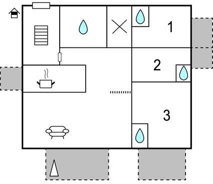 Badezimmer (nr. 3) - WC. Warmes und kaltes Wasser. Dusche