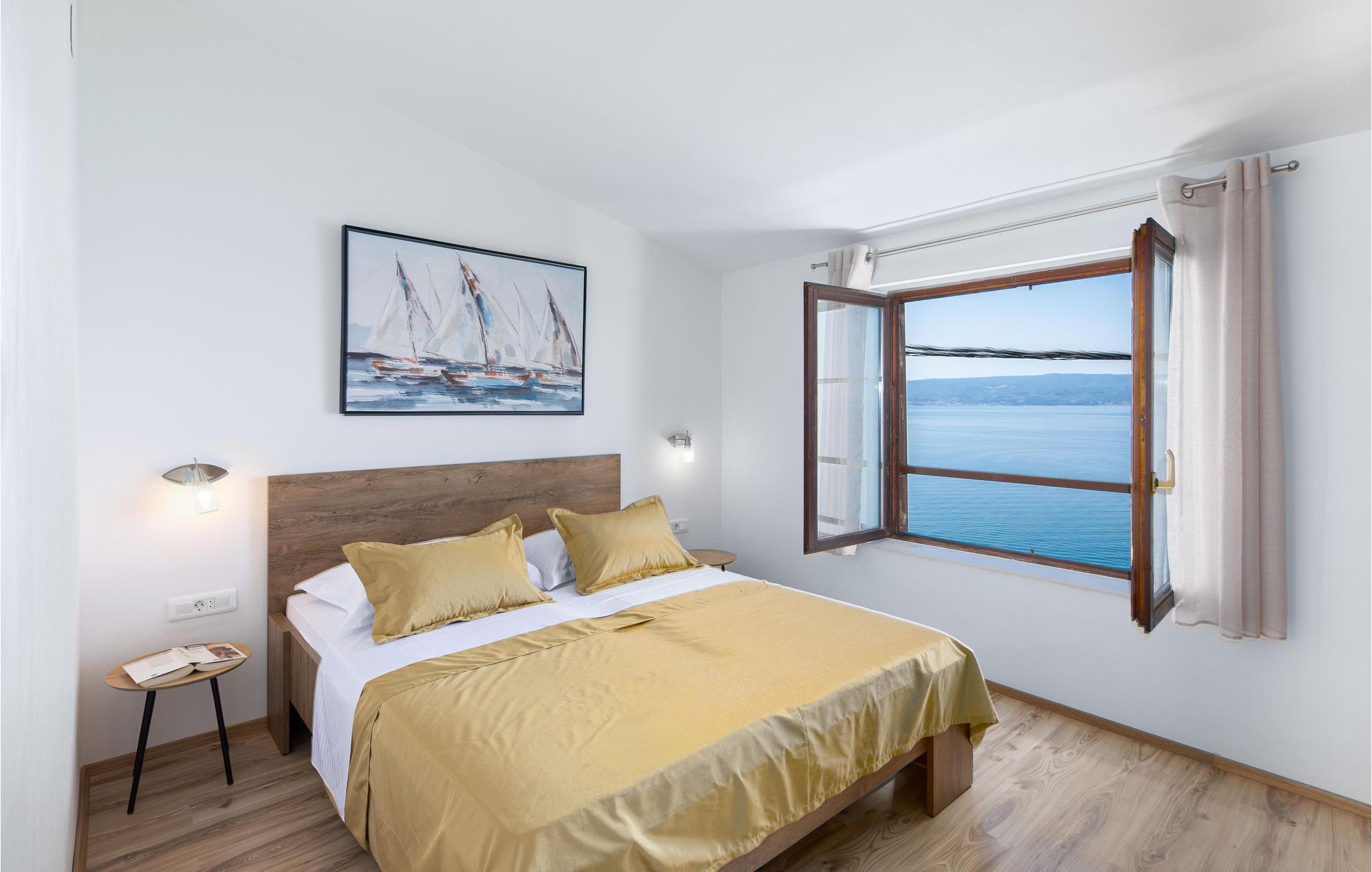 Dieses praktisch eingerichtete Ferienhaus auf einer kleinen Anhöhe verfügt über eine bezaubernde Aussicht auf das Meer und die Inseln. Die zwei Etagen des Hauses haben Innentreppen. Im Erdgeschoss liegen Küche, Wohnraum, Badezimmer. Im Oberschoss sind die Schlafzimmer und drei Badezimmer untergebracht. Das Haus ist von vielen Terrassen umgeben. Der Kiesstrand ist nicht weit entfernt und 2 km weiter liegt auch ein Sandstrand. Dieses Domizil ist der ideale Ort für einen schönen Urlaub.