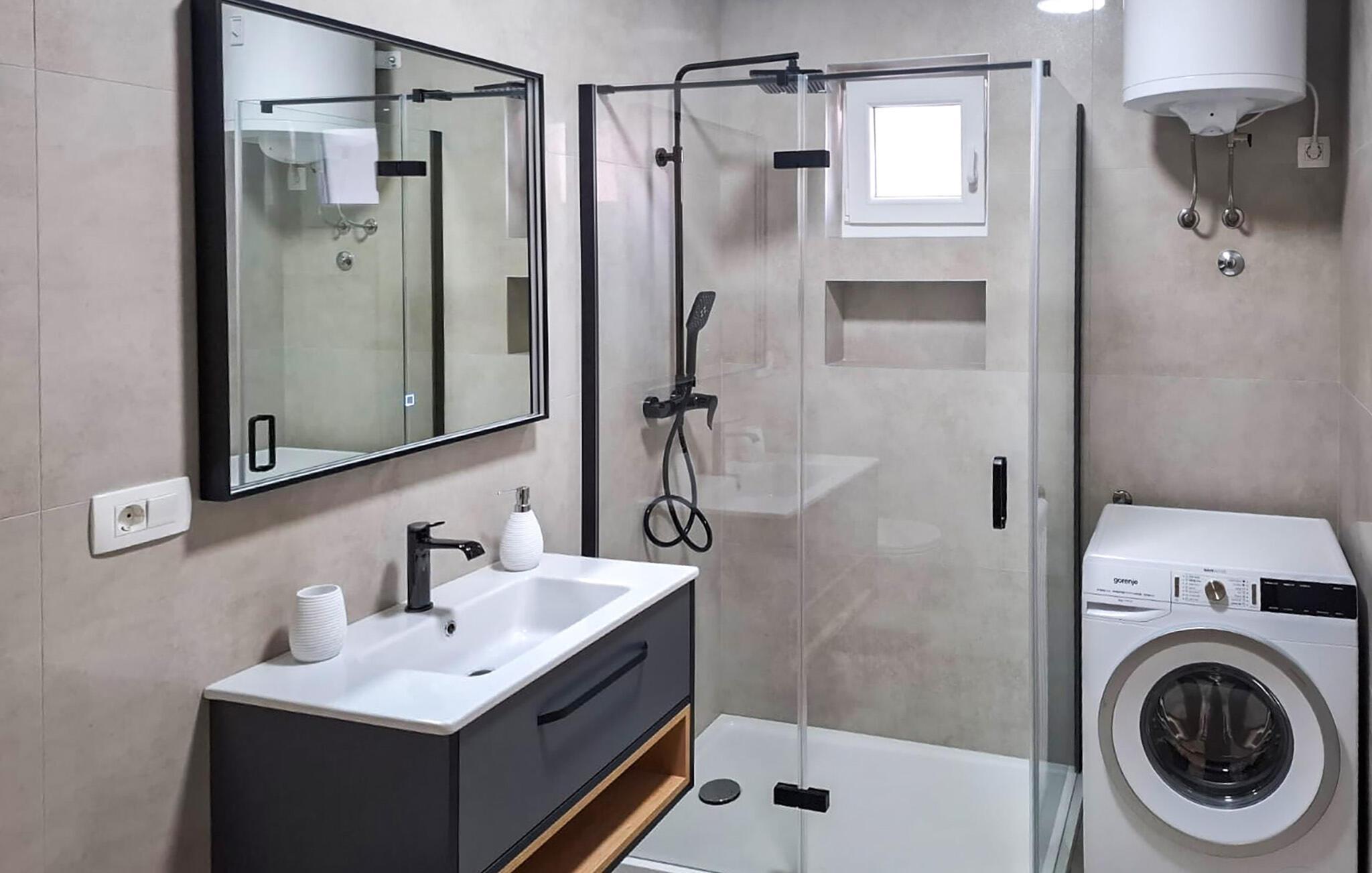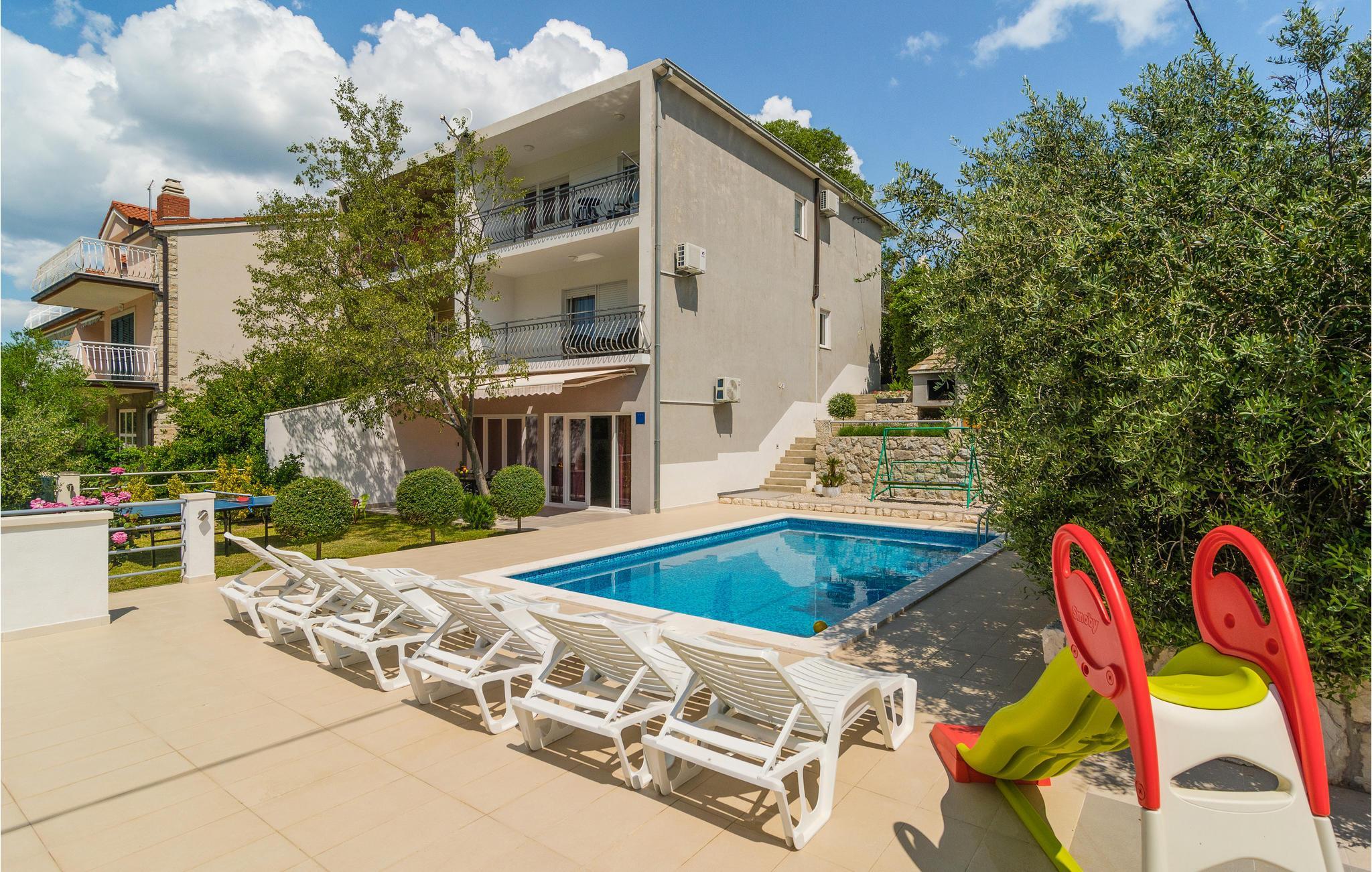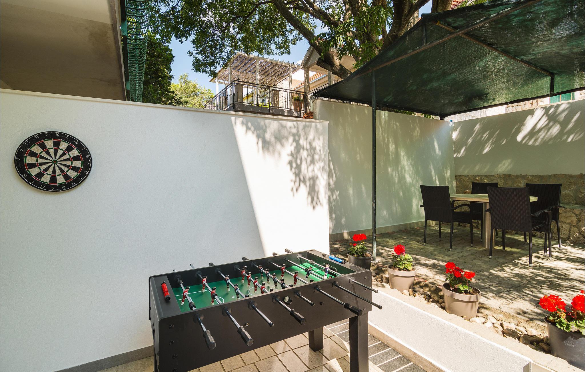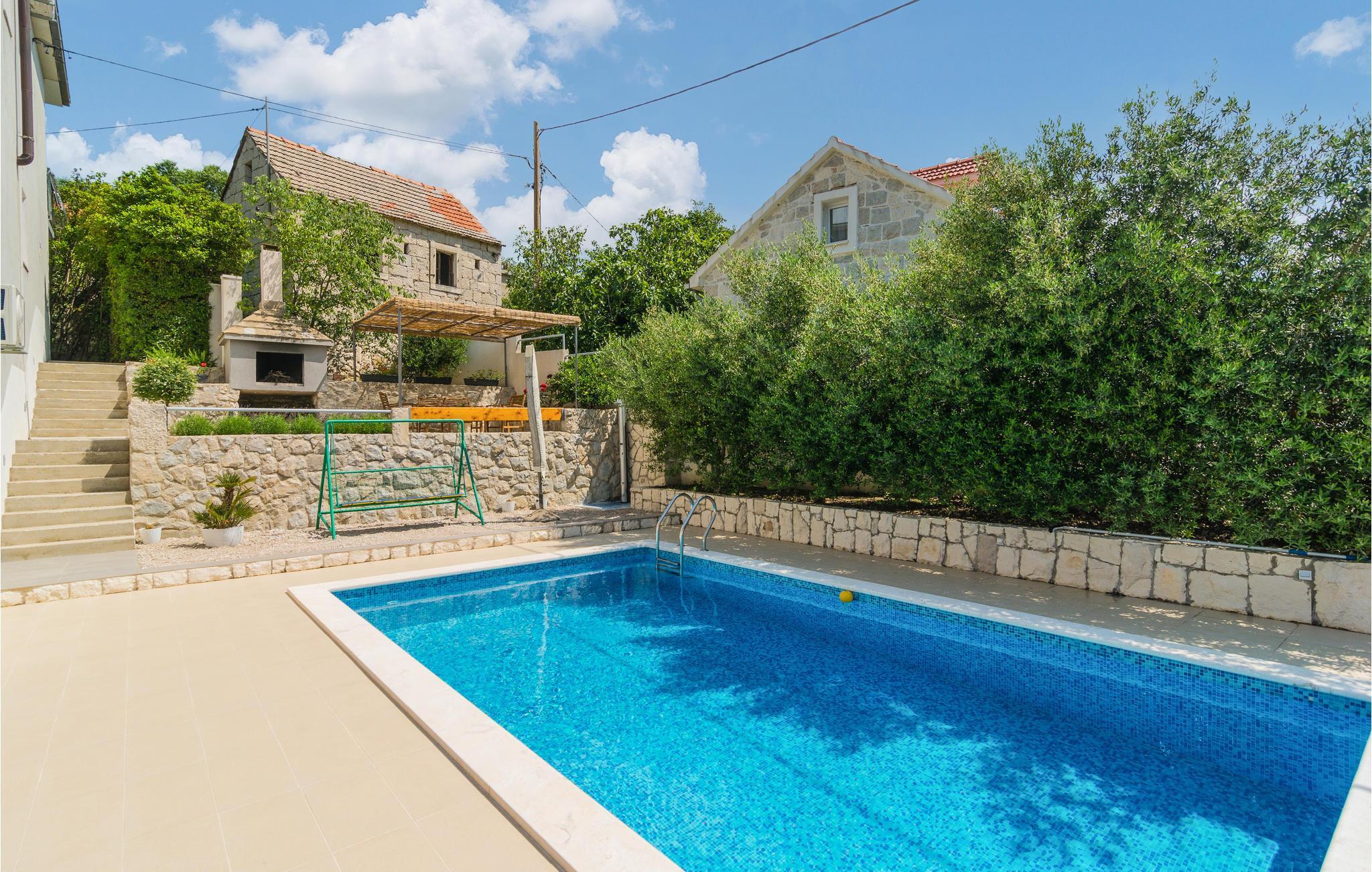 Im Hinterland von Omis, neben dem Fluss Cetina und im kleinen Ort Kucice befindet sich diese freundlich eingerichtete Haushälfte. Vom Haupteingang auf der Nordseite geht es in den 1. Stock, in dem eine Küche und ein Wohnzimmer mit Terrasse sind. Zum 2. Stock gelangen Sie über Innentreppen, hier liegen die Schlafzimmer sowie eine Terrasse mit Blick auf die Landschaft. Erdgeschoss und den Poolbereich erreichbar über Außentreppen. Ebenfalls gibt es neben dem Parkplatz eine Küche mit Wohnbereich mit Glaswänden, die Sie öffnen können. So kann die Küche auch als Sommerküche dienen. Besichtigen Sie die Stadt Omis, die reich an Unterhaltungs- und Sportmöglichkeiten wie Radfahren, Rafting oder Zipline, ist.