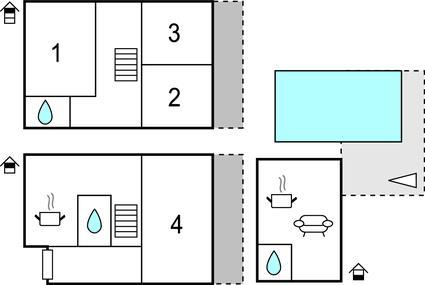 Badezimmer (nr. 1) - WC. Warmes und kaltes Wasser. Dusche
