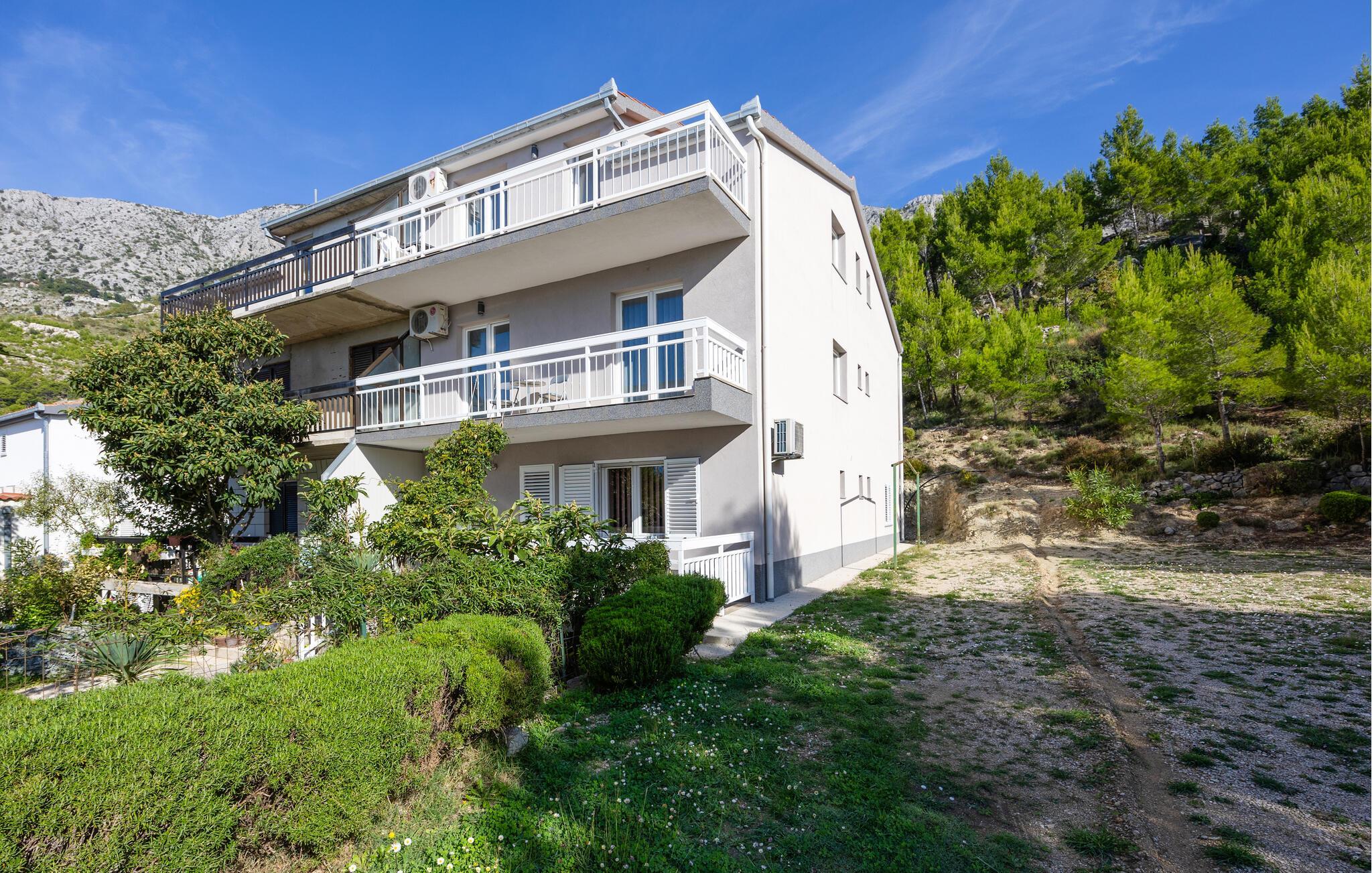 In einem hoch gelegenen und von Pinienbäumen umgebenen Haus finden Sie diese angenehm eingerichtete Ferienwohnung zum Wohlfühlen. Durch die Lage bietet sie viel Ruhe für einen entspannten Urlaub. Das Meer und ein langer, schöner Kiesstrand liegen nur wenige Autominuten von den Wohnungen entfernt, so dass Sie jeden Tag am Meer verbringen können. Die niedrigste Deckenhöhe in den Dachgeschosswohnungen beträgt ca. 100 cm. Besuchen Sie aber auch die anderen schönen kleinen Städte in der Umgebung und erkunden dabei die wunderbare Küste und deren Strände. Empfehlenswert ist ein Besuch der Städte Omiš und Makarska mit vielen Sommerveranstaltungen.