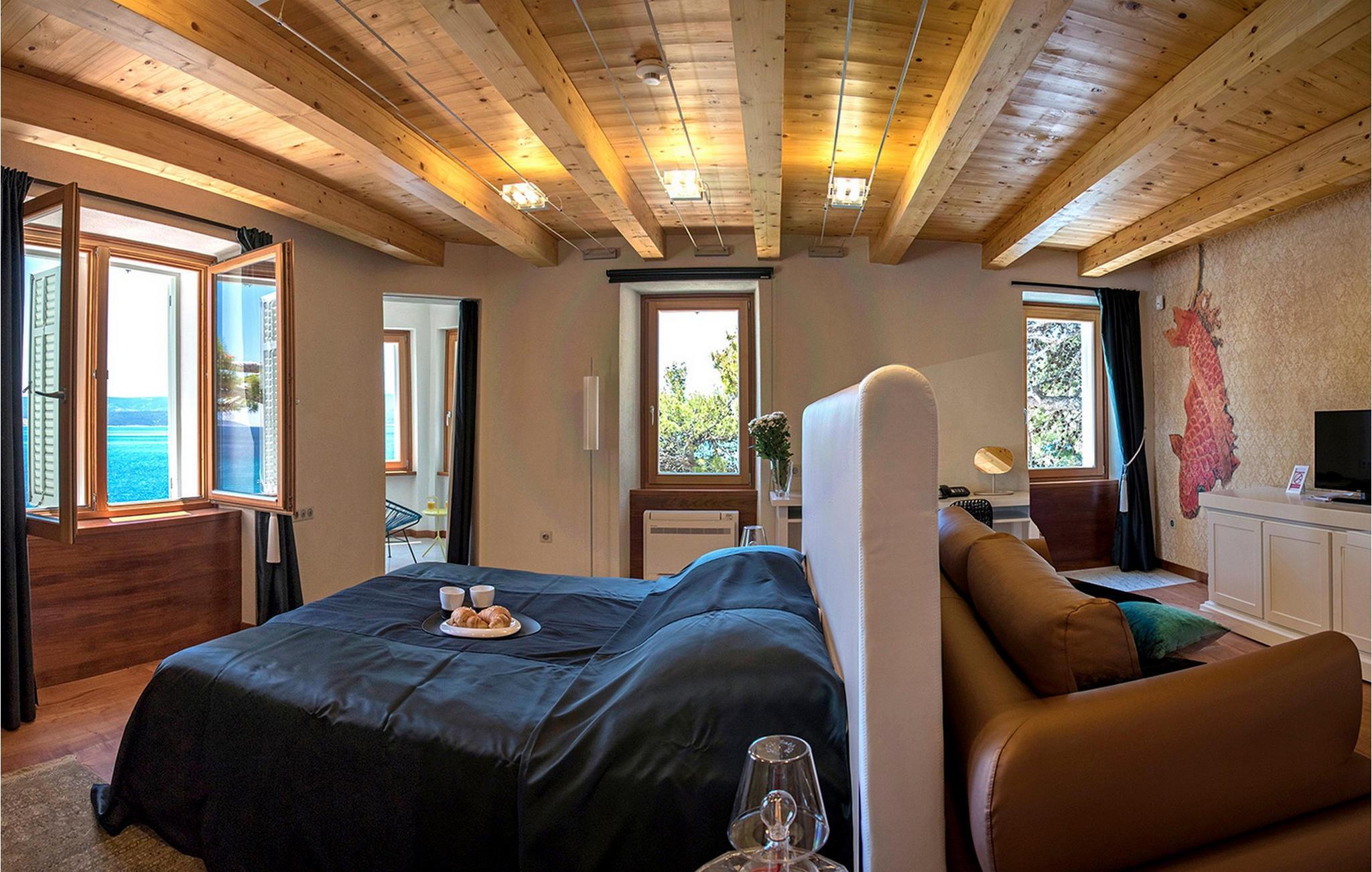 Die wunderschöne Luxusvilla Atrium ist ein sorgsam restauriertes, märchenhaftes Refugium in privilegierter Lage am Meeresufer. Ihr stilvolles und hochwertiges Interieur begrüßt Sie mit einer warmen und behaglichen Atmosphäre, die Sie beim geselligen Kochen und Speisen sowie bei gemütlichen Abenden am Kamin auf sich wirken lassen können. Gönnen Sie sich wohlige Momente in der Sauna oder im Whirlpool, trainieren Sie an den Fitnessgeräten und schalten Sie bei guten Gesprächen auf bequemen Designermöbeln vom Alltag ab.