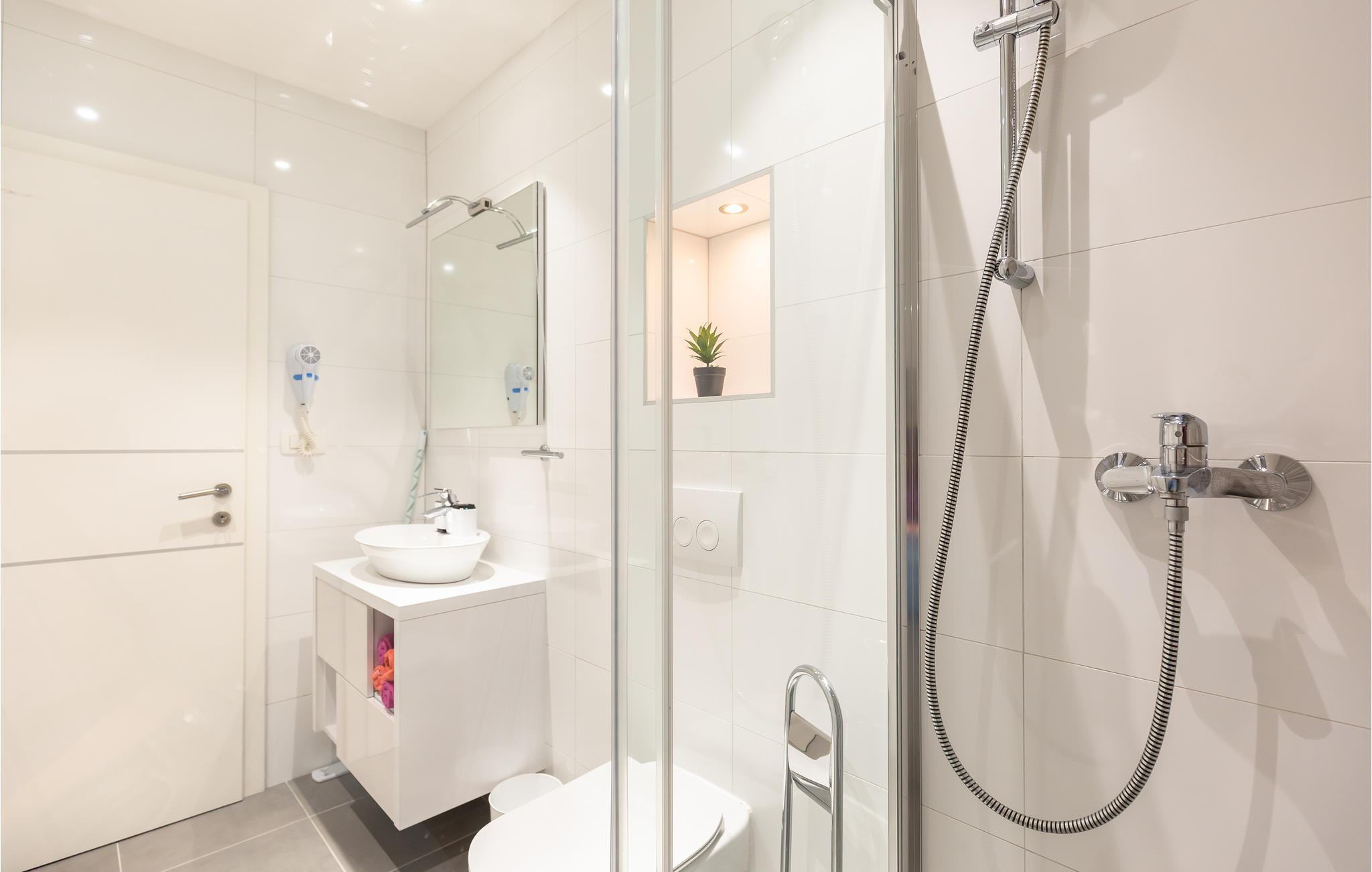 Badezimmer (nr. 1) - WC. Warmes und kaltes Wasser. Dusche