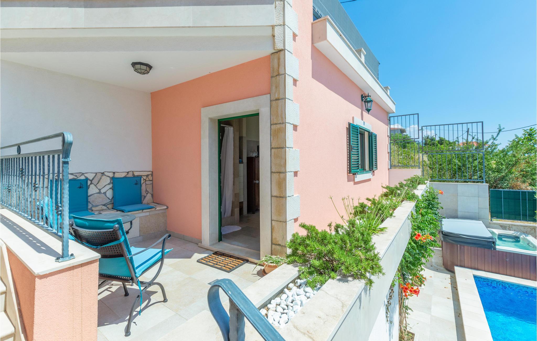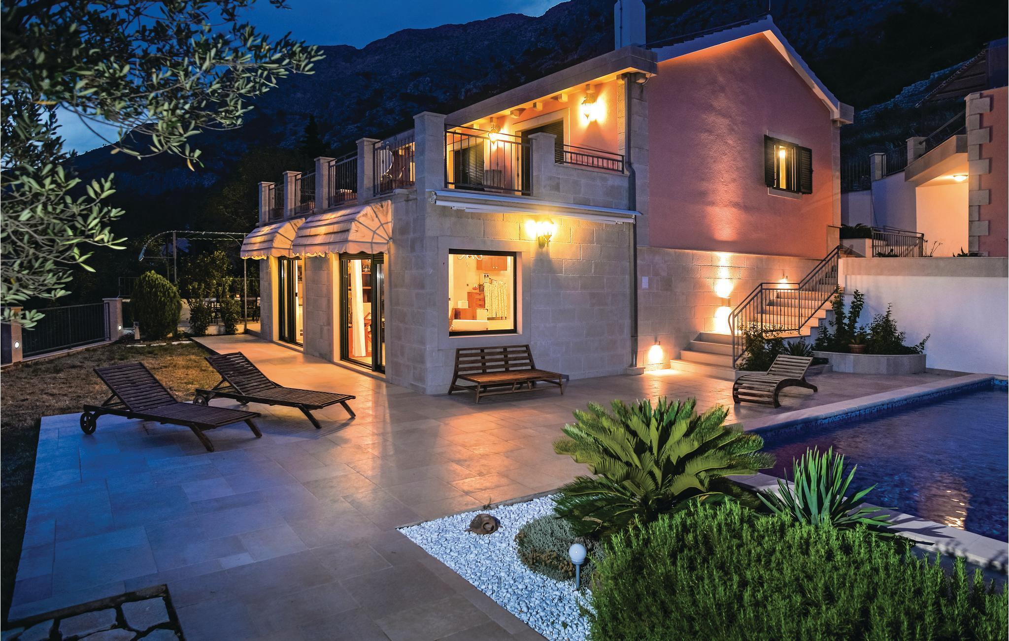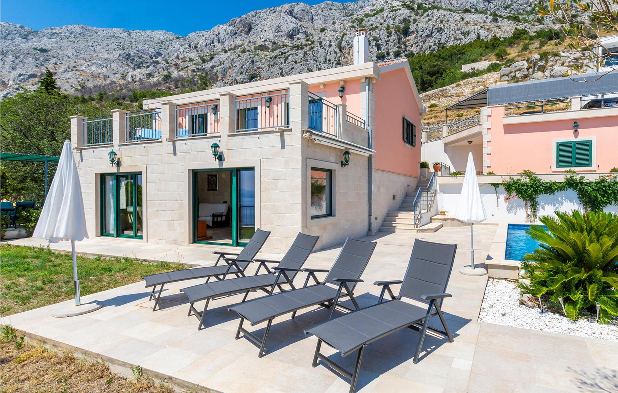 Attraktives Ferienhaus mit Pool im kleinen Ort Mimice, an der Riviera von Omiš. Das komfortable Domizil glänzt mit hochwertigem Interieur, es ist wie geschaffen für einen Traumurlaub. Durch die Hügellage ist der Haupteingang im ersten Stock, wo drei Schlafzimmer und zwei Badezimmer sind. Innentreppen führen hinunter zum Erdgeschoss mit großzügigem Wohn- und Essbereich sowie zur gut ausgestatteten Küche und einem Badezimmer. Auf dem umzäunten und gepflegten Grundstück bietet sich von der Poolterrasse eine prächtige Aussicht, die alle Erwartungen übertrifft. Etwa 10 Minuten zu Fuß entfernt liegt ein Kiesstrand, zu dem ein steiler Weg führt. Hinter dem Haus verläuft eine Straße aus Napoleons Zeiten, die nun ein ca. 10 km langer Radweg ist. Besuchen Sie die Stadt Omiš mit Sandstränden sowie die Altstadt.