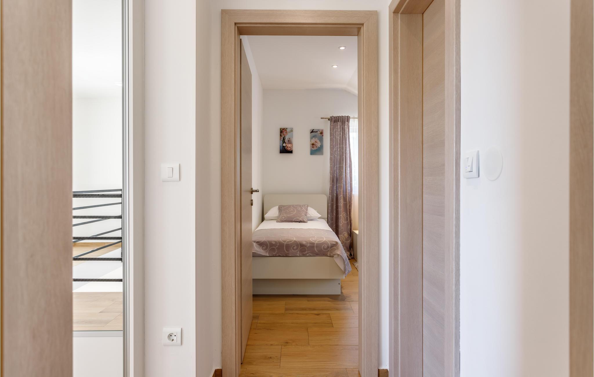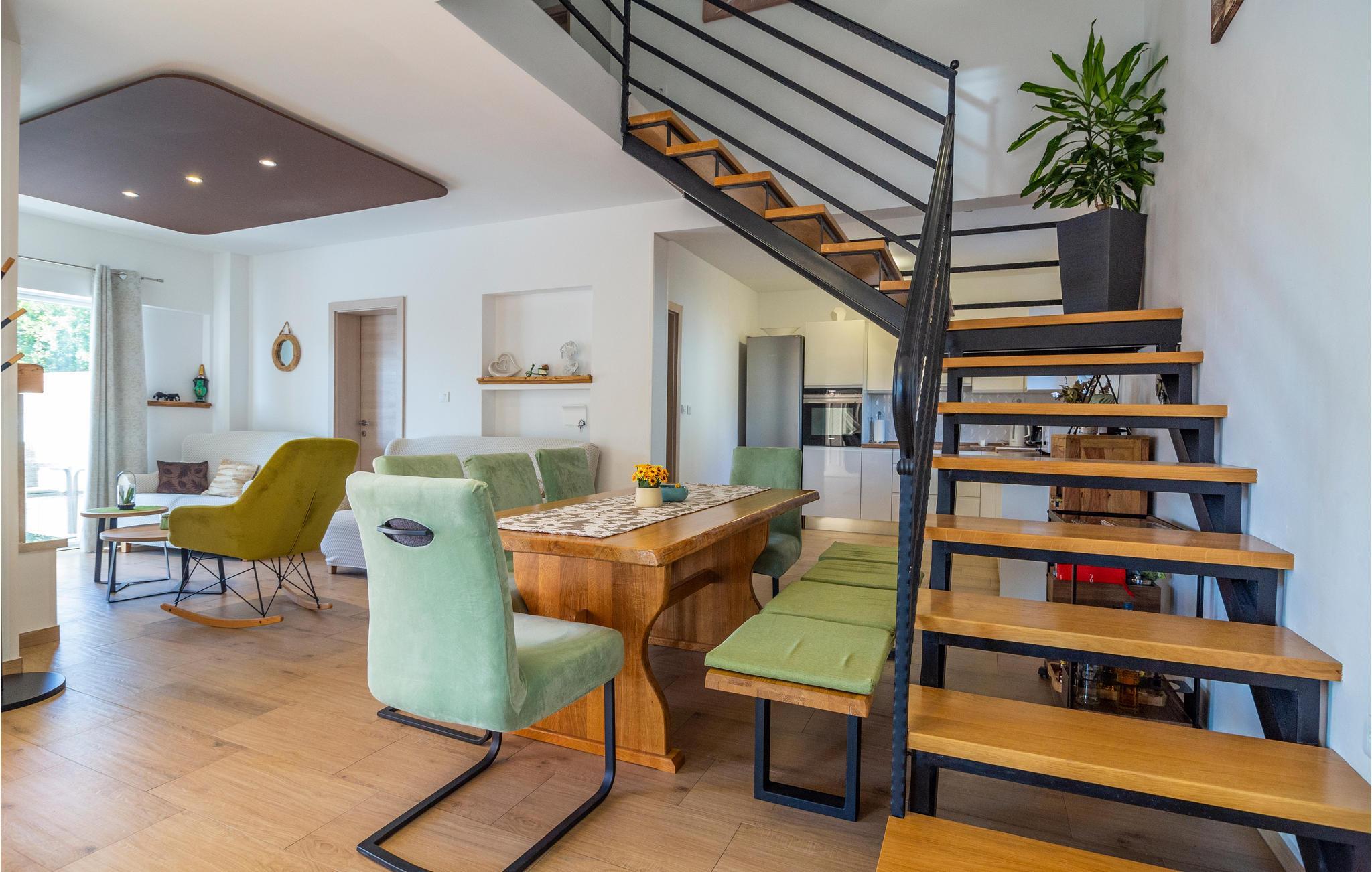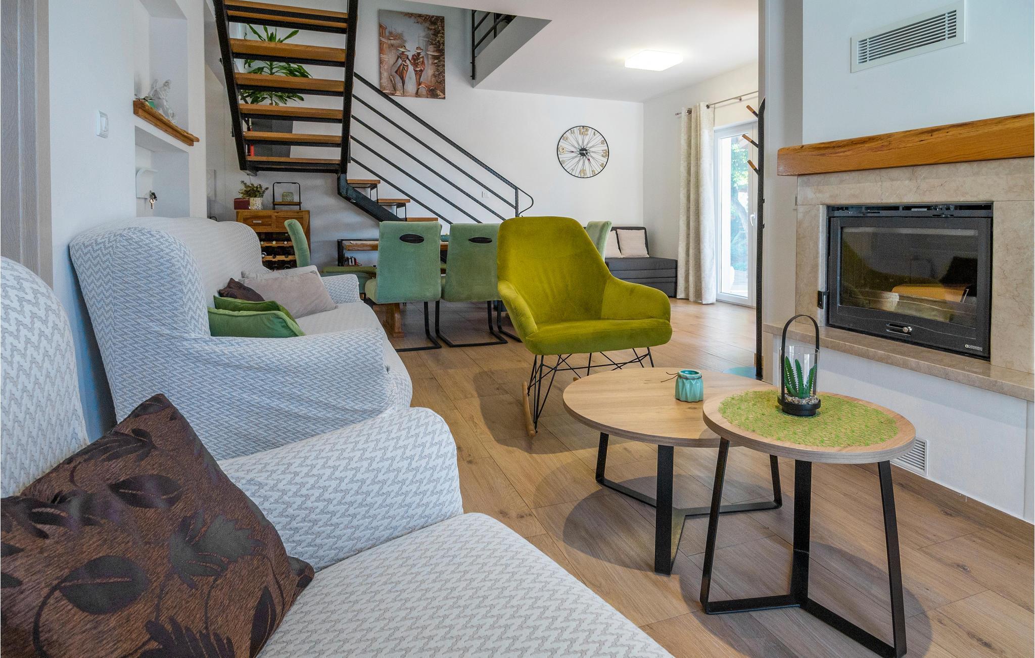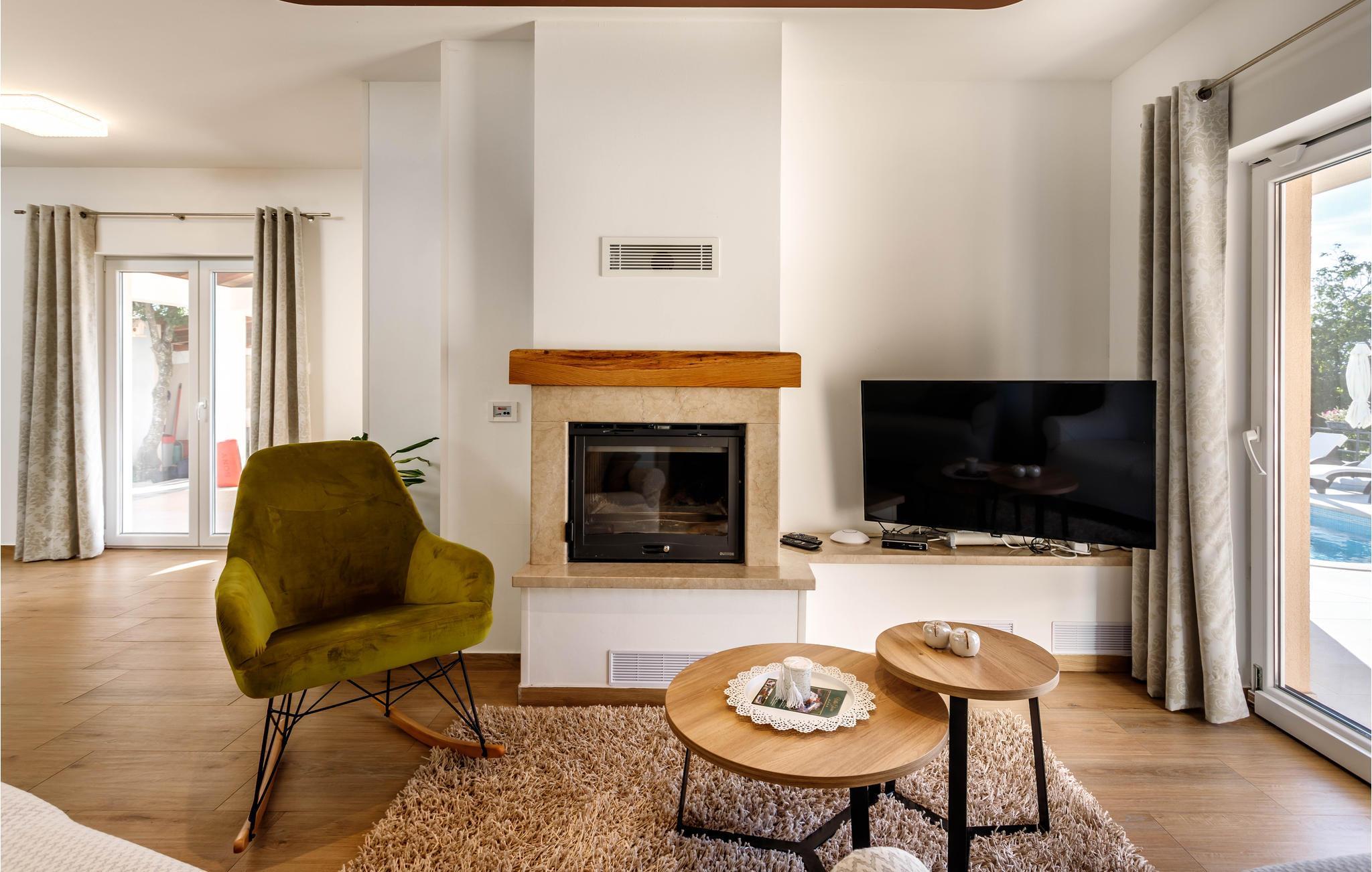 Egal, ob Sie einen ruhigen oder aktiven Urlaub in der Natur verbringen möchten, ist dieses wunderbare Ferienhaus die ideale Wahl für Sie. Es ist modern und komfortabel eingerichtete und mit allem ausgestattet, was Sie für einen erholsamen Urlaub brauchen. Dieses wunderbare Anwesen besticht besonders durch seinen tollen Außenbereich. An und in Ihrem beheizten Pool mit Hydromassagedüsen werden Sie viele schöne Stunden verbringen. Entspannen Sie auf einer der Sonnenliegen oder im Whirlpool, während die Kleinen im Pool planschen. Auf den schönen Terrassen können Sie herrlich frühstücken oder den Tag mit einem Glas dalmatinischen Wein ausklingen lassen. während Sie das tolle Panorama genießen. auch ein Grill für gemeinsame Grillabende steht Ihnen zur Verfügung. Ihre Kinder können sich in den vielen Einrichtungen für die Kleinsten vergnügen. Gemeinsame können Sie Tischtennis oder Darts spielen.