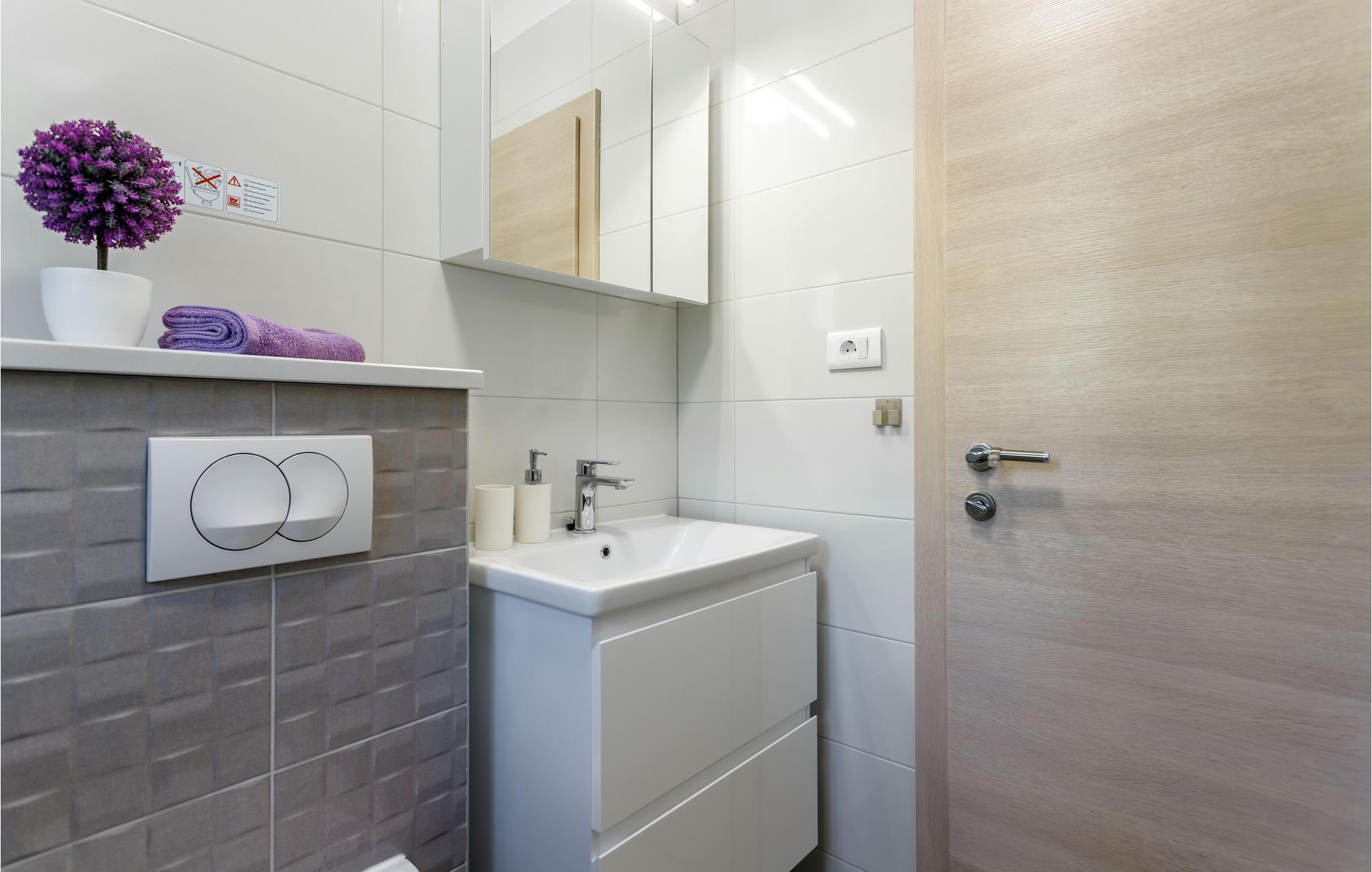 Badezimmer 4m2 (nr. 2) - WC. Warmes und kaltes Wasser. Dusche