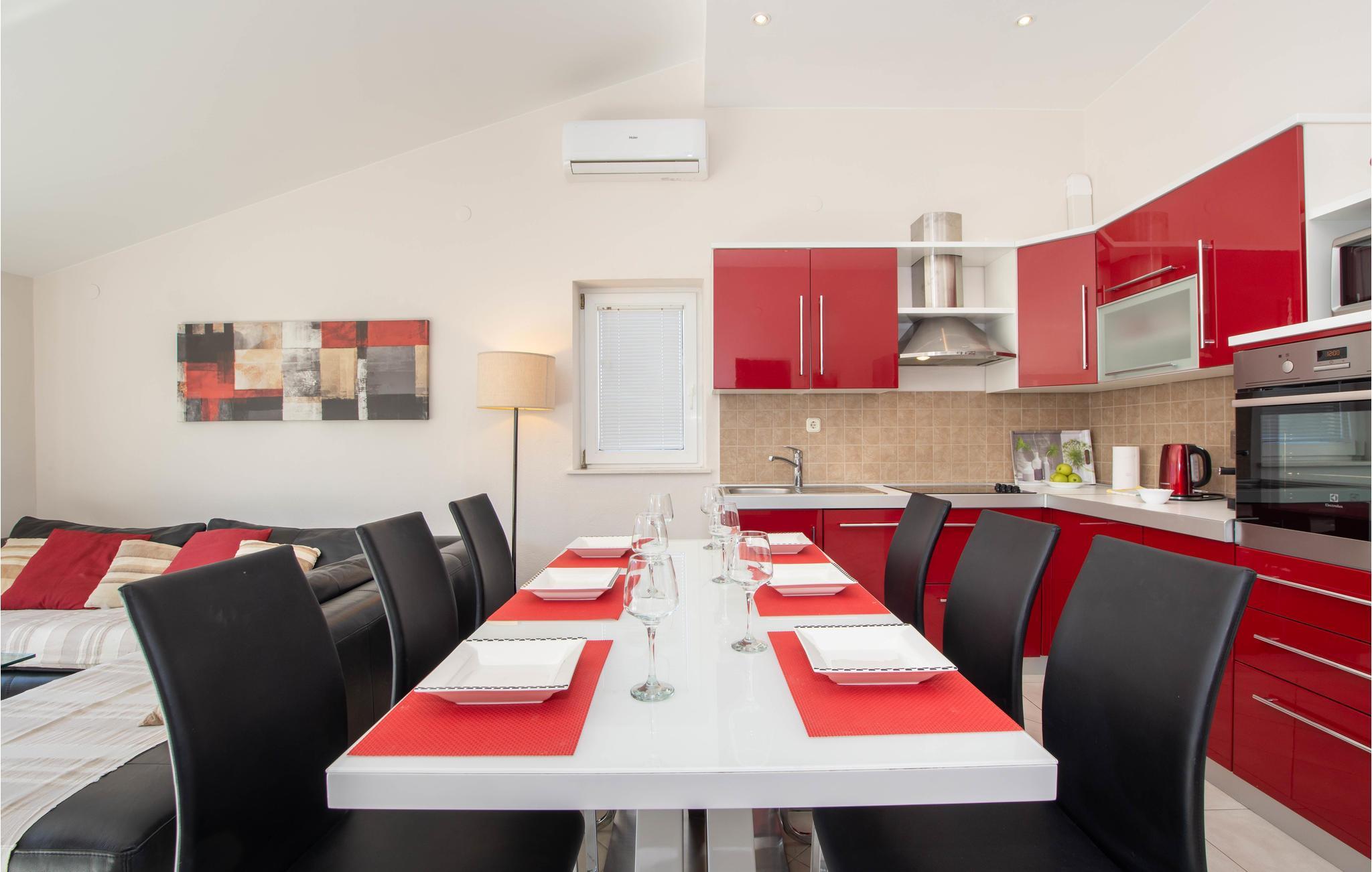 Im ruhigen kleinen Ort Donja Ostrvica befinden sich diese schön eingerichteten Ferienwohnungen. CDF485 liegt im zweiten Stockwerk, CDF487 im Erdgeschoß. Jede Wohnung hat eine eigene Terrasse und zur Verfügung steht auch die gemeinsame Terrasse mit Grill, die für angenehme Zusammenkünfte ideal ist. Zusätzlichen Spaß können Sie auch mit Tischtennis, Darts und Badminton haben, die auch zur gemeinsamen Nutzung zur Verfügung stehen.