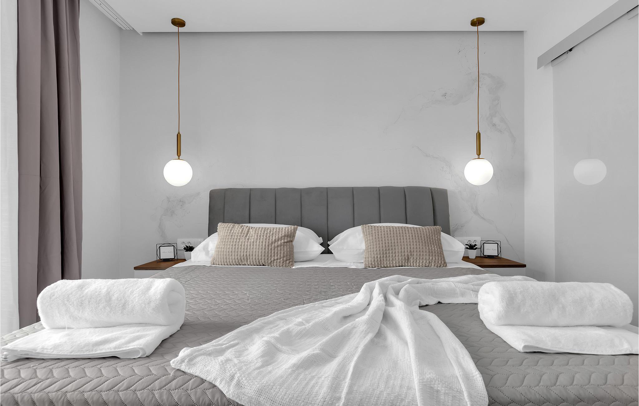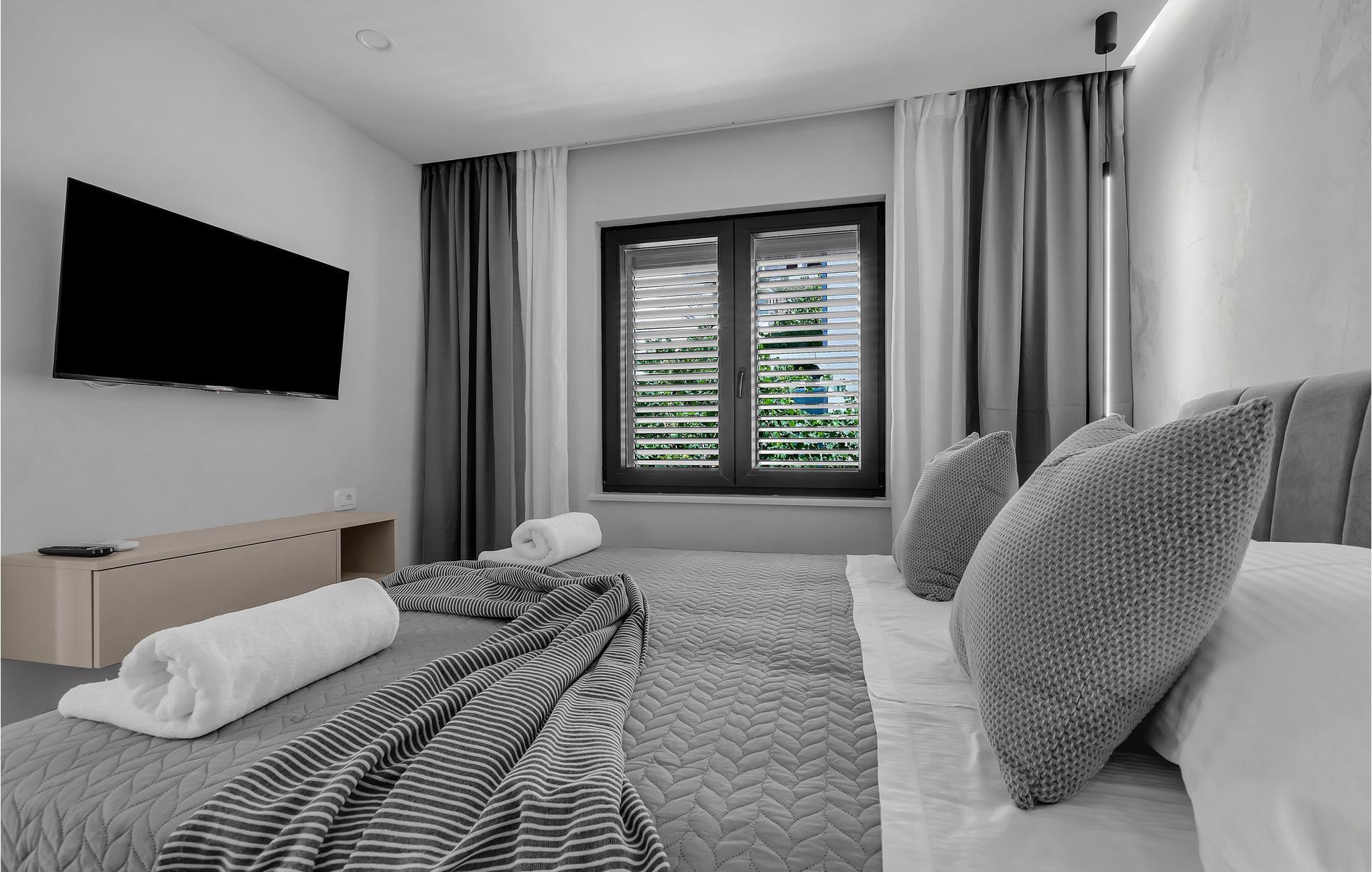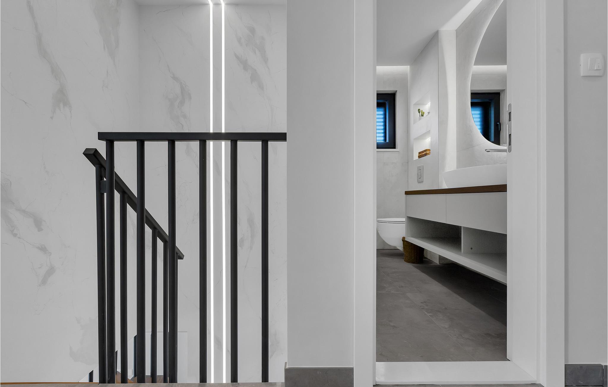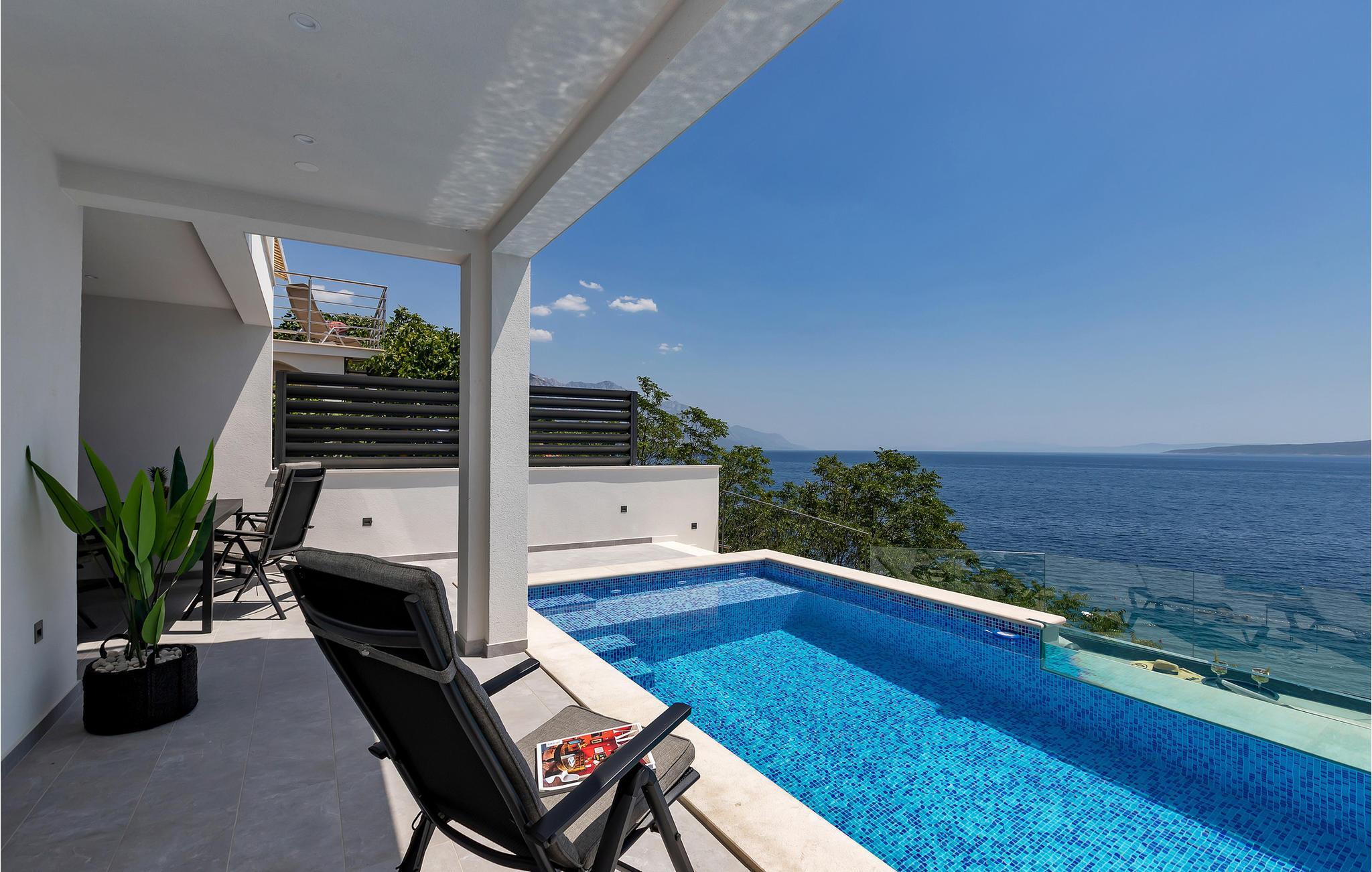 Dieses elegante Haus strahlt eine ruhige und luxuriöse Atmosphäre aus, die durch den Panoramablick auf das tiefblaue Meer untermalt wird. Hier können Sie auf dem Sofa entspannen und dabei zusehen, wie das Sonnenlicht sanft über das Wasser gleitet. Verbringen Sie gemütliche Stunden beim Lesen oder bei anregenden Gesprächen in stilvollem Ambiente. In der modernen Küche können Sie gemeinsam kochen und den Abend bei einem guten Essen und einem Glas Wein genießen.