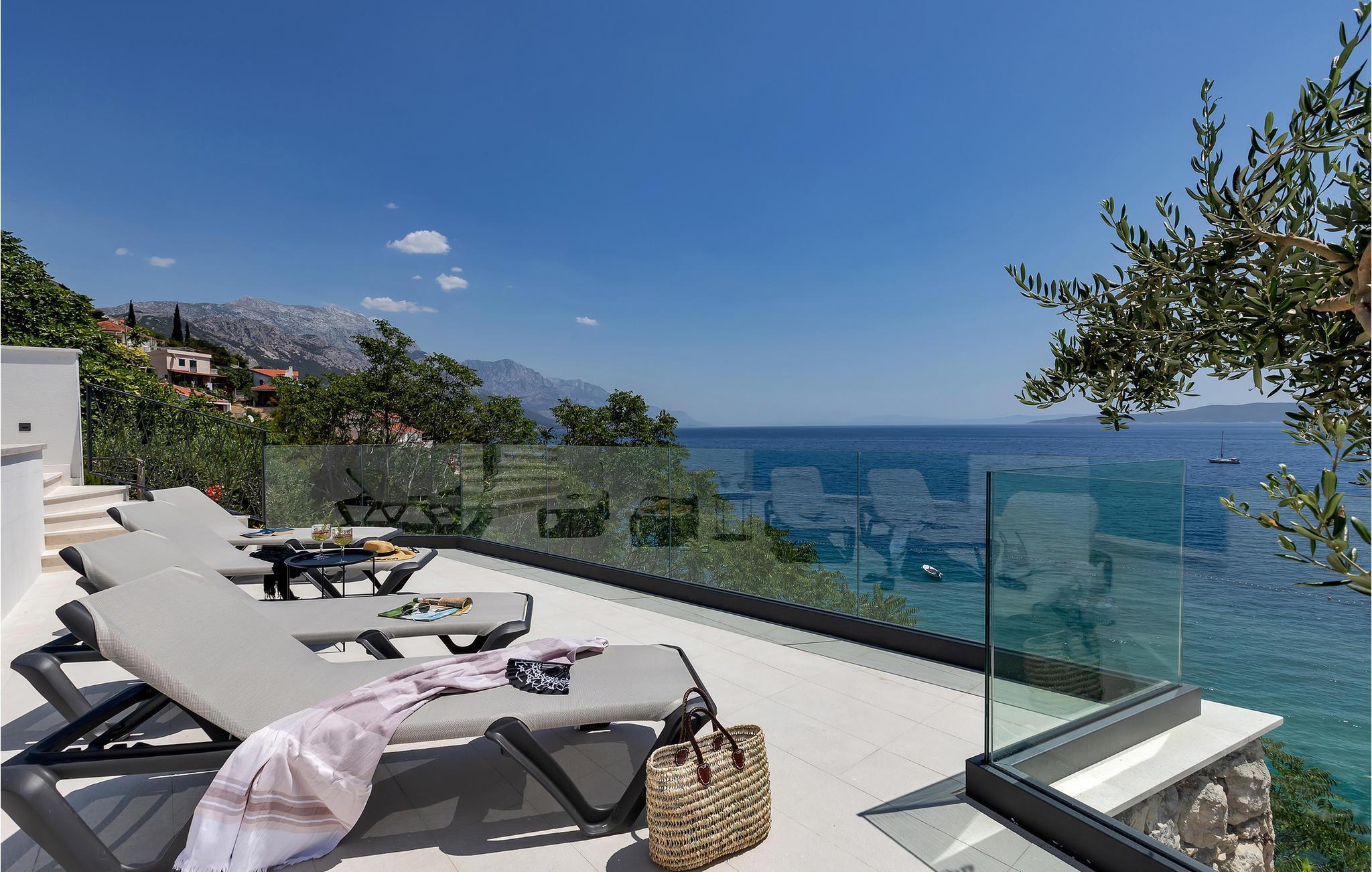 Treten Sie gleich morgens auf die Terrasse und freuen Sie sich über die fantastische Aussicht aufs Meer, während Sie Ihren ersten Morgenkaffee trinken. Springen Sie für ein erfrischendes Bad in den Pool, frühstücken Sie in aller Ruhe und lehnen Sie sich mit einem kühlen Getränk auf den Sonnenliegen zurück. Abends ist die Terrasse ein herrlicher Ort, um gemeinsam den Sonnenuntergang zu beobachten.