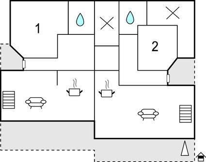 Badezimmer (nr. 1) - WC. Warmes und kaltes Wasser. Dusche