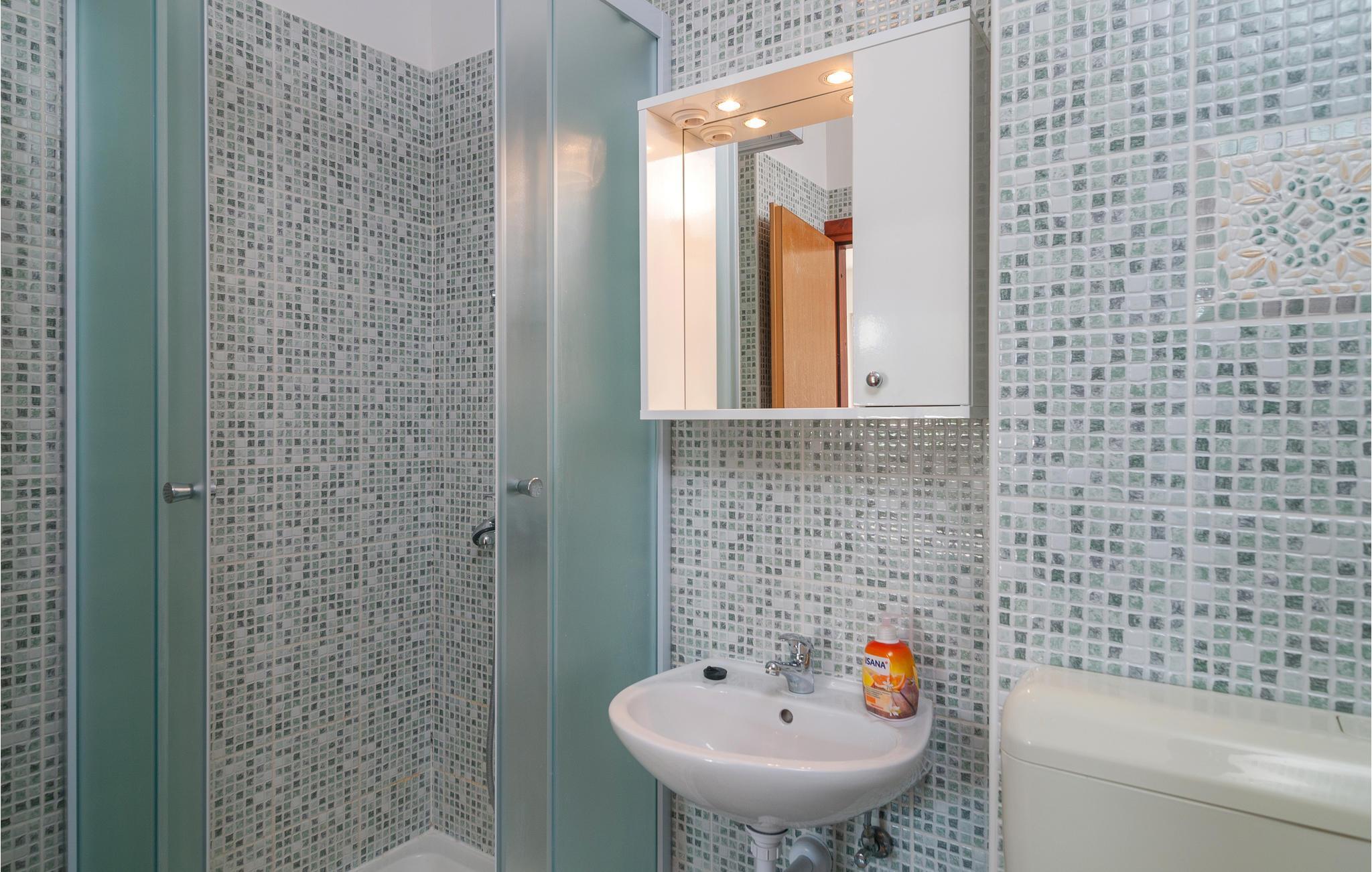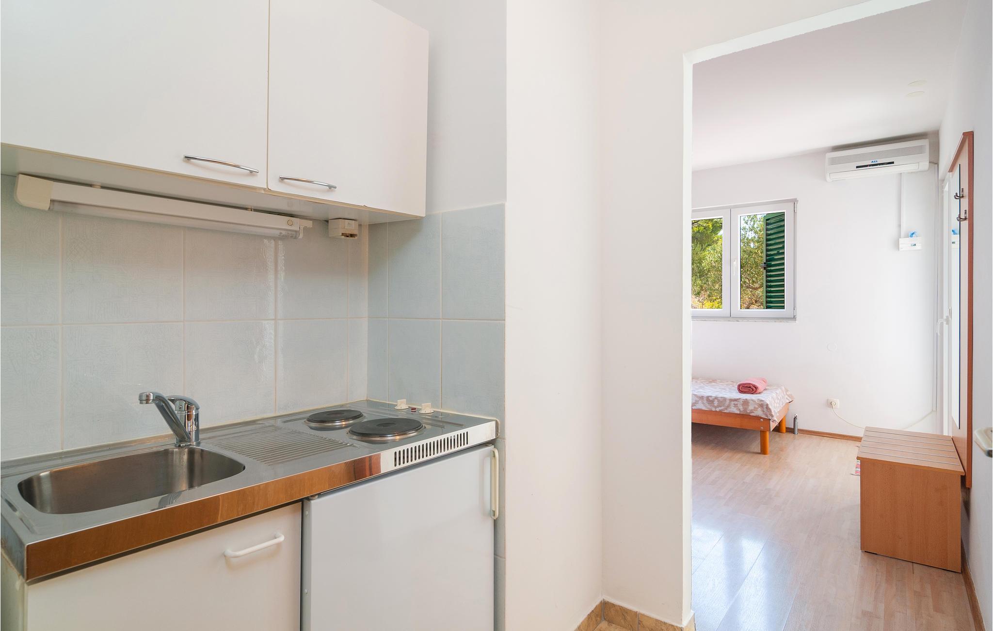Nur wenige Schritte trennen diese Ferienwohnung vom Kiesstrand und dem Meer - ideal für einen Badeurlaub mit der Familie oder Freunden. Die Wohnfläche der Wohnung verteilt sich auf einen Wohnraum mit Küche, wo sich ein Doppel- und ein Einzelbett befinden. Ihnen steht außerdem ein Badezimmer mit Dusche zur Verfügung.