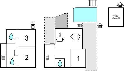 Badezimmer (nr. 3) - WC. Warmes und kaltes Wasser. Dusche