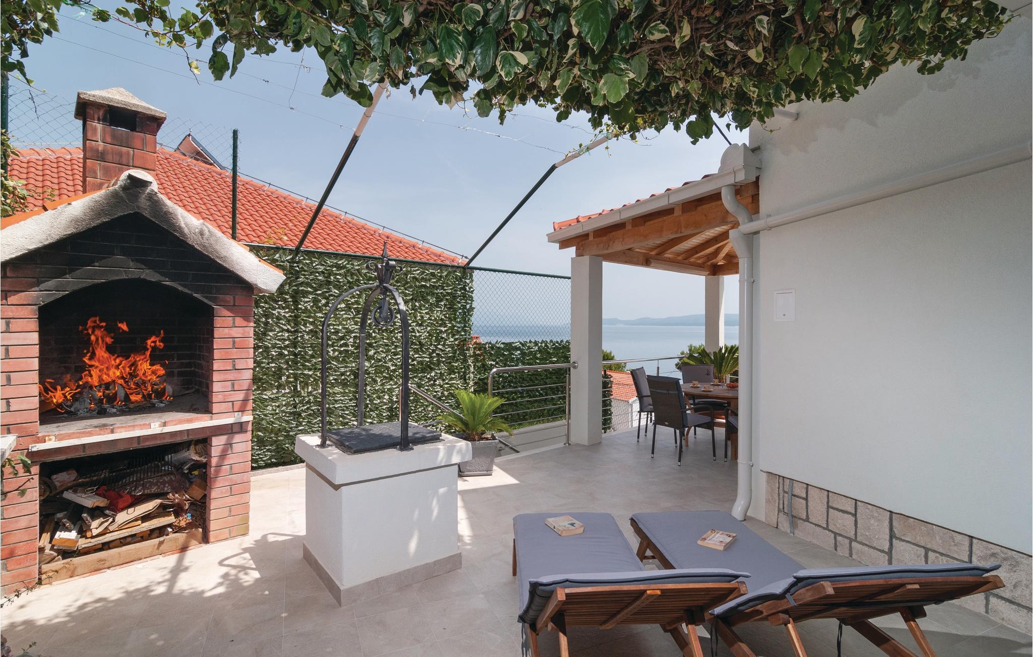 Dieses Ferienhaus befindet sich in einem ruhigen Küstendorf. Es besteht aus einer Etage sowie dem diskret eingerichteten Dachgeschoss, das über die Innentreppe erreichbar ist, mit einer niedrigsten Dachhöhe von 120 cm. Das Haus verfügt über einen kleinen Garten und einen Pavillon, vor dem ein Pool liegt, von dem aus Sie beim Schwimmen einen wunderschönen Blick auf das Meer genießen können. In der Nähe befindet sich ein Kiesstrand mit kristallklarem Wasser. Die Stadt Omis bietet viele Einrichtungen für alle Altersgruppen. Genießen Sie Rafting am Fluss Cetina oder die Piratenfestung. Wir empfehlen einen Ausflug zu den umliegenden Inseln.
