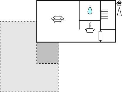 Wohnraum/Küche - 1 Schlafmöglichkeit. (Einzelbett(en)). 2 Schlafmöglichkeiten. (Doppelbett(en)).