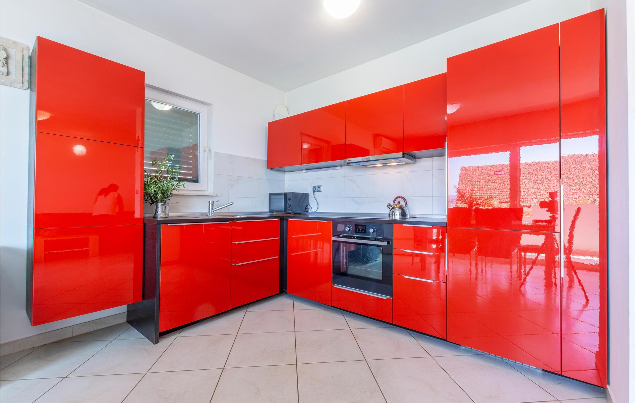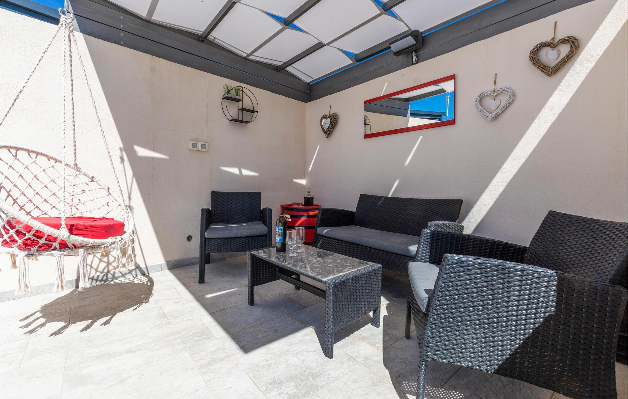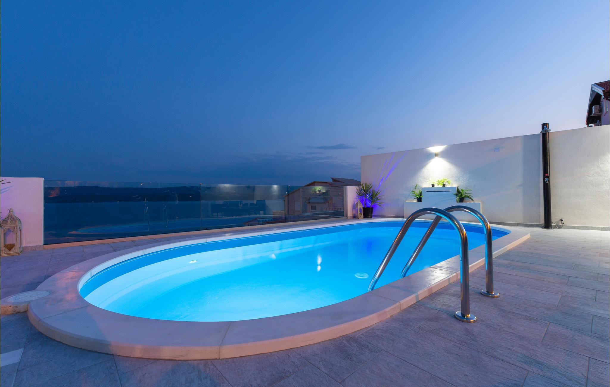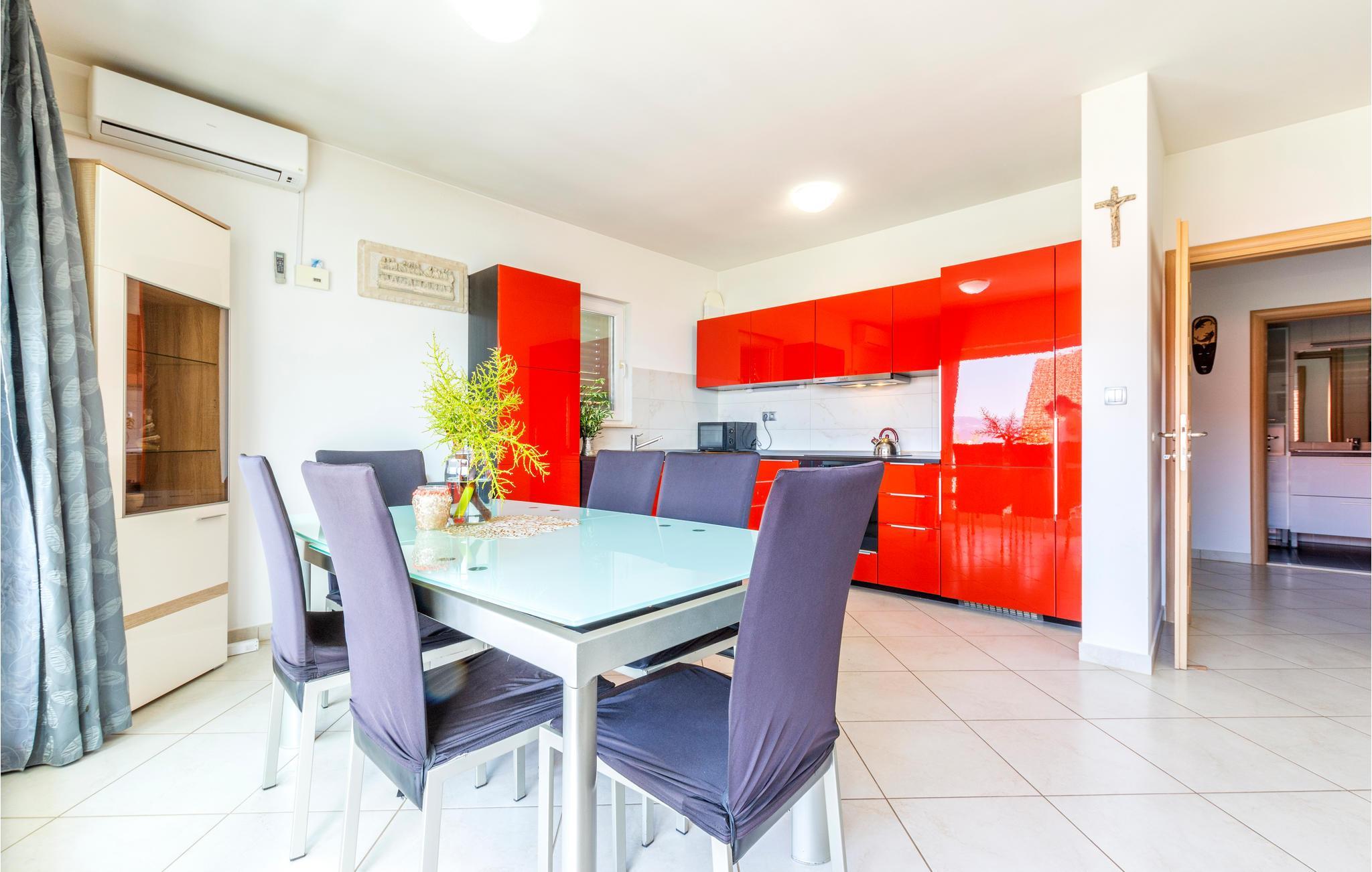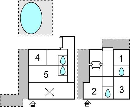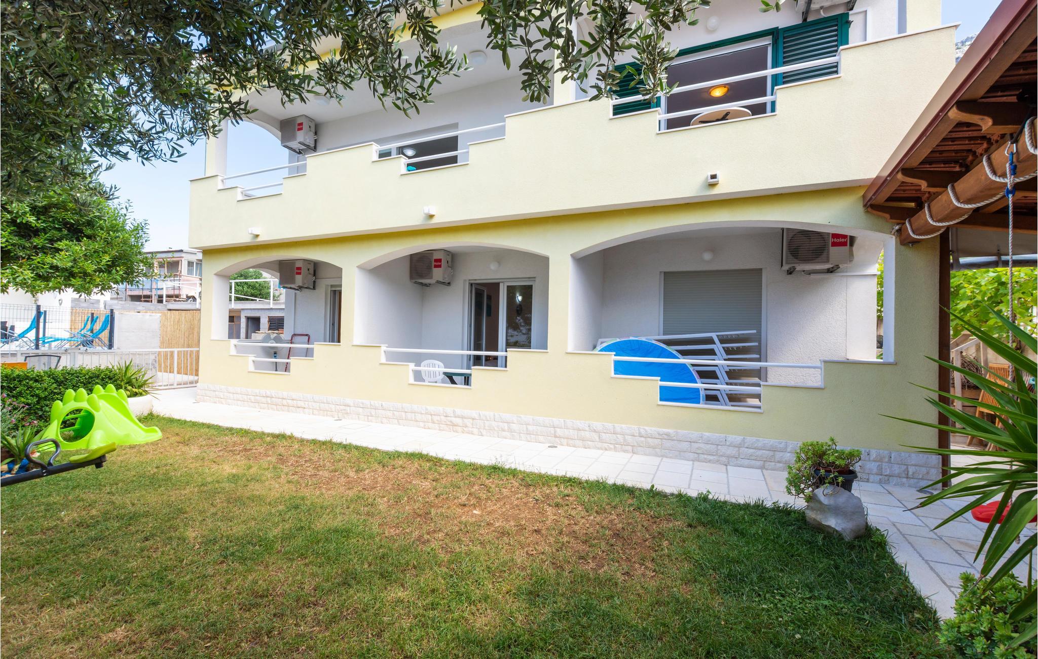 Das wunderschön und modern eingerichtete Ferienhaus ist eine ideale Wahl für zwei Familien oder Gruppen von Freunden, die ihre Sommer zusammen verbringen möchten. Das Haus befindet sich auf einem Terrassengrundstück und erstreckt sich über zwei Etagen mit jeweils eigenem Eingang. Im ersten Stock befindet sich ein Wohnzimmer mit Küche, drei Schlafzimmer und zwei Badezimmer. Vom ersten Stock geht es den Weg hinunter ins Erdgeschoss, wo sich zwei weitere Schlafzimmer mit Badezimmern befinden.