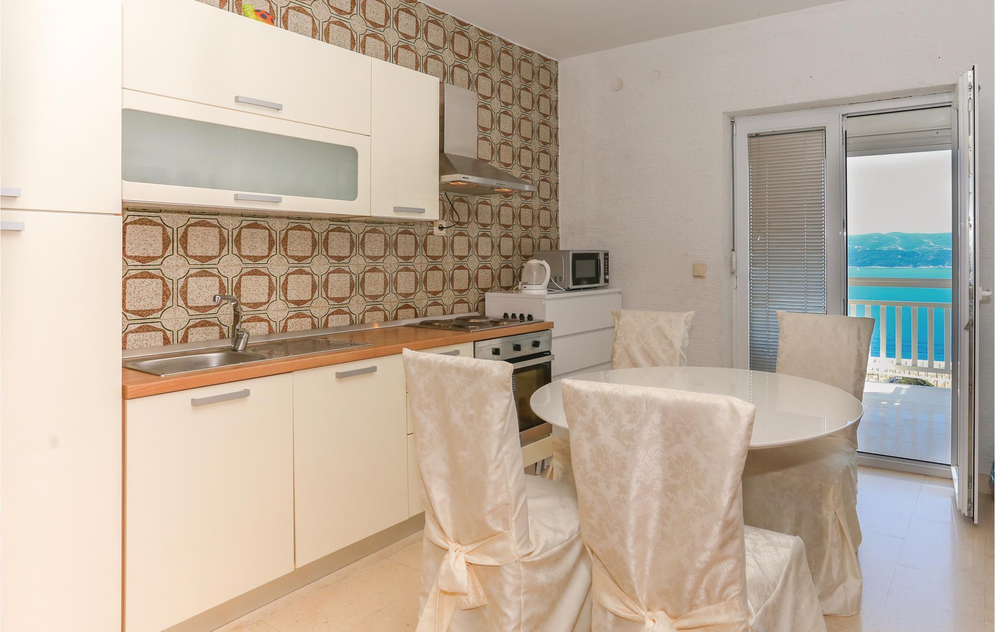 Ein fantastischer Meerblick bietet sich von diesen gemütlich eingerichteten Ferienwohnungen, die sich im Ort Stanici, nahe der beliebten Urlaubsstadt Omiš befinden. In der Umgebung gibt es viele gute Badestrände und Aktivitätsmöglichkeiten, wie freies Klettern, Bergwandern, Surfen, aber auch Raften entlang des Flusses Cetina, dessen Mündung an der Stadt Omiš liegt. Die Stadt war einst als Piratennest bekannt, weshalb bis heute jährlich Aufführungen und Piratennächte stattfinden. Genießen Sie das Sonnenbaden am Ortsstrand aus Kies oder fahren Sie zum besonders langen Sandstrand bei Omiš, der bei Jung und Alt sehr beliebt ist. Aus dem gemeinsamen Flur gelangen Sie in die Räumlichkeiten von CDM113.